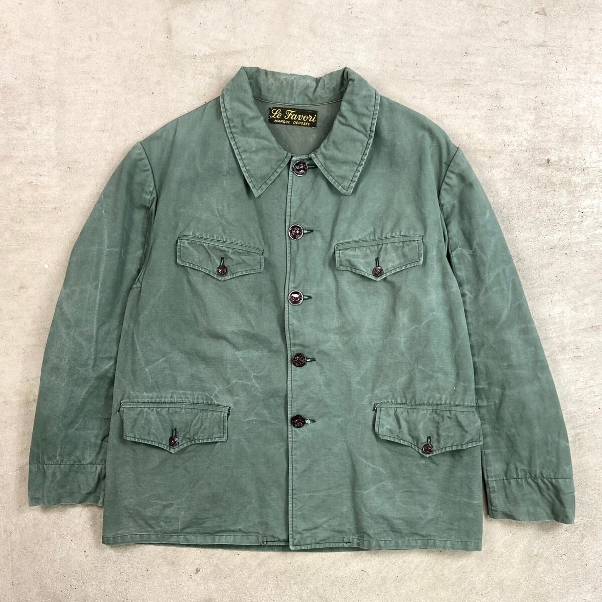 ■50年代 Le Favori 動物ボタン チンスト付き フレンチワーク ハンティングジャケット メンズL相当 古着 50s VINTAGE ヴィンテージ ユーロワーク アップルグリーンカラー【ユーロワークジャケット】/グリーン