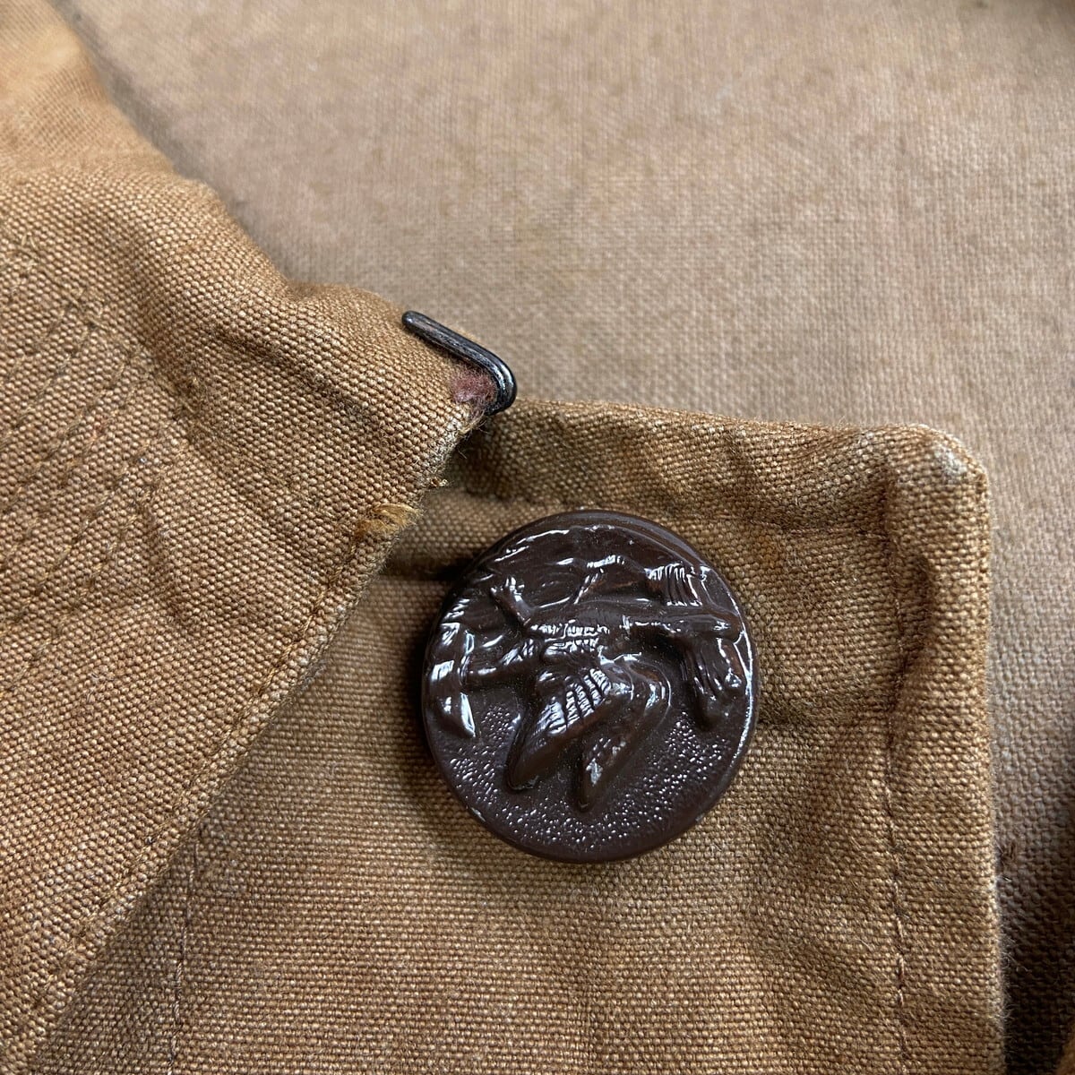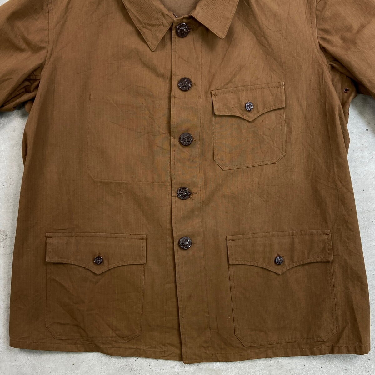 ■DEAD STOCK NOS 50年代 PH PARIS 動物ボタン フレンチワーク ハンティングジャケット メンズM~L相当 古着 50s VINTAGE ヴィンテージ デッドストック ユーロワーク コーヒーブラウン 茶色【ユーロワークジャケット】/ブラウン