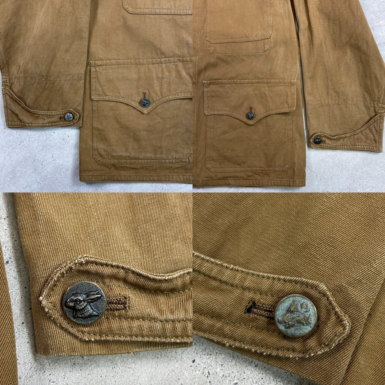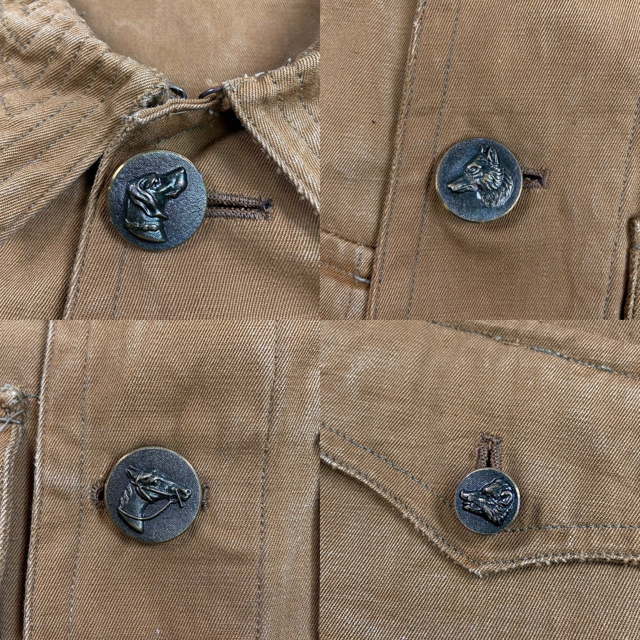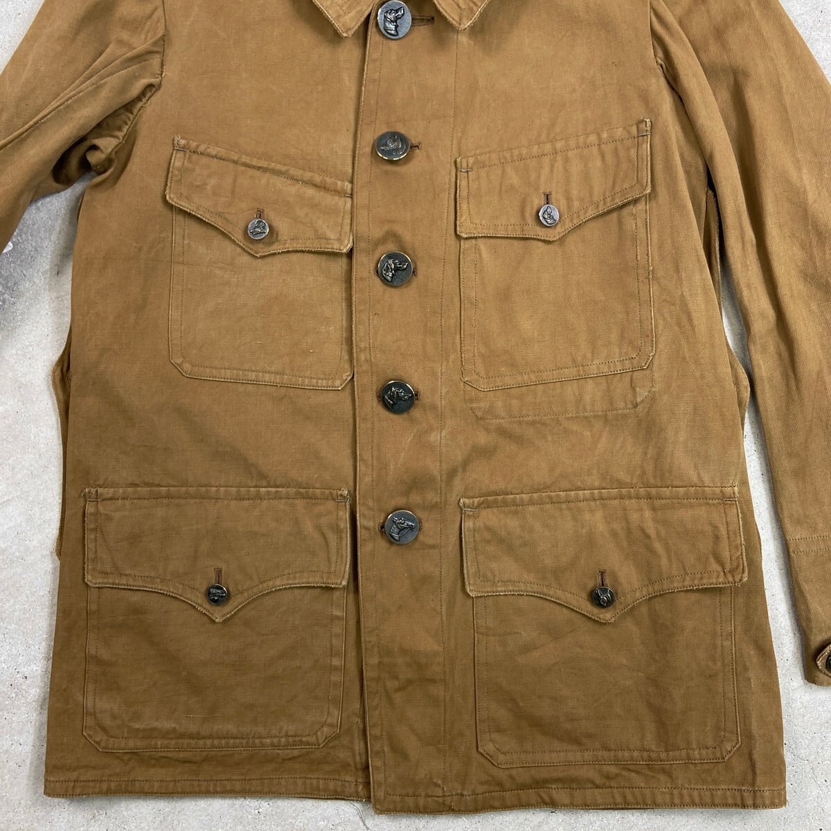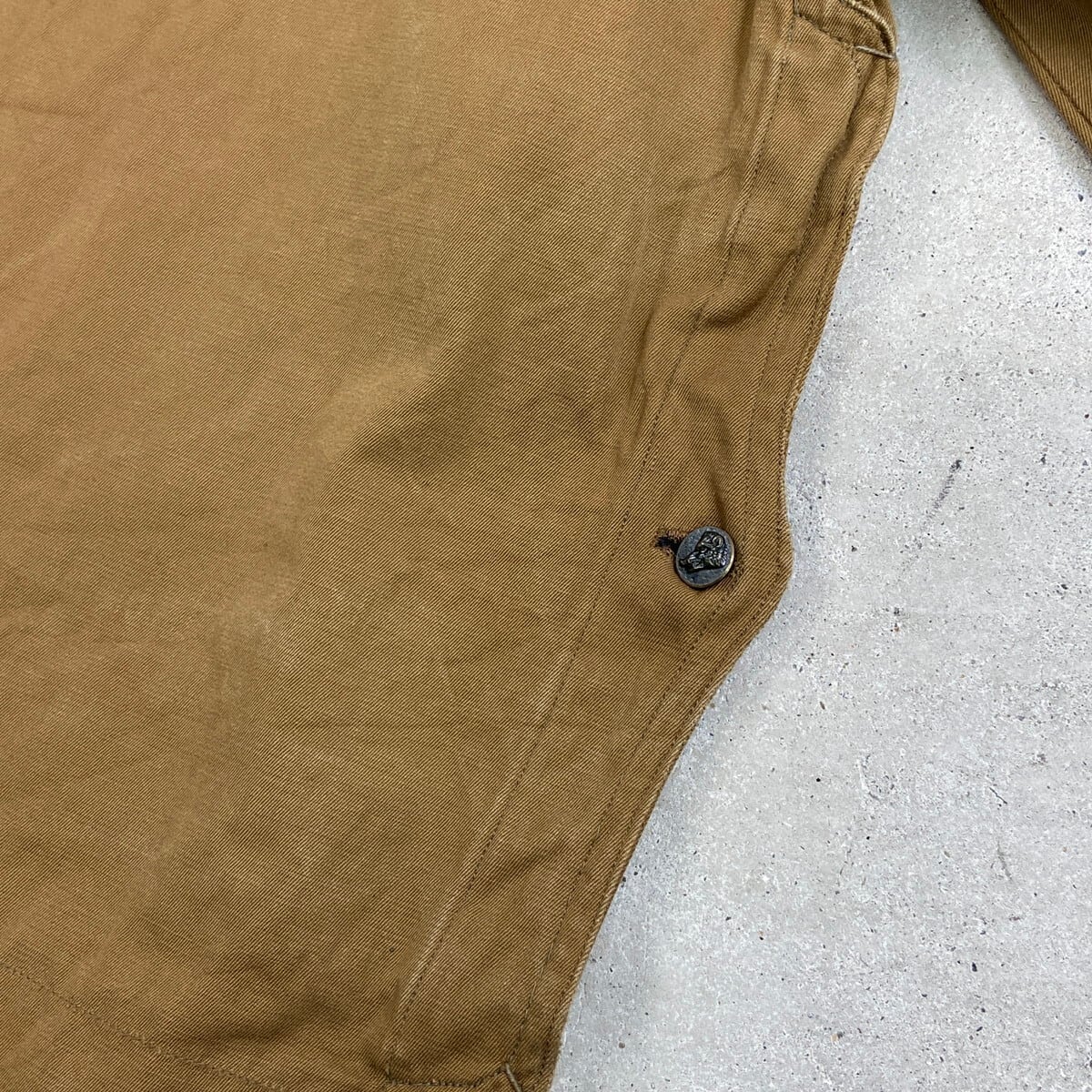 ■30~40年代 動物ボタン フレンチワーク ハンティングジャケット メンズS相当 古着 30s 40s VINTAGE ヴィンテージ デッドストック ユーロワーク カーキブラウン【ユーロワークジャケット】/ブラウン