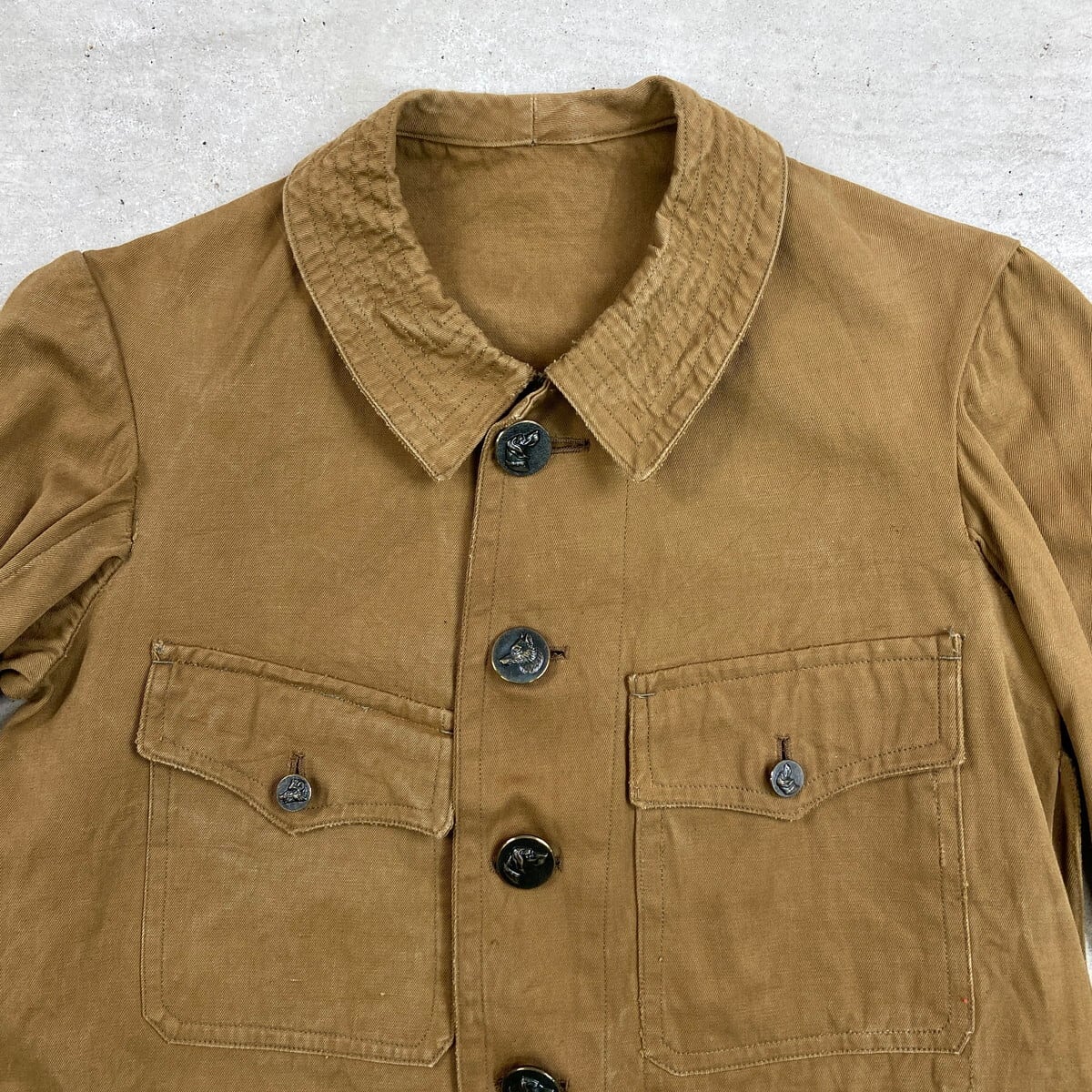 30~40年代 動物ボタン フレンチワーク ハンティングジャケット メンズS相当 古着 30s 40s VINTAGE ヴィンテージ デッドストック ユーロワーク カーキブラウン【ユーロワークジャケット】/ブラウン