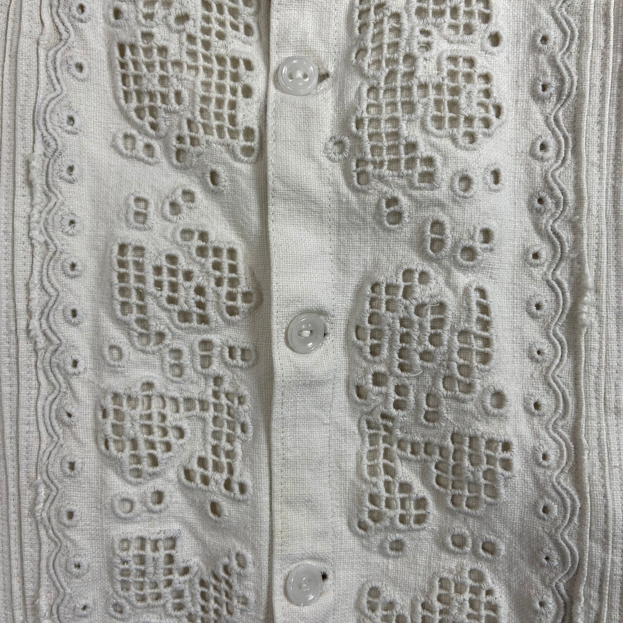 ■1900年代初頭 アンティーク ホワイトワーク刺繍ブラウス 白刺繍ブラウス レディースM相当 古着 VINTAGE ヴィンテージ フランスアンティーク エドワーディアン 白蝶貝ボタン コットンリネン 白色【ブラウス】/ホワイト