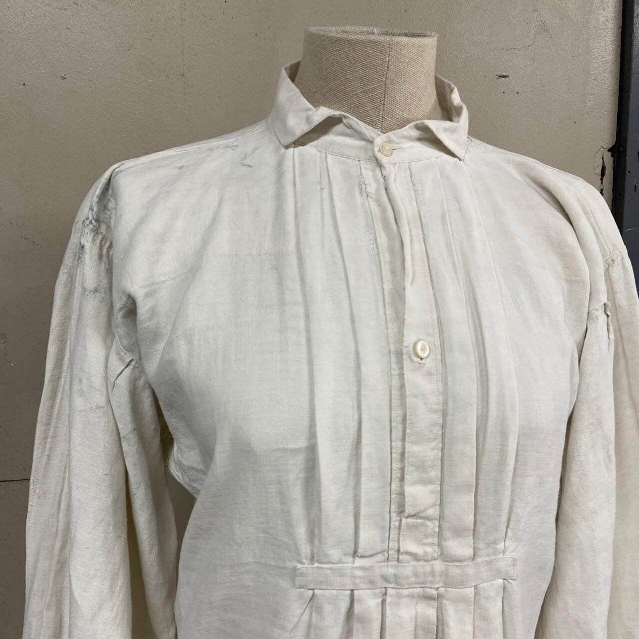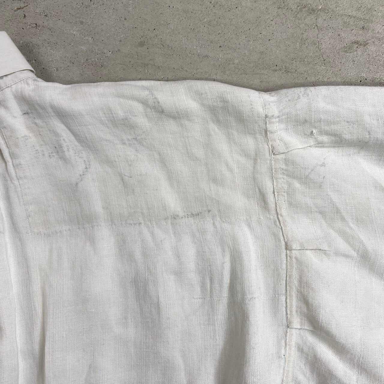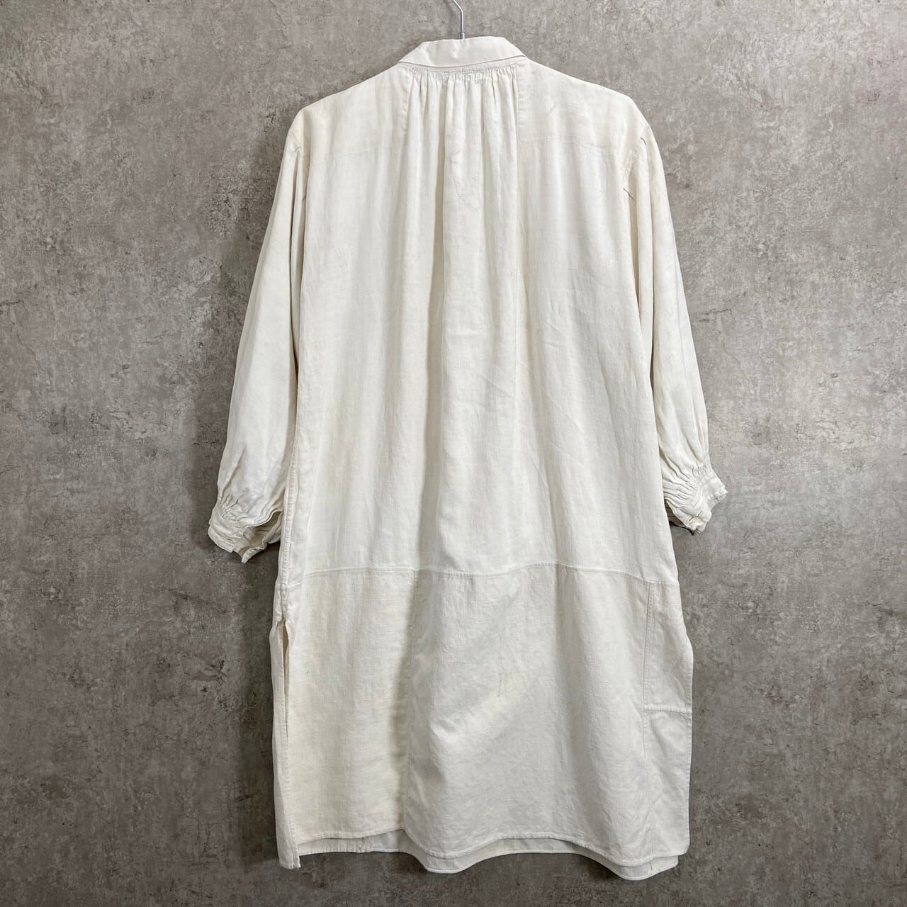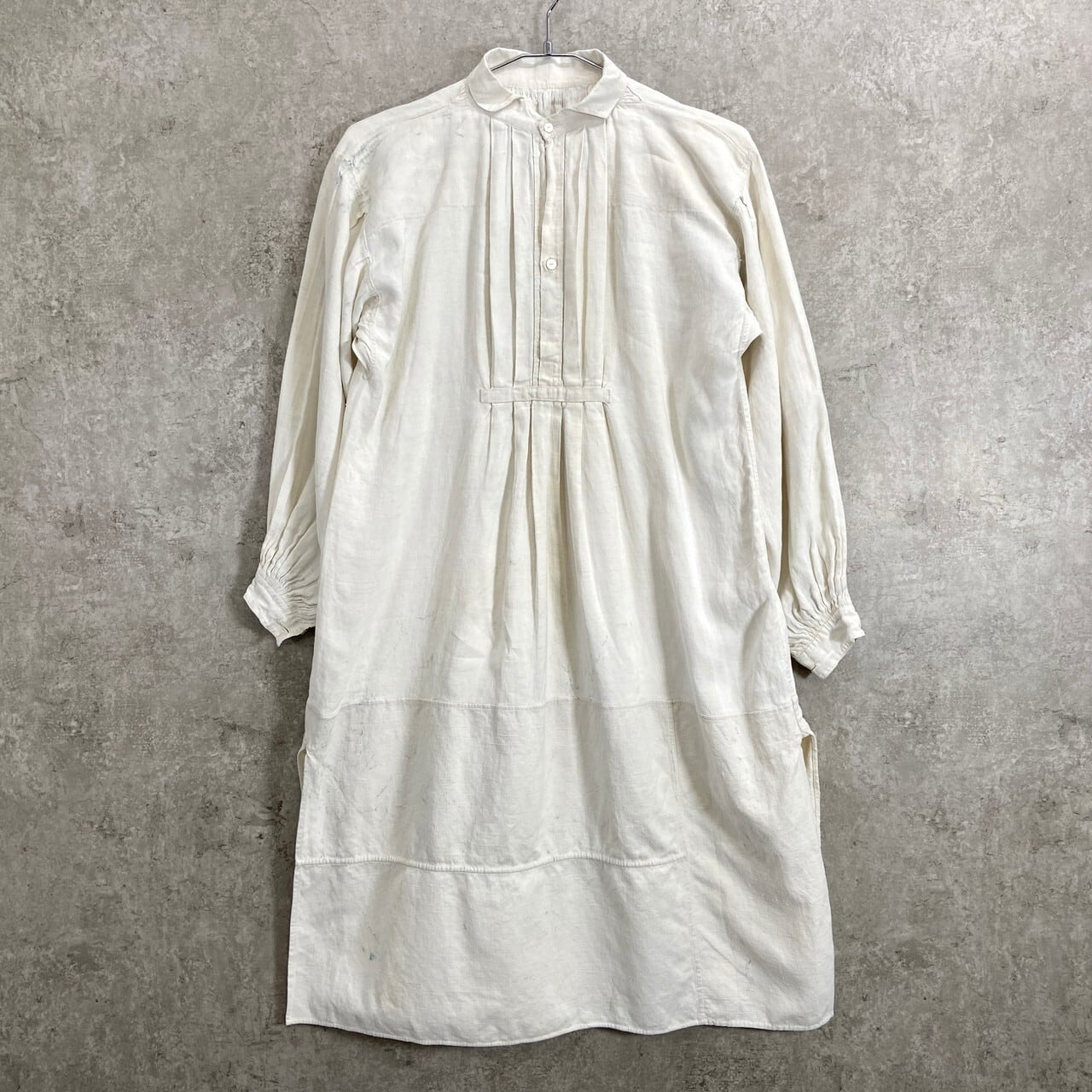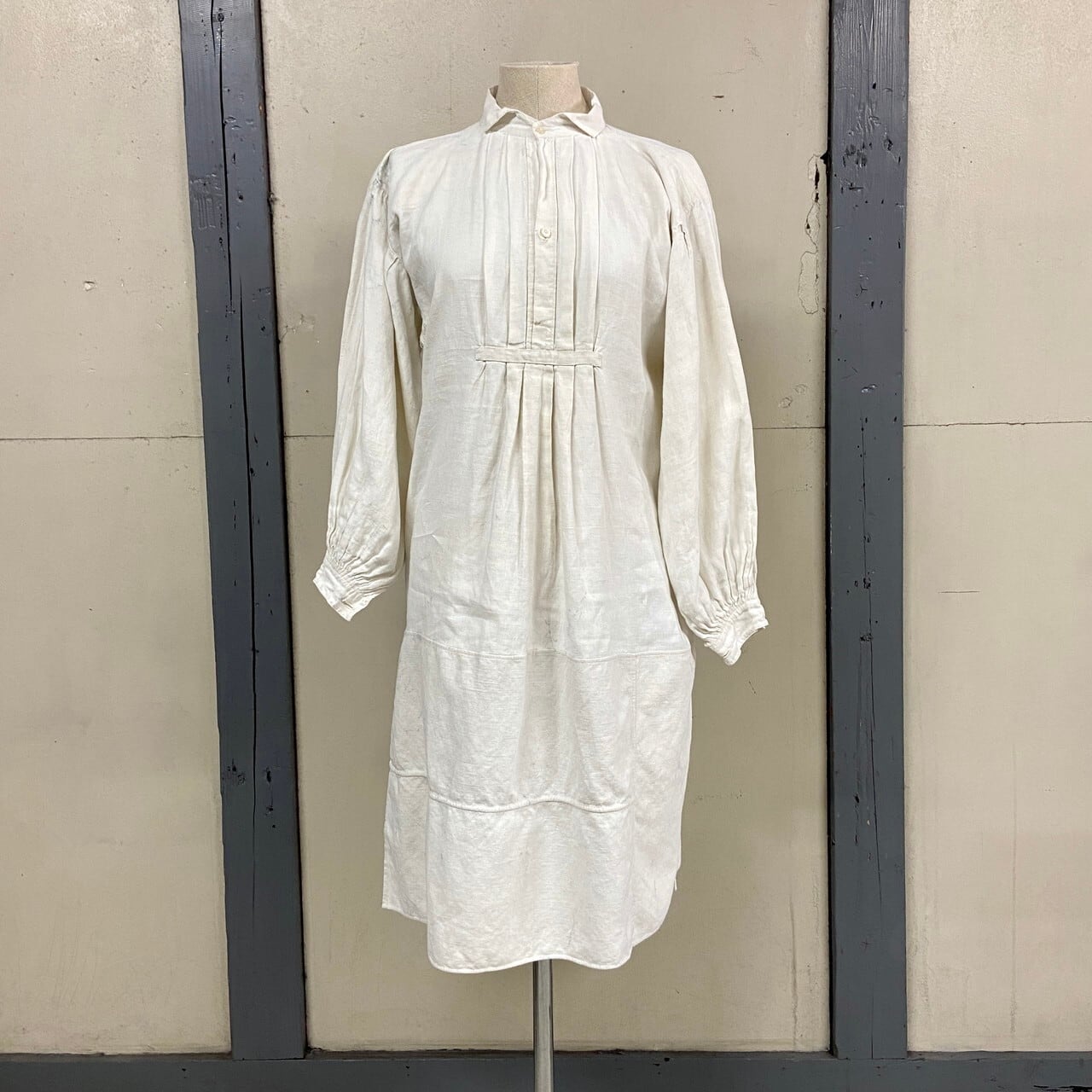 1900年代初頭 アンティーク リネンスモック ワンピース 羊飼いシャツワンピース レディースM-L相当 古着 VINTAGE ナイトドレス 襟コットン・シェルボタン ユーロヴィンテージ フランスアンティーク 白色【ワンピース】/ホワイト