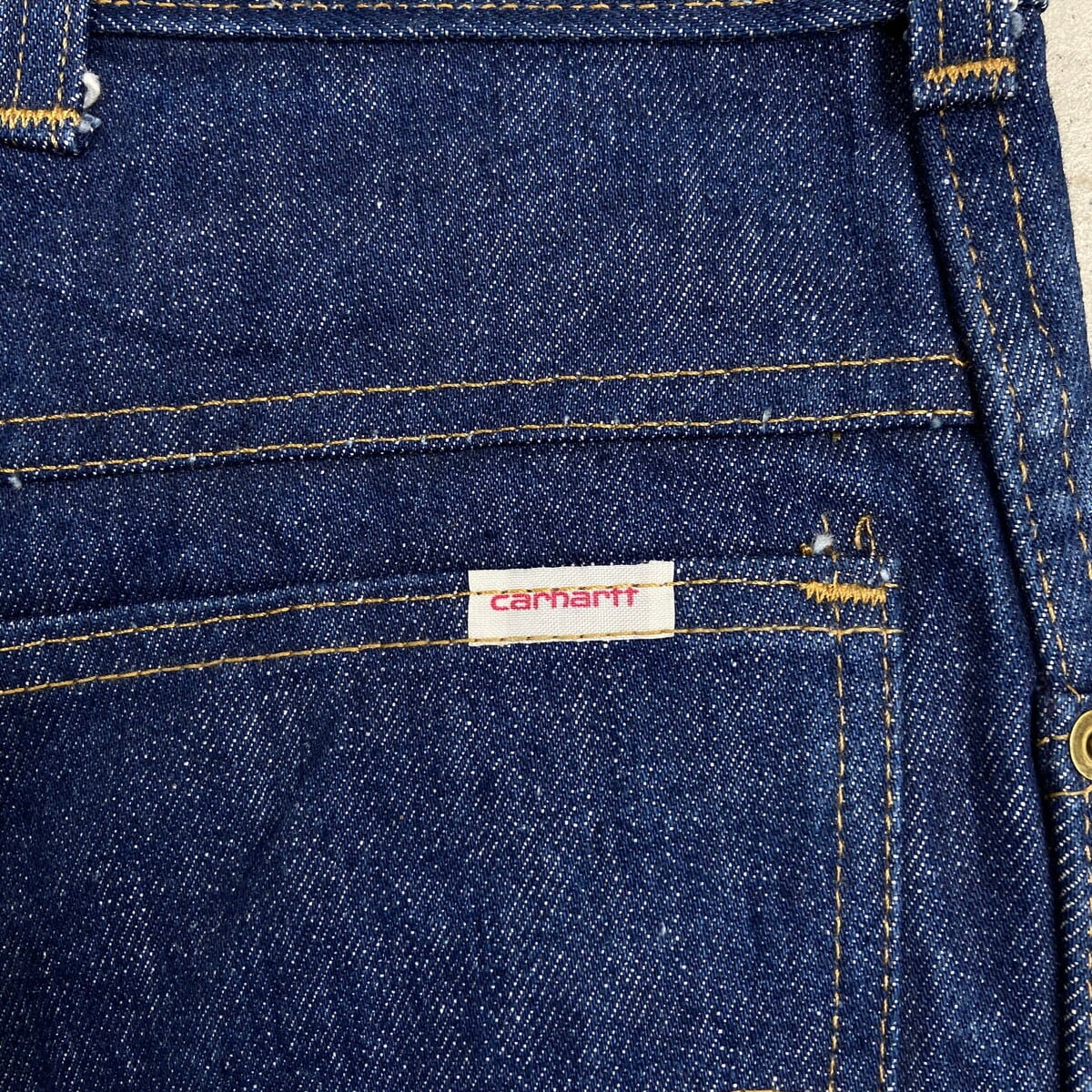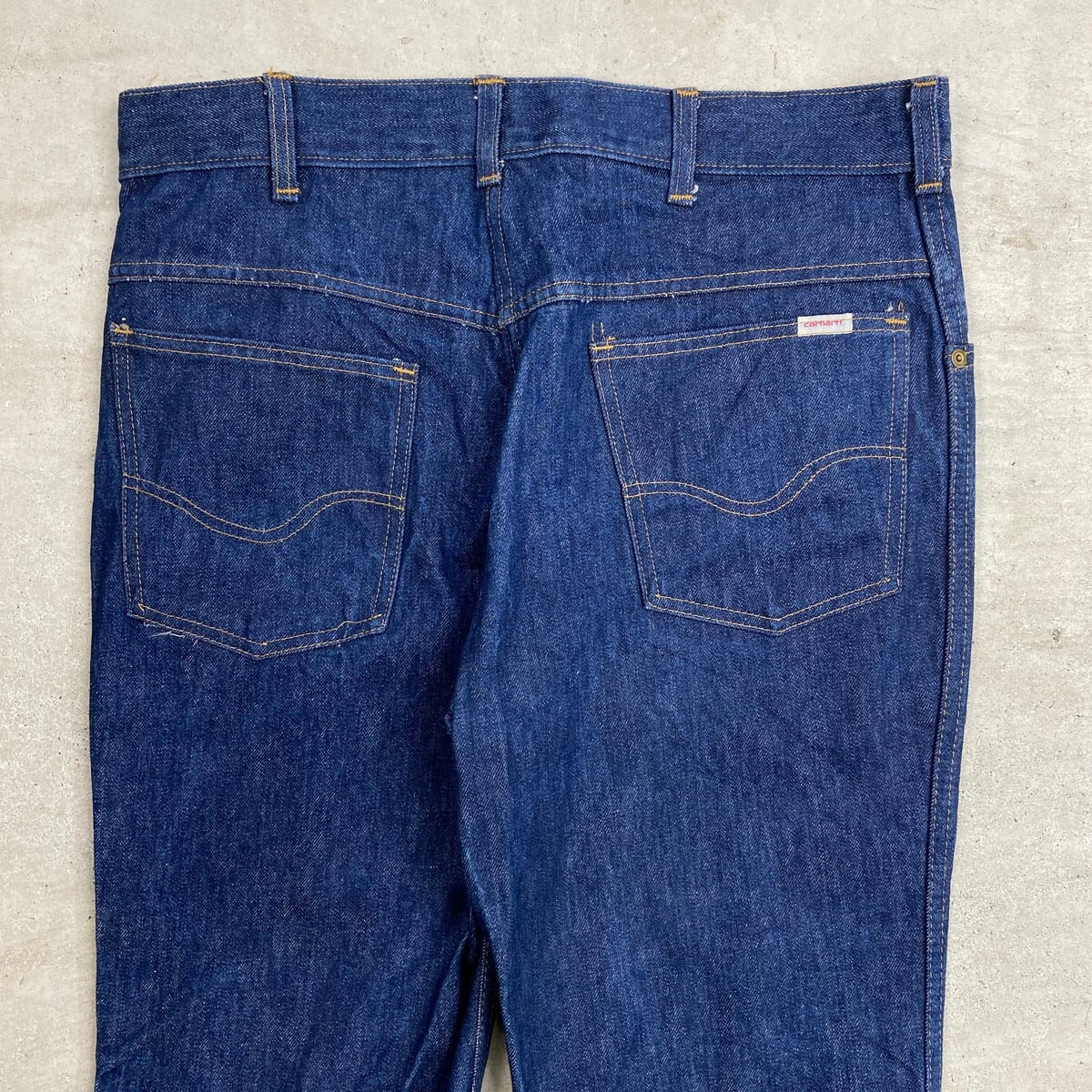 70年代 Carhartt カーハート フレアデニムパンツ メンズW35 古着 70s ヴィンテージ VINTAGE アメカジ SCOVILLジッパー ブーツカット ジーンズ 濃紺【デニムパンツ】/ブルー