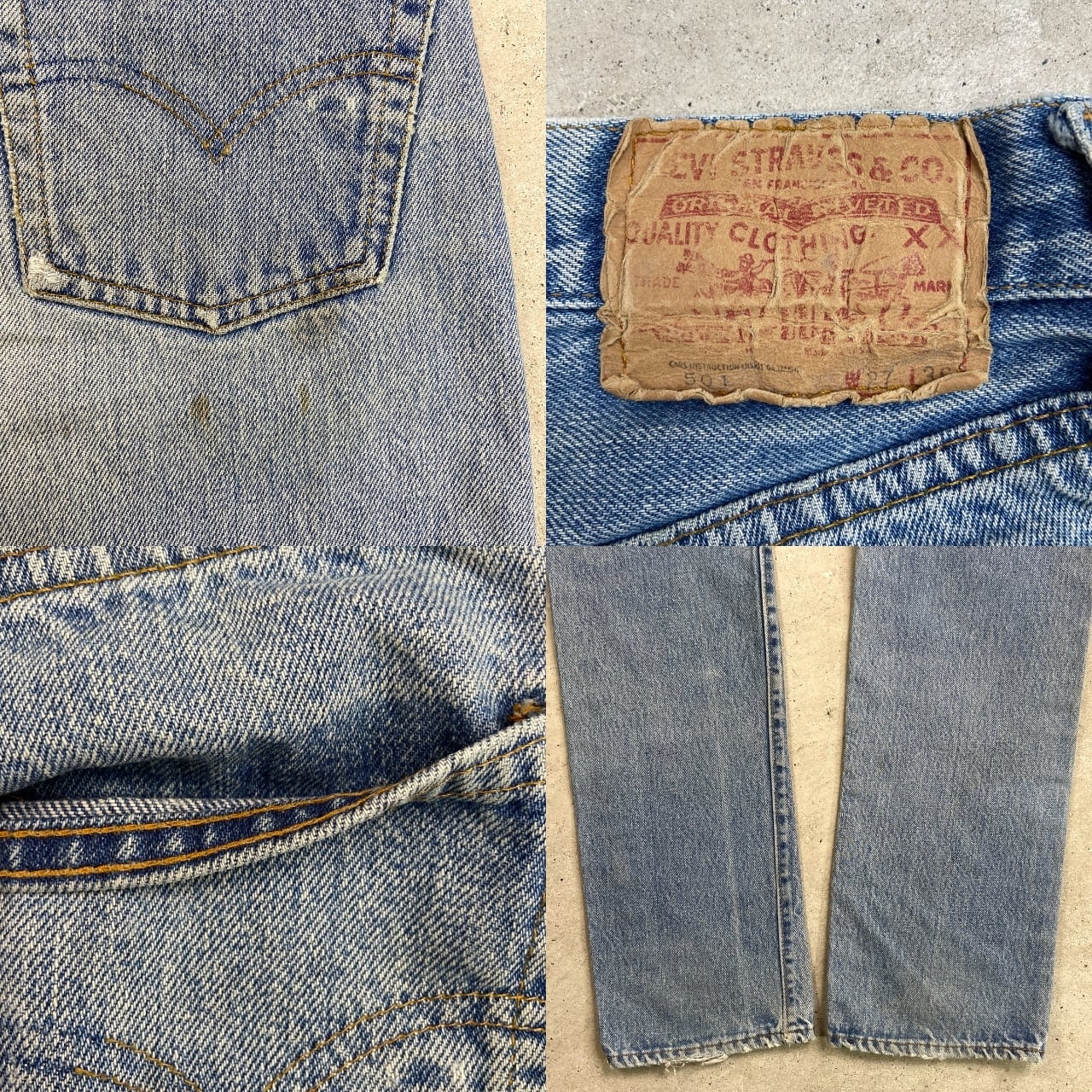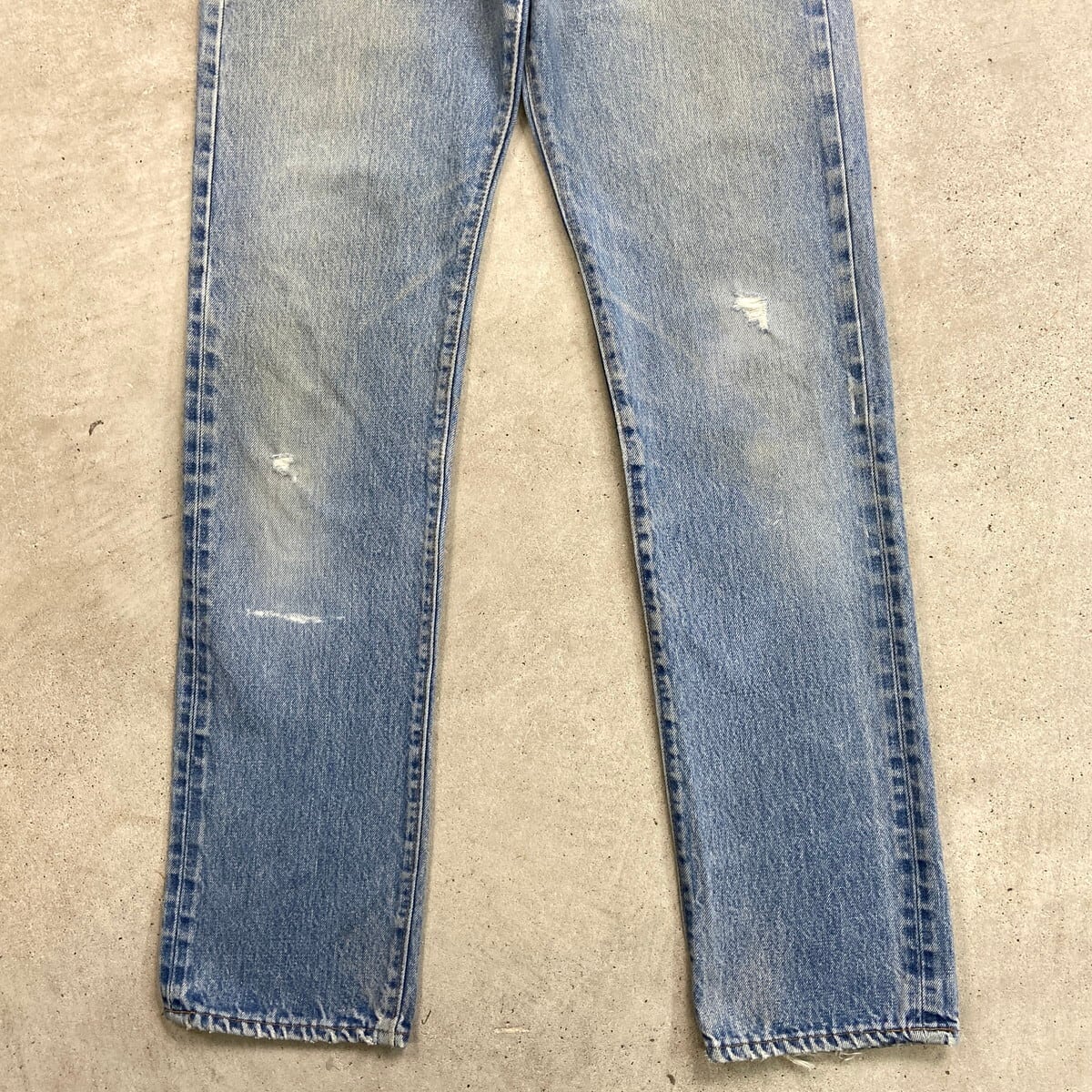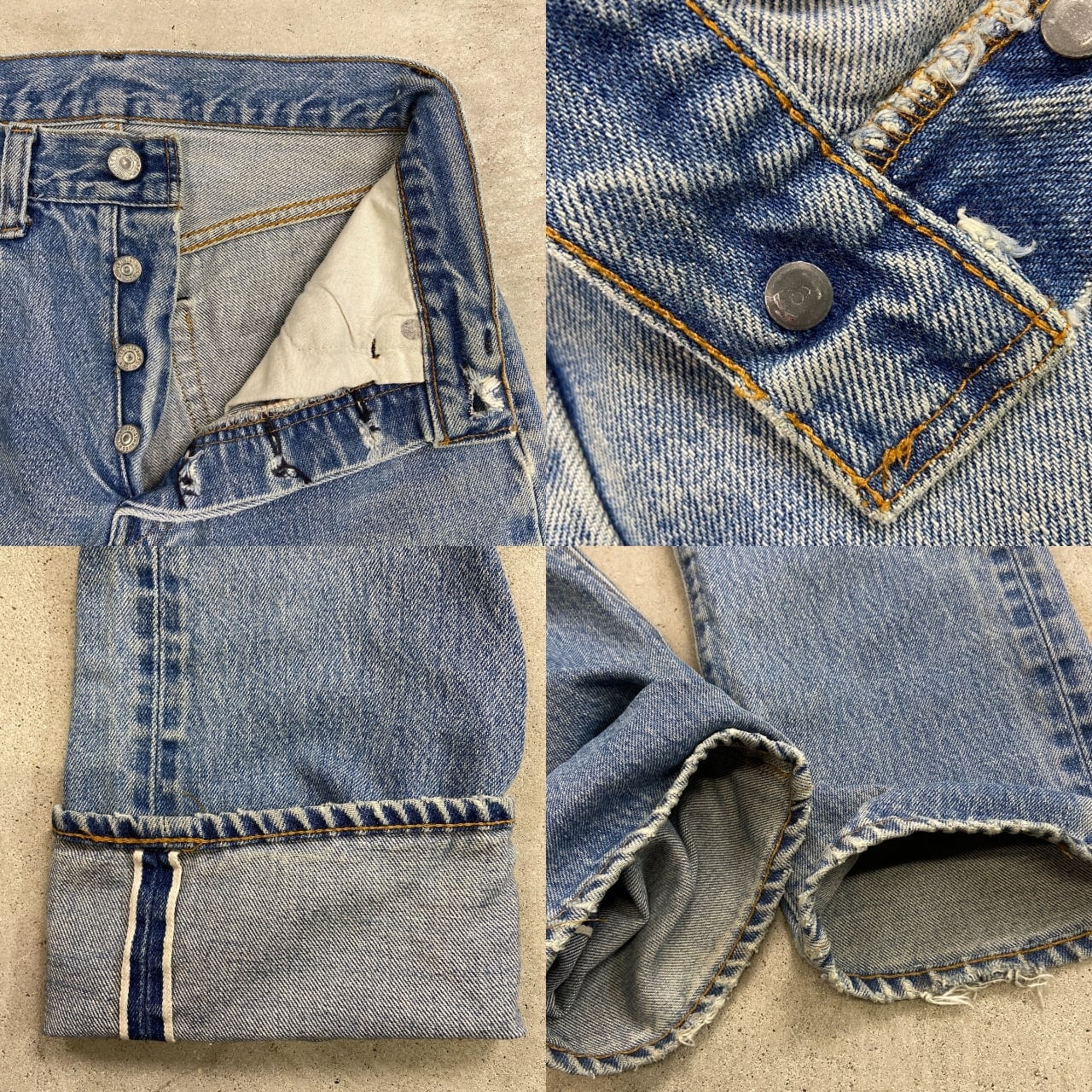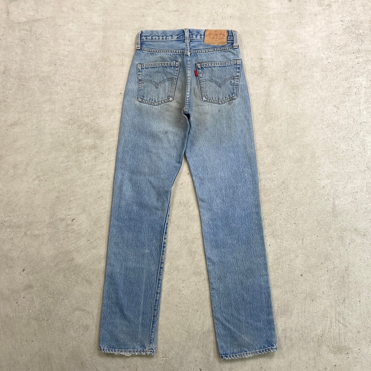 ■80年代 USA製 Levi's リーバイス 501 66後期 赤耳 移行期 ストレートデニムパンツ メンズW25相当 レディース 古着 80s ヴィンテージ VINTAGE アメカジ ジーンズ RED LINE レッドライン ポケット裏チェーンステッチ 黒カンヌキ アタリ ヒゲ 青色【デニムパンツ】/ブルー