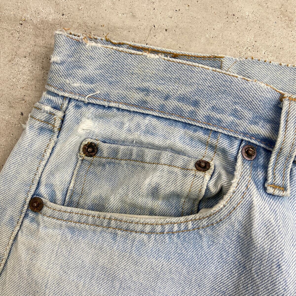 70年代 USA製 Levi's リーバイス 501 66後期 ストレート デニムパンツ メンズW30相当 古着 70s ヴィンテージ VINTAGE アメカジ ジーンズ ポケット裏チェーンステッチ 黒カンヌキ アイスブルー ライトインディゴ【デニムパンツ】/ライトブルー
