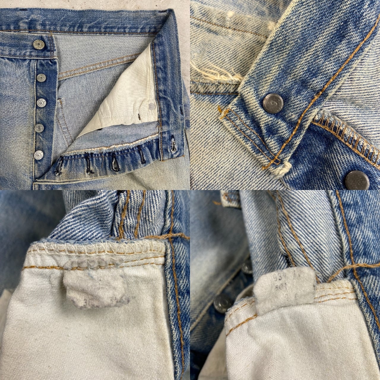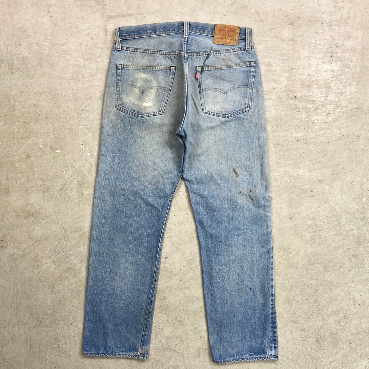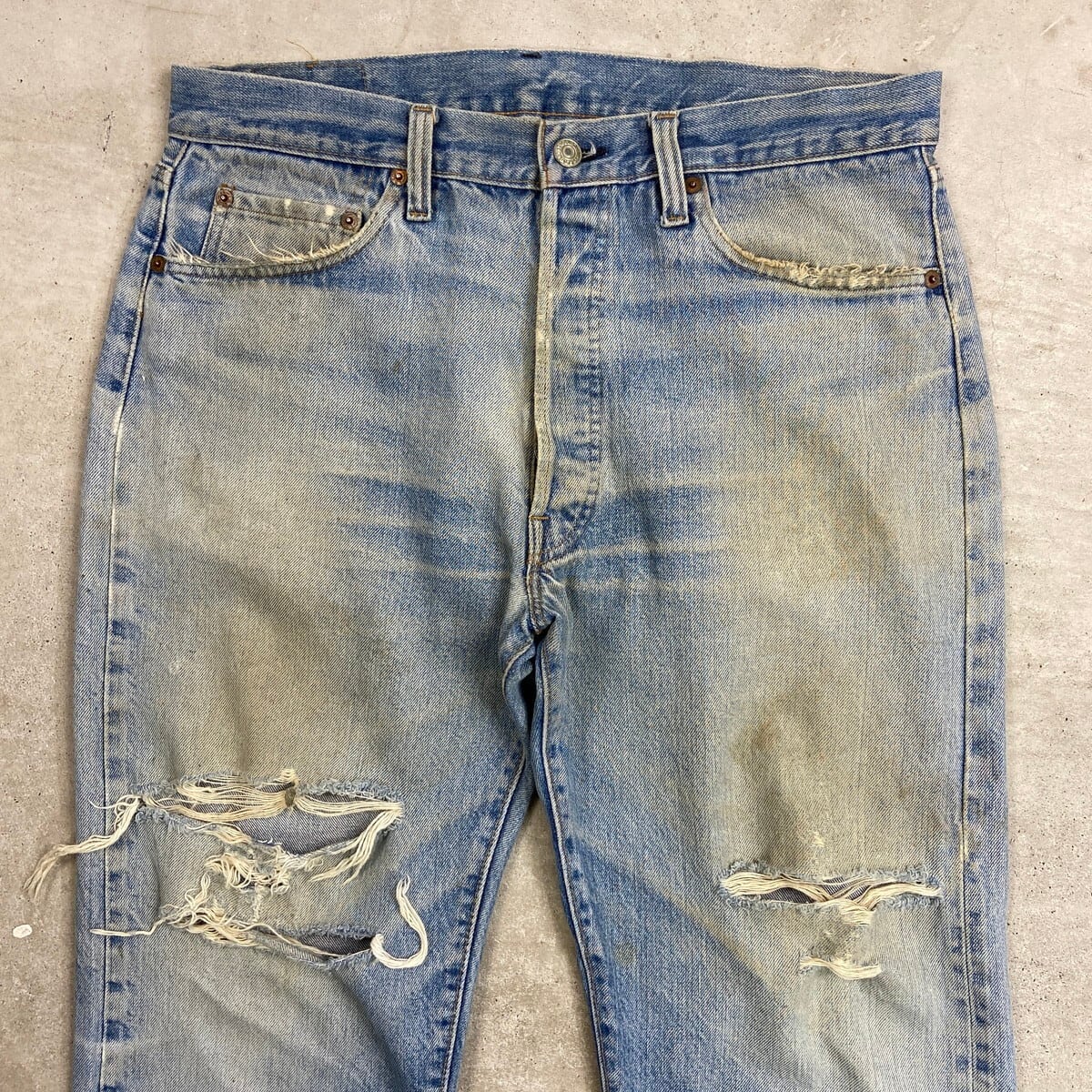 70年代 USA製 Levi's リーバイス 501 66後期 ストレート クラッシュデニムパンツ メンズW33相当 古着 70s ヴィンテージ VINTAGE アメカジ ジーンズ ポケット裏チェーンステッチ 黒カンヌキ アタリ ヒゲ 青色【デニムパンツ】/ブルー