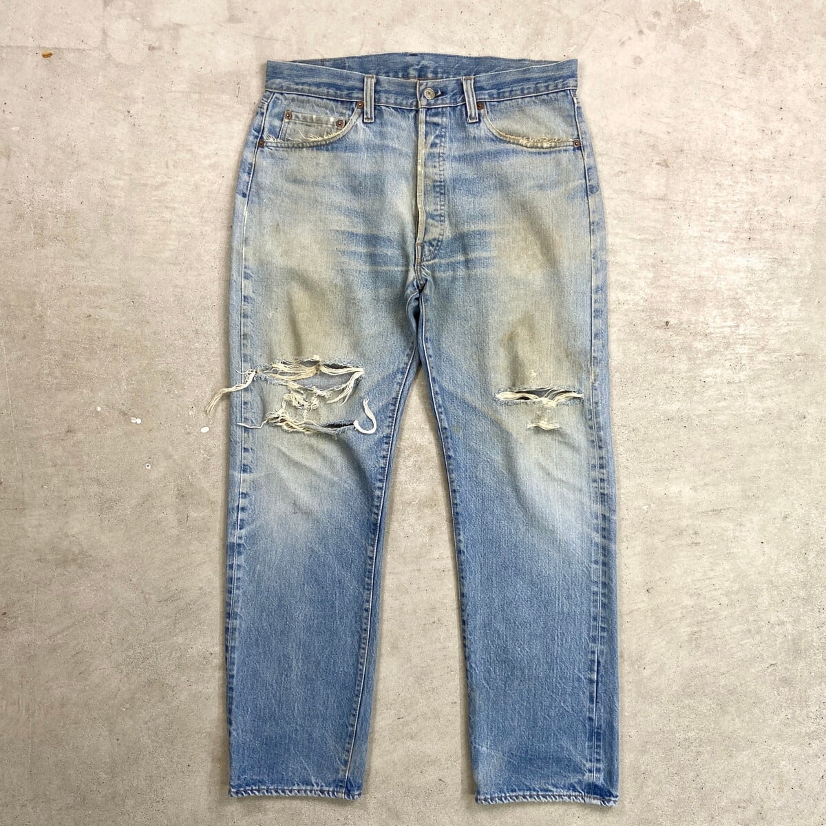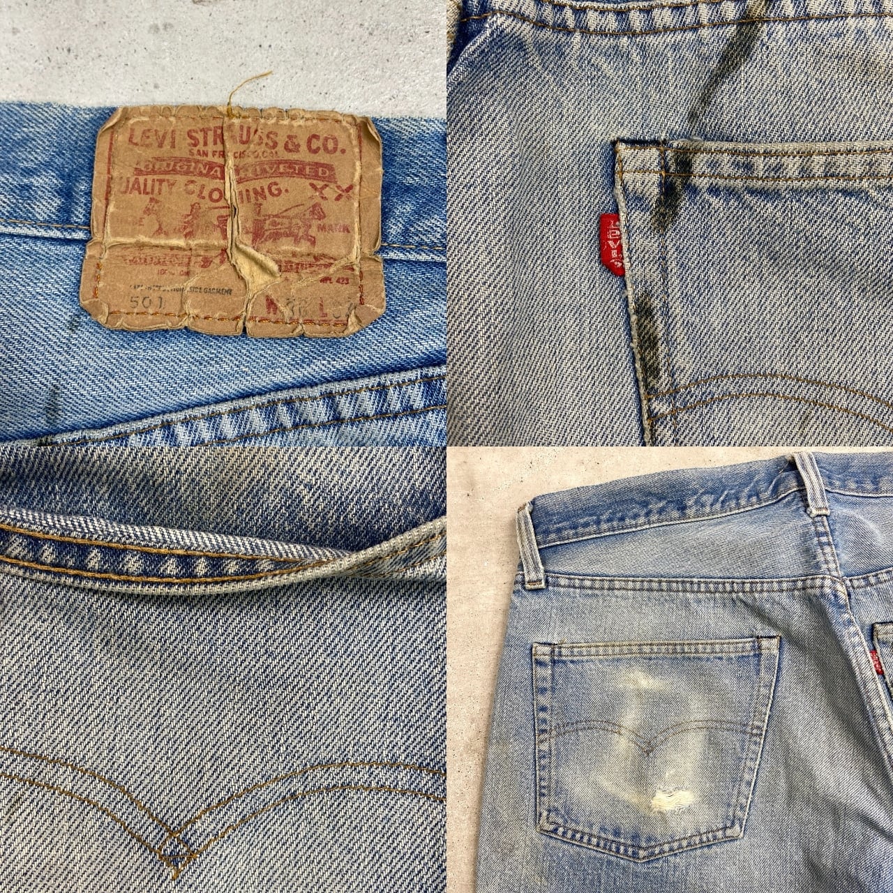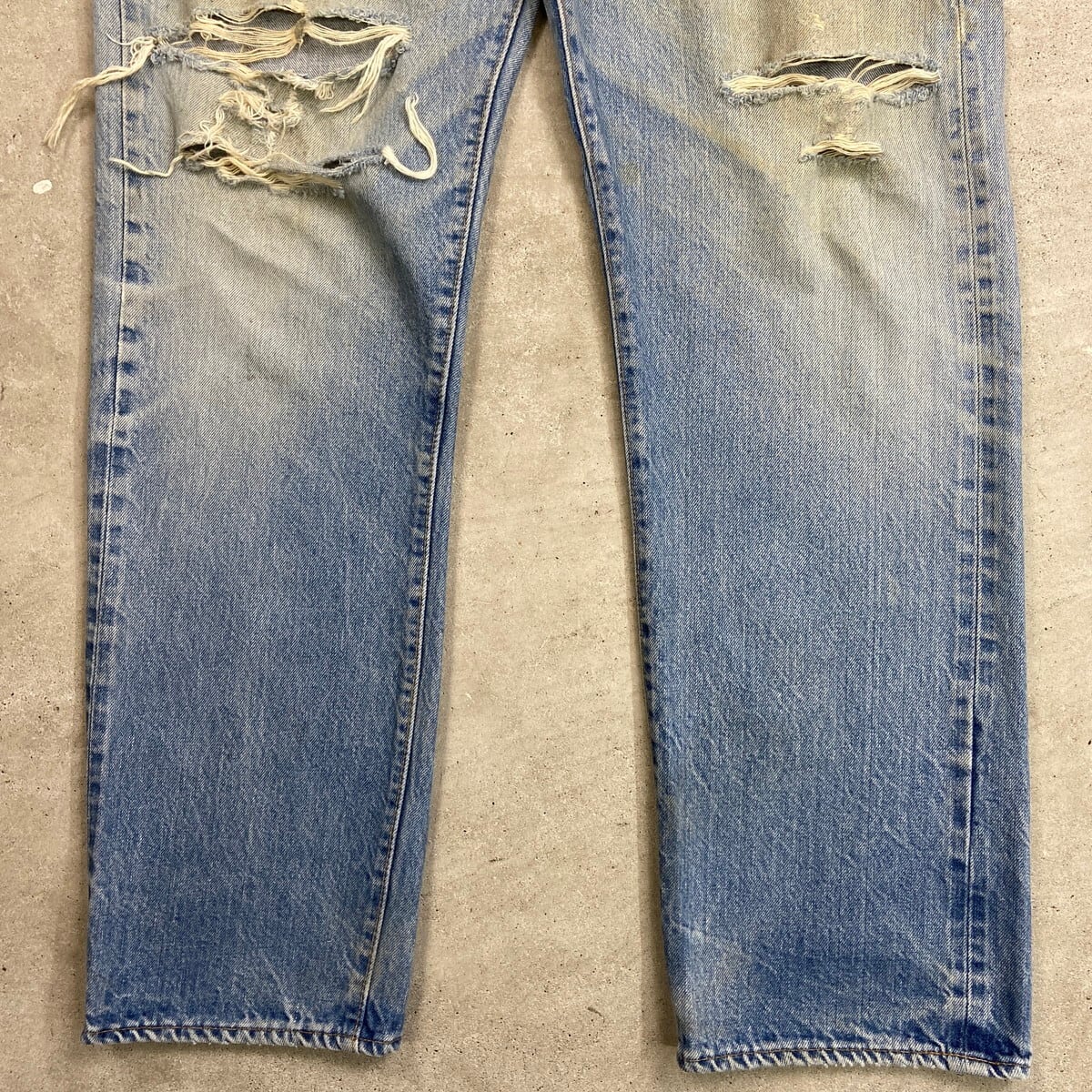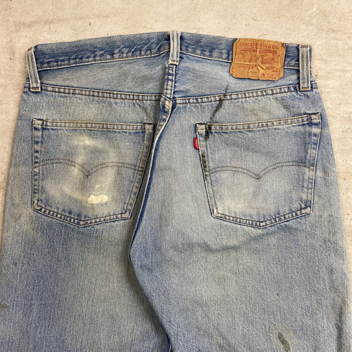 70年代 USA製 Levi's リーバイス 501 66後期 ストレート クラッシュデニムパンツ メンズW33相当 古着 70s ヴィンテージ VINTAGE アメカジ ジーンズ ポケット裏チェーンステッチ 黒カンヌキ アタリ ヒゲ 青色【デニムパンツ】/ブルー