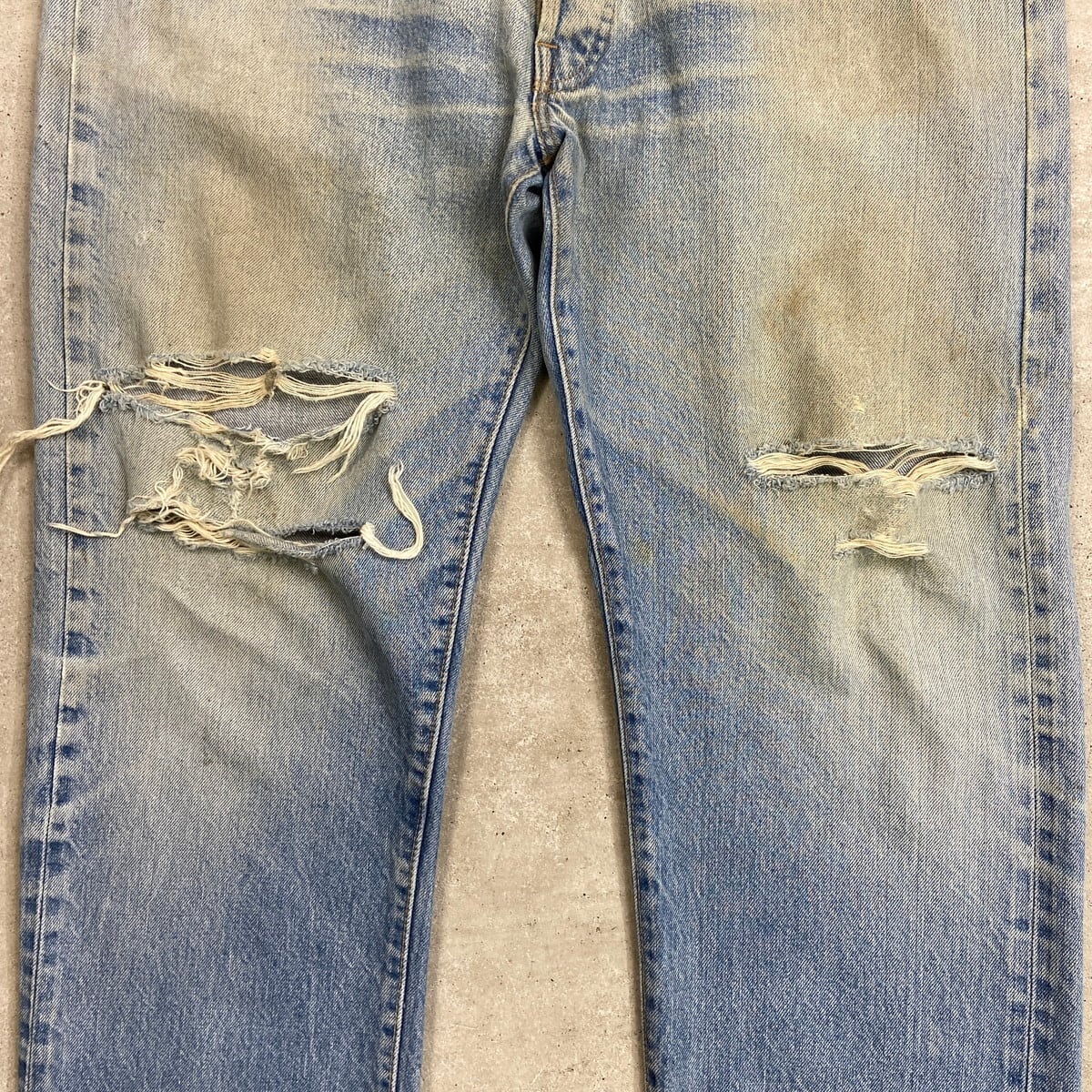 ■70年代 USA製 Levi's リーバイス 501 66後期 ストレート クラッシュデニムパンツ メンズW33相当 古着 70s ヴィンテージ VINTAGE アメカジ ジーンズ ポケット裏チェーンステッチ 黒カンヌキ アタリ ヒゲ 青色【デニムパンツ】/ブルー