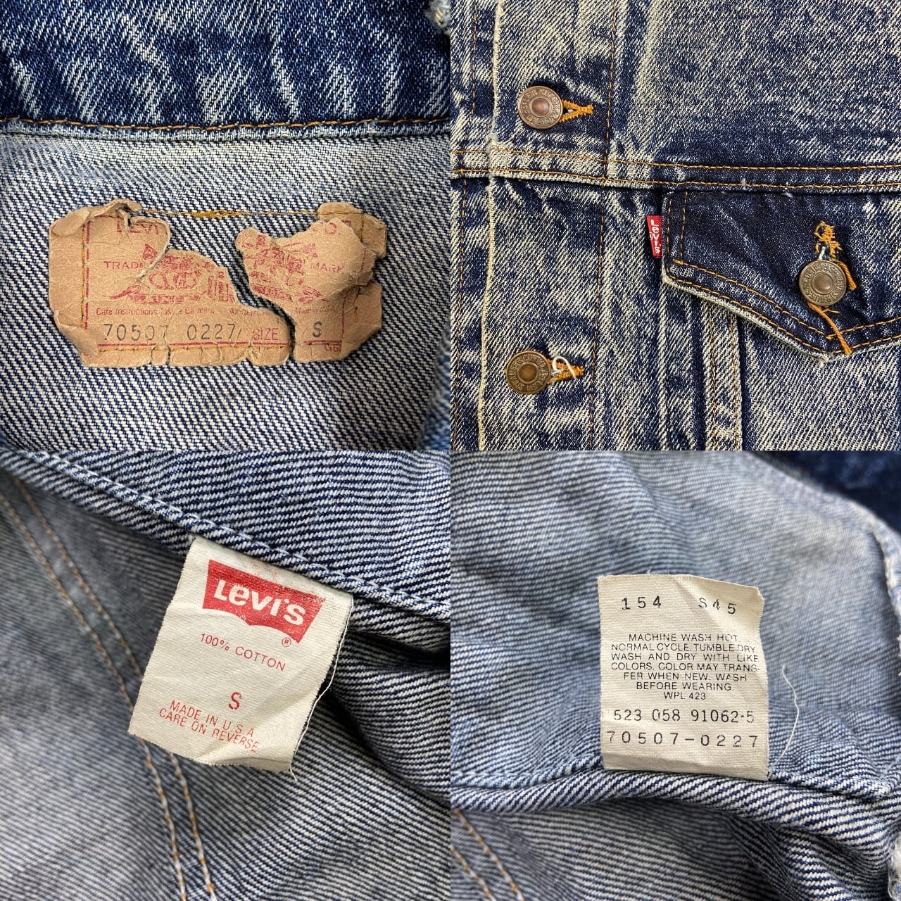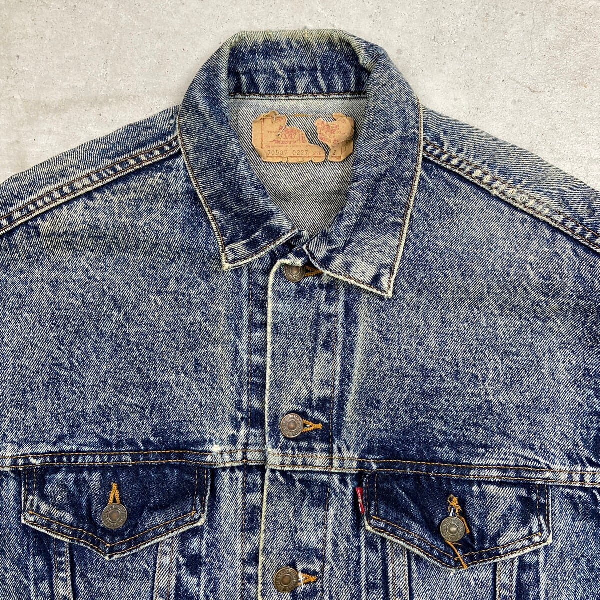 80年代 USA製 Levi's リーバイス 70507 0227 ケミカルウォッシュ デニムジャケット メンズM相当 古着 80s ヴィンテージ VINTAGE アメカジ トラッカージャケット 青色【デニムジャケット】/ブルー