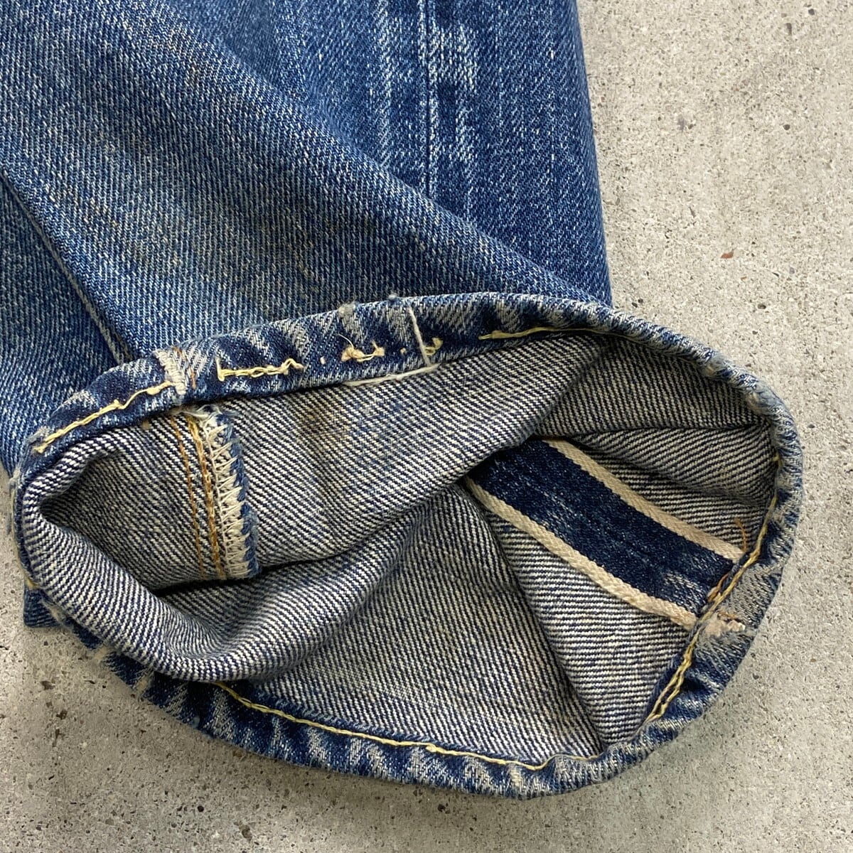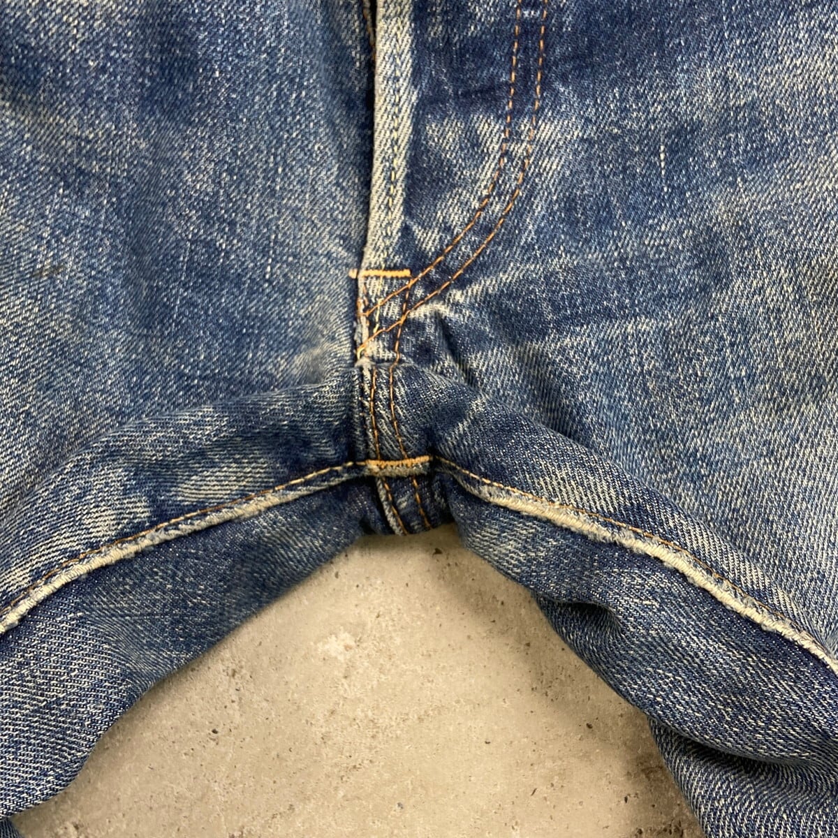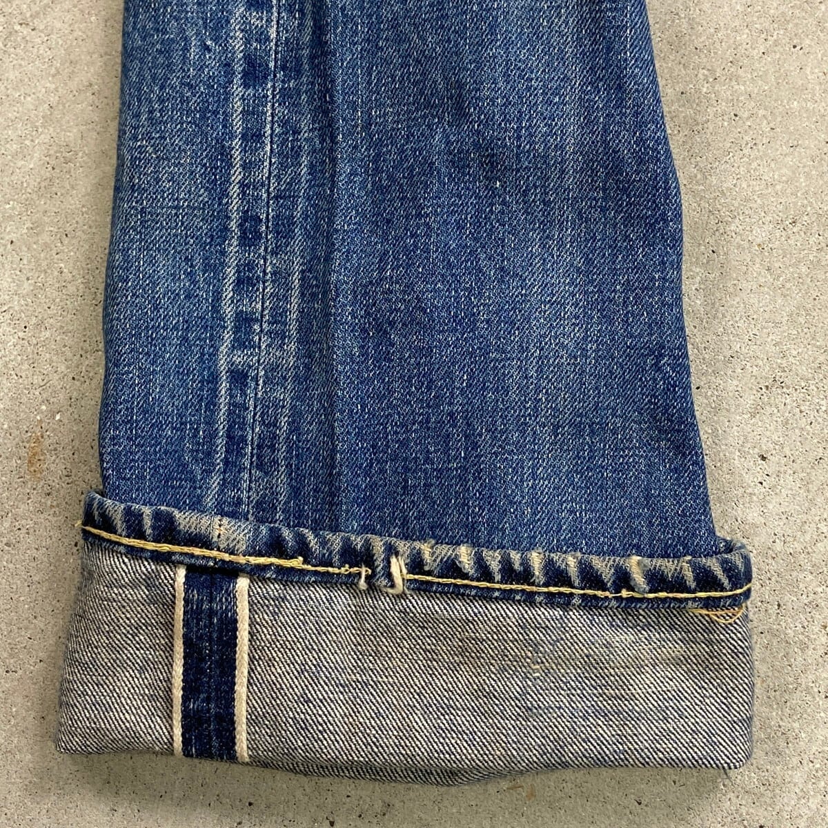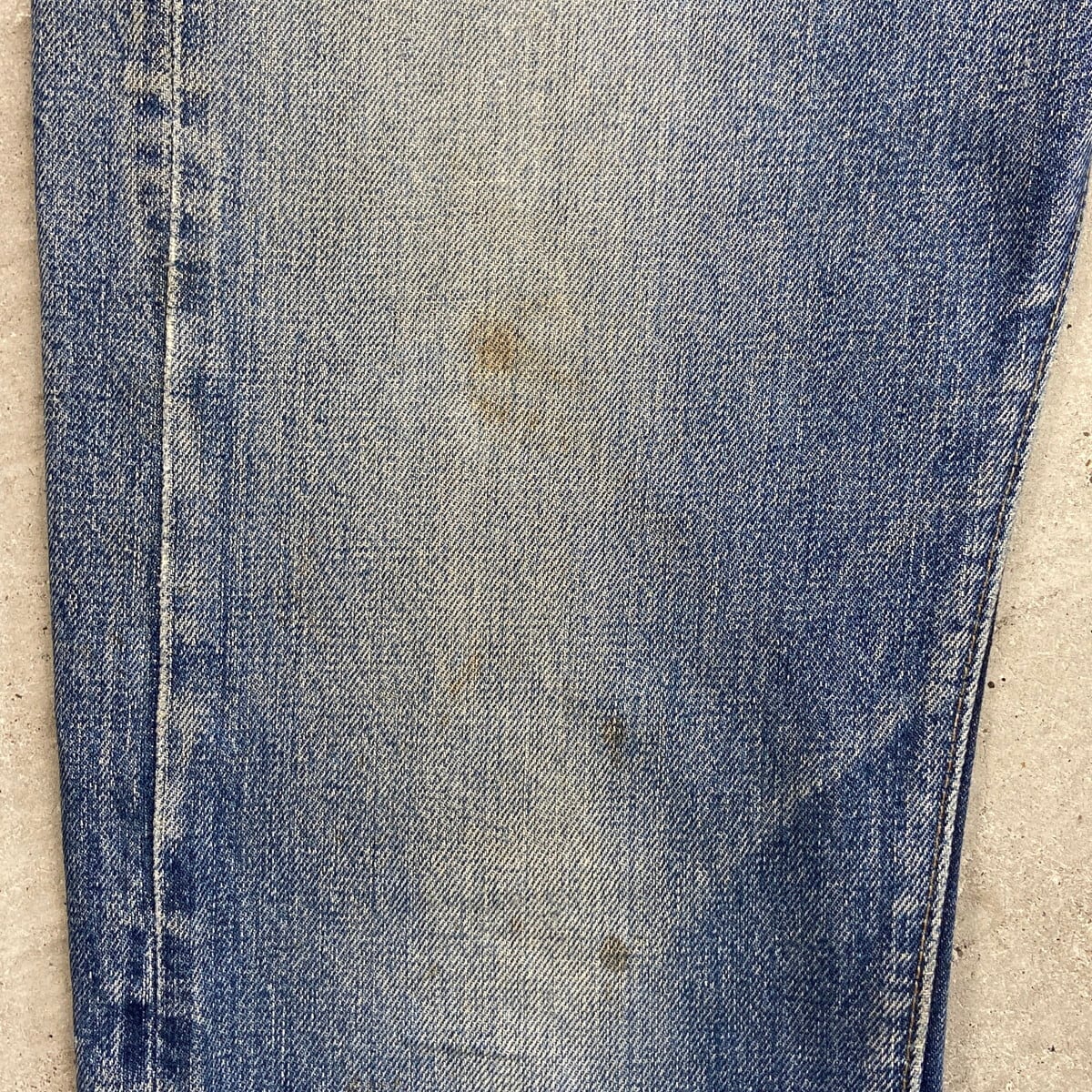 BIG Eらしい縦落ちやヒゲなど抜群にいい色落ちに加え、汚れ、ステッチ抜け等リアルなビンテージならではな使用感のある雰囲気の良いコンディションです。
