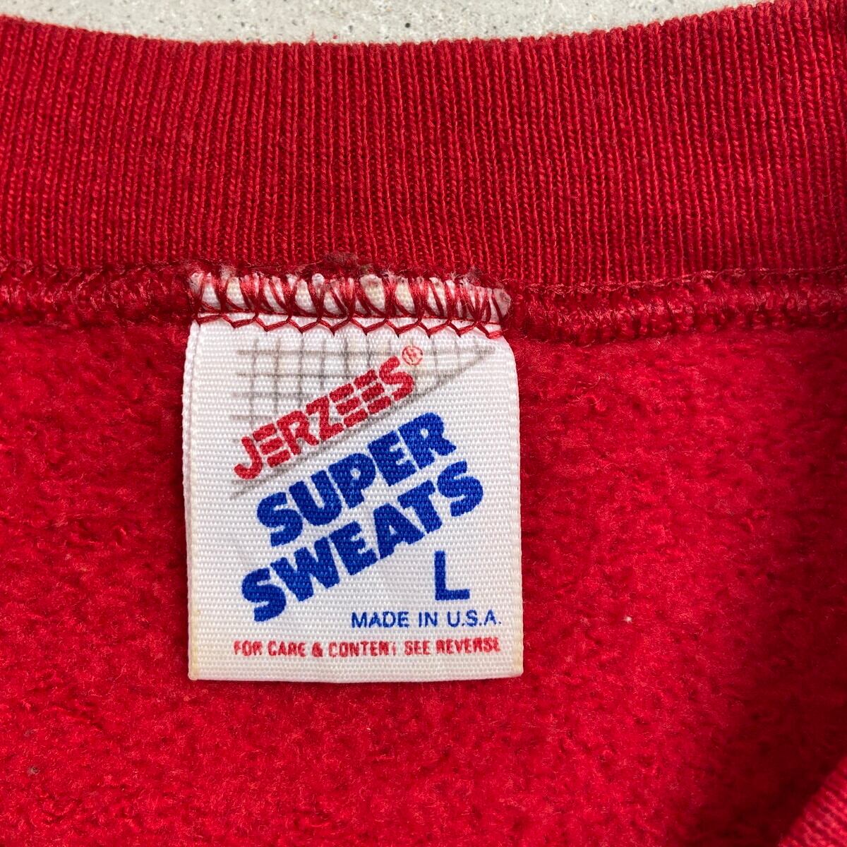 90年代 USA製 WISCONSIN BADGERS ROSE BOWL カレッジチームロゴ刺繍 スウェットシャツ メンズM相当 古着 90s VINTAGE ヴィンテージ ローズボウル アメフト スポーツ 赤色【スウェット】/レッド
