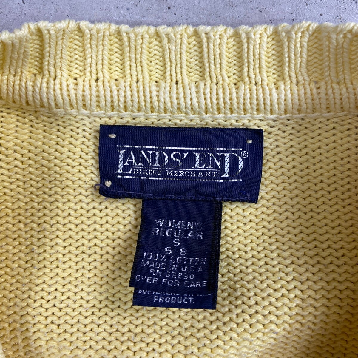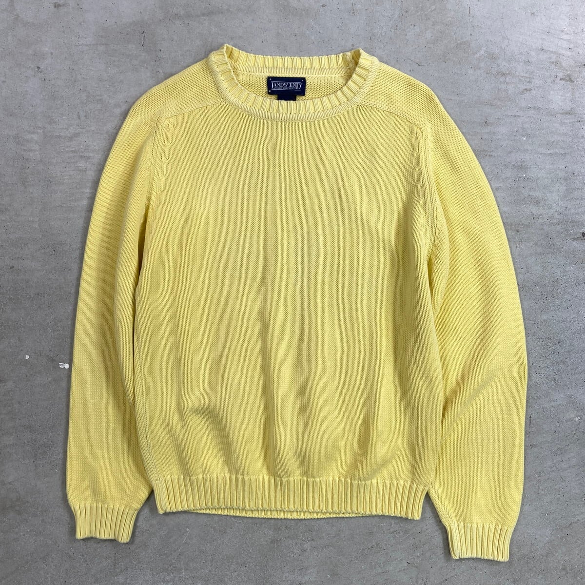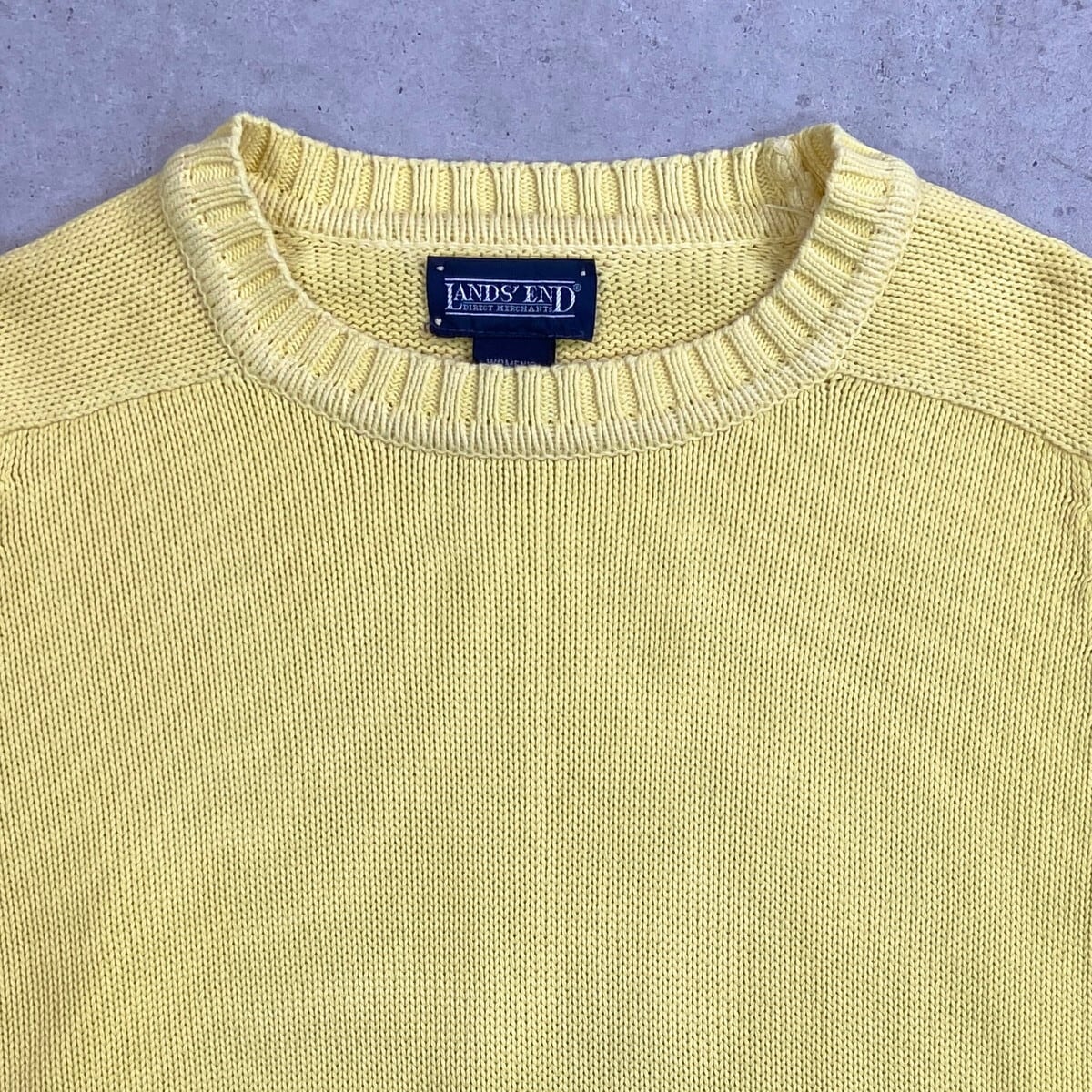 90年代 USA製 LANDS'END ランズエンド ドリフターセーター メンズM相当 レディースM相当 古着 90s VINTAGE ヴィンテージ コットンニット 黄色【ニットセーター】/イエロー