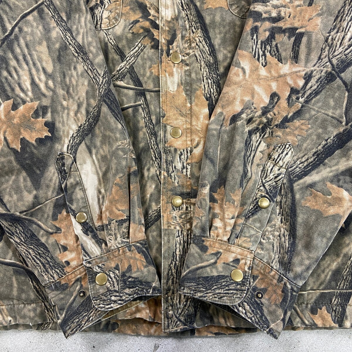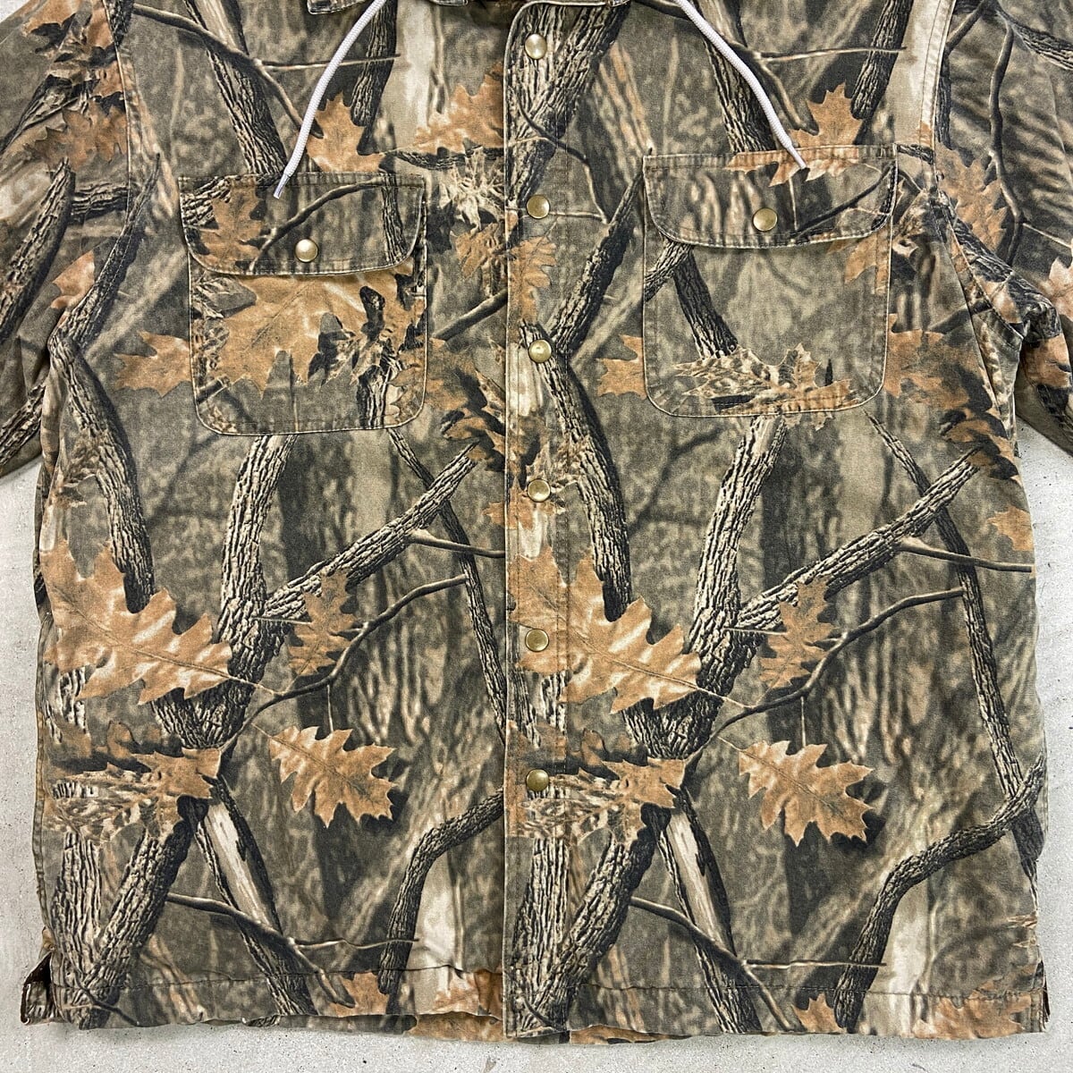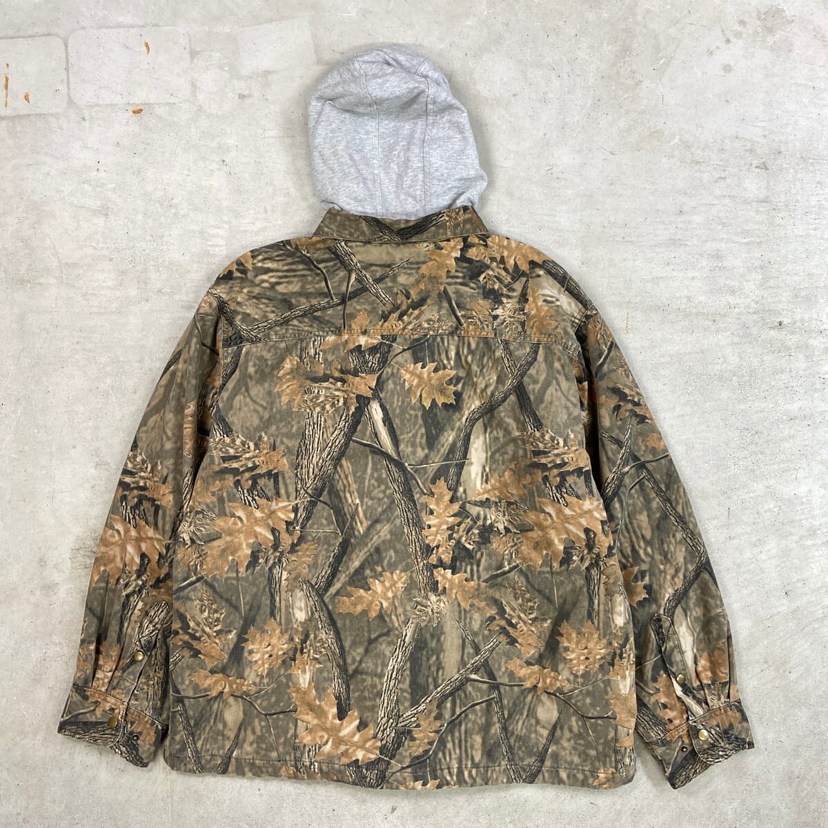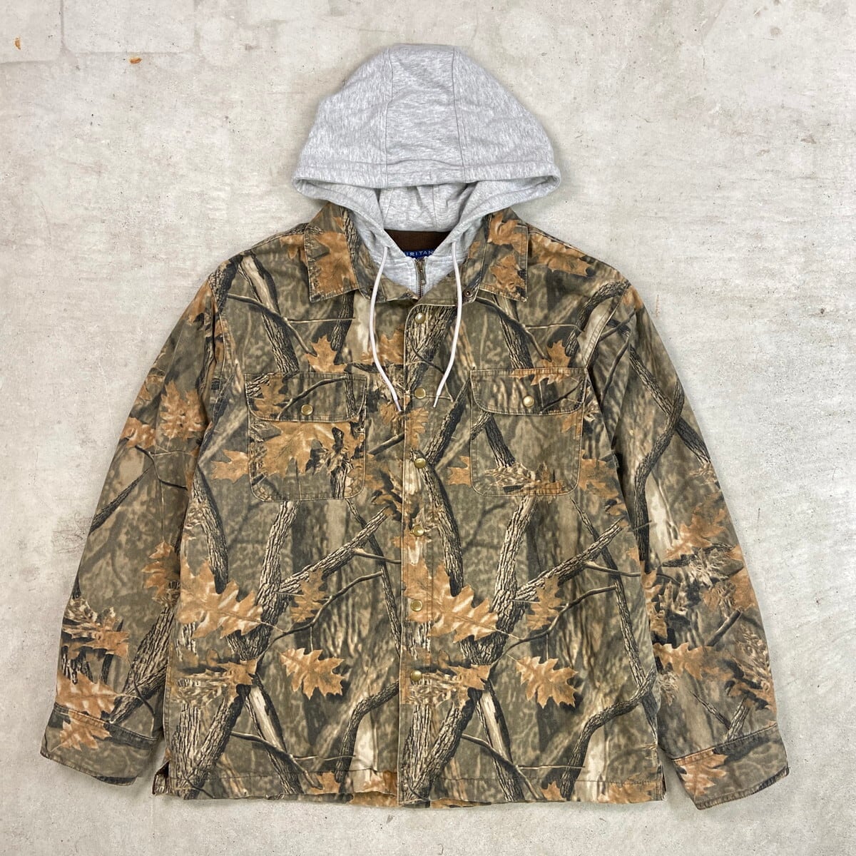 ■PURITAN リアルツリーカモジャケットパーカー メンズXL相当 古着 アメカジ フェイクレイヤード 迷彩 ダブルポケット フリースライナー グレー ブラウン【コットンジャケット】/マルチカラー