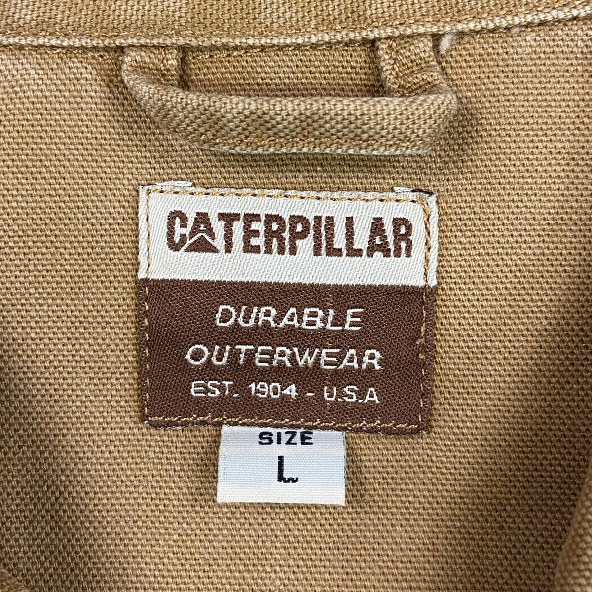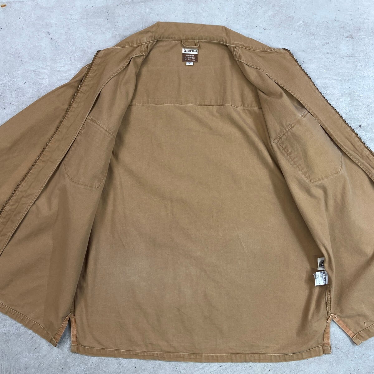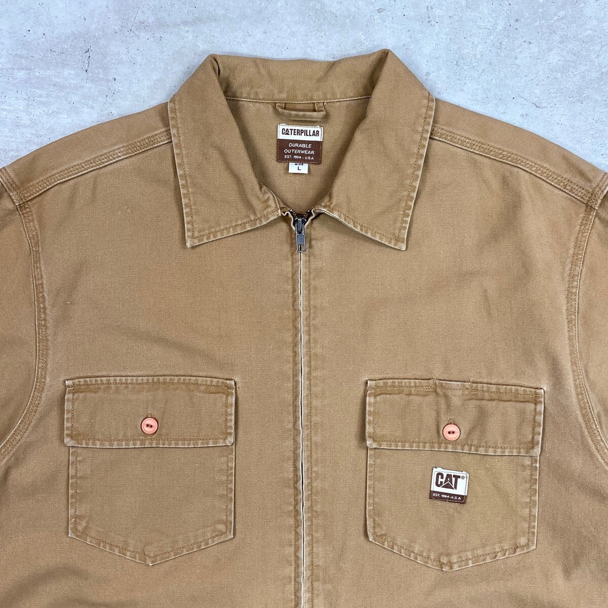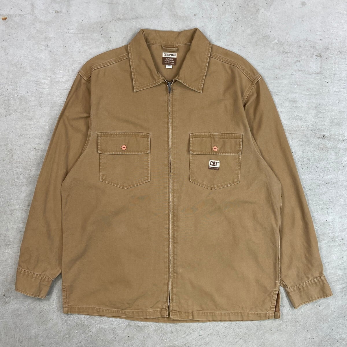 CATERPILLAR ダック地 フルジップ ワークジャケット メンズXL相当 古着 アメカジ ダブルポケット 猫目ボタン ブラウン【ワークジャケット】/ブラウン