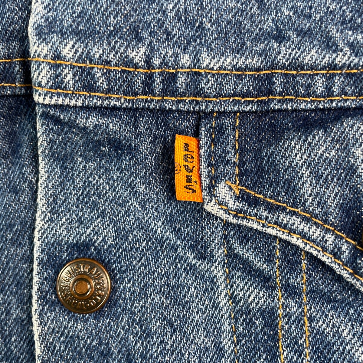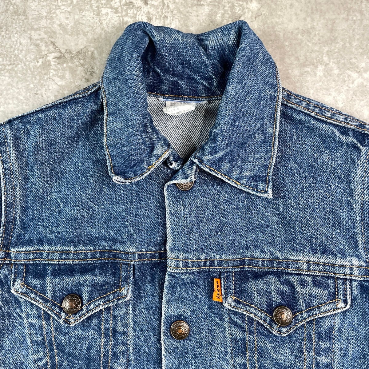 ■【kids】80年代 USA製 Levi's リーバイス デニムジャケット オレンジタブ 3~4歳相当 古着 キッズ 子供服 80s VINTAGE ヴィンテージ アメカジ スナップボタン トラッカージャケット 青色【デニムジャケット】/ブルー