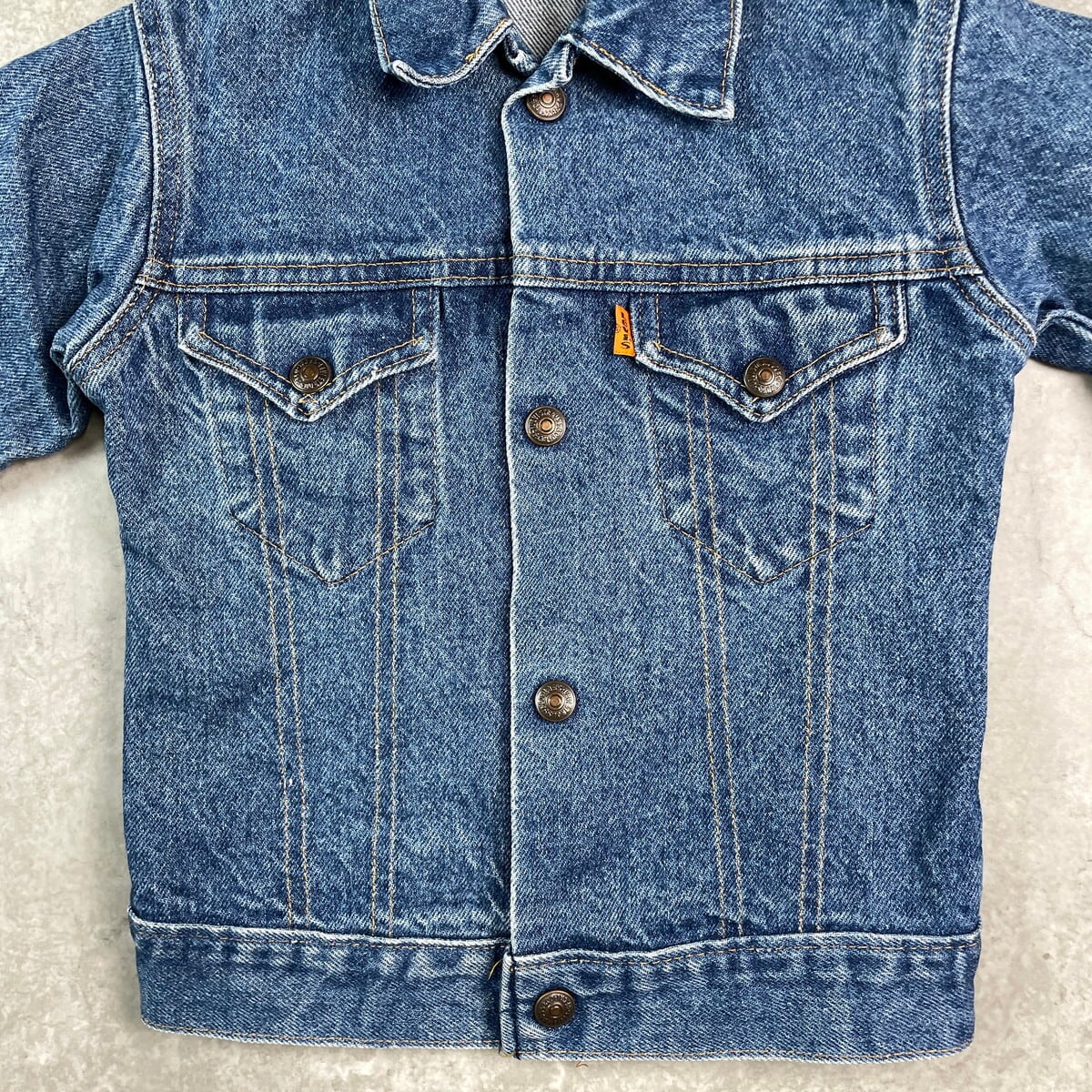 【kids】80年代 USA製 Levi's リーバイス デニムジャケット オレンジタブ 3~4歳相当 古着 キッズ 子供服 80s VINTAGE ヴィンテージ アメカジ スナップボタン トラッカージャケット 青色【デニムジャケット】/ブルー