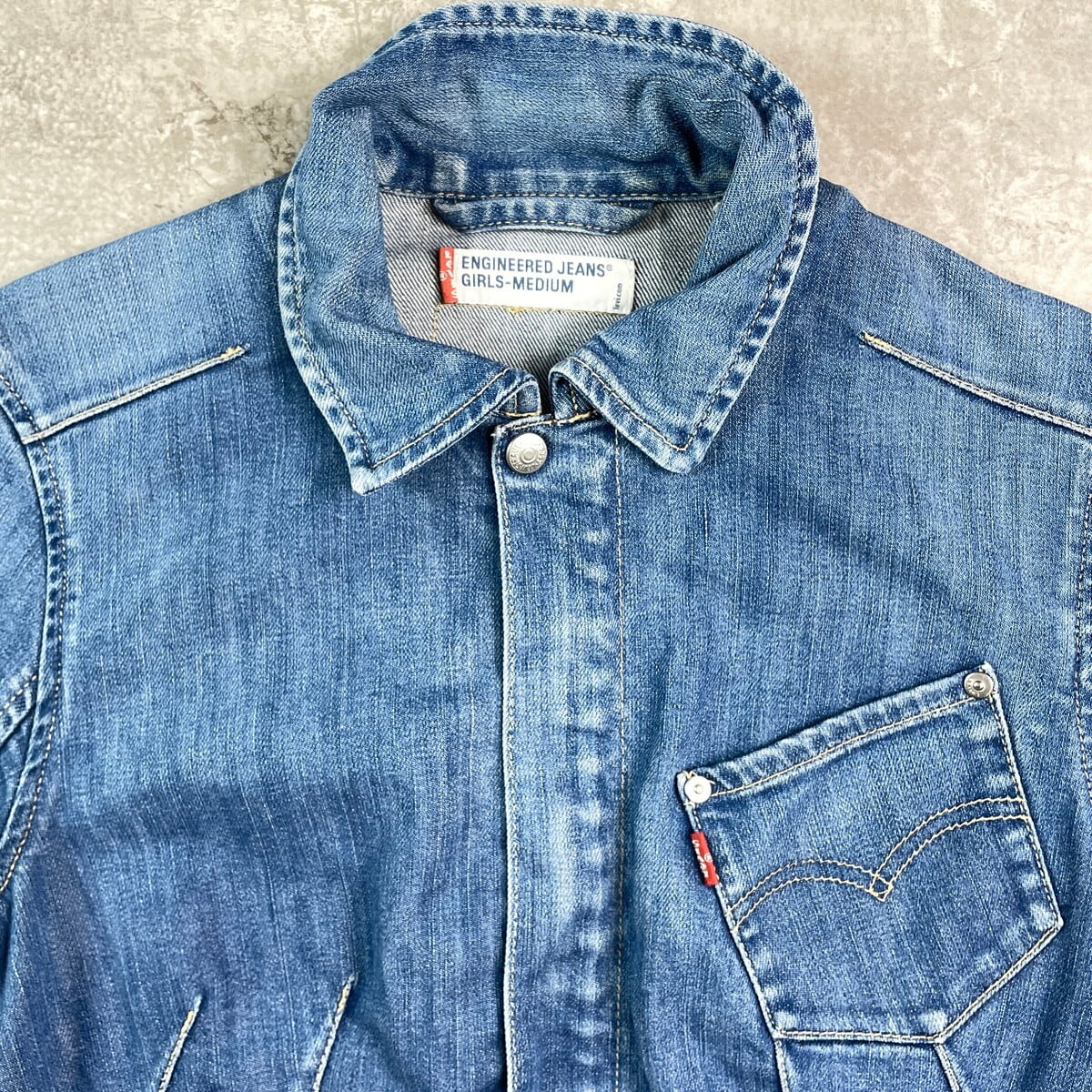 【kids】Levi's ENGINEERED JEANS ユーロリーバイス エンジニア デニムジャケット 7~8歳相当 古着 キッズ 子供服 立体裁断 アメカジ スナップボタン 青色【デニムジャケット】/ブルー