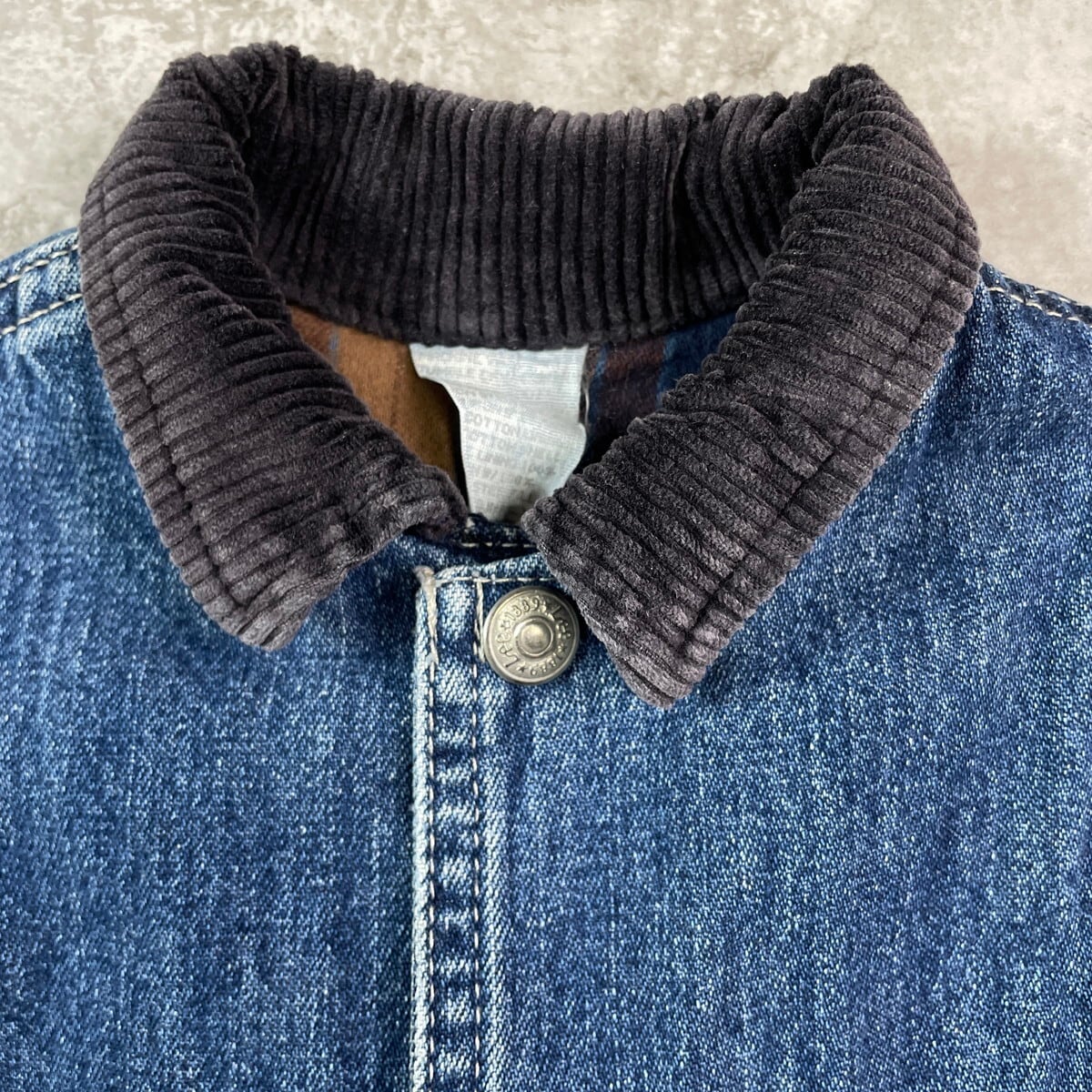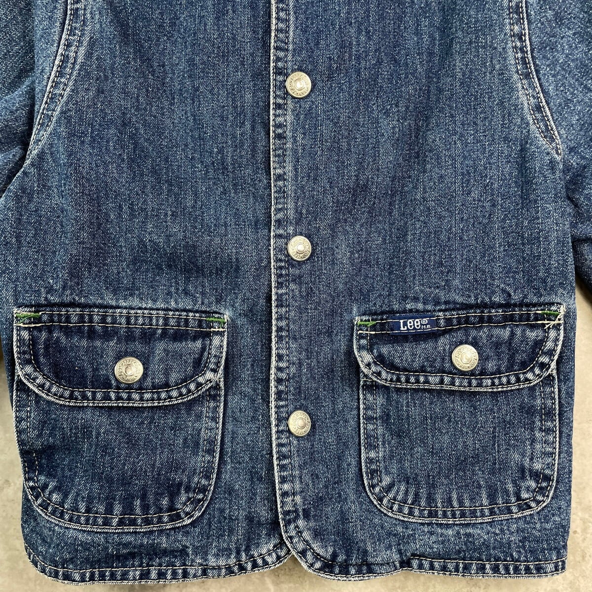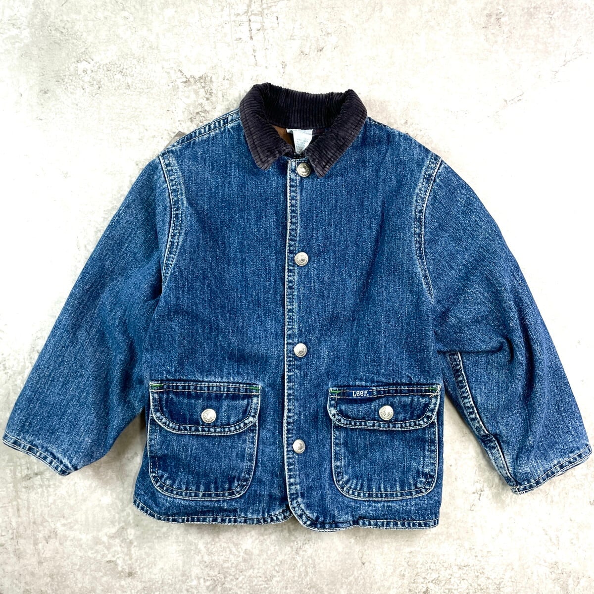 【kids】Lee リー デニムカバーオール コーデュロイ襟 6~7歳相当 サイズ90相当 古着 キッズ ベビー 子供服 アメカジ チェックネルライナー スナップボタン 青色【デニムジャケット】/ブルー