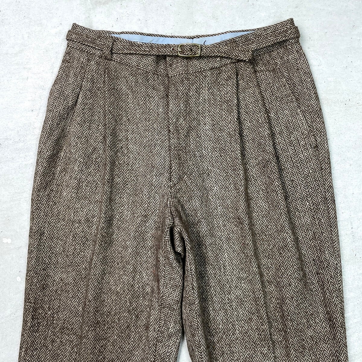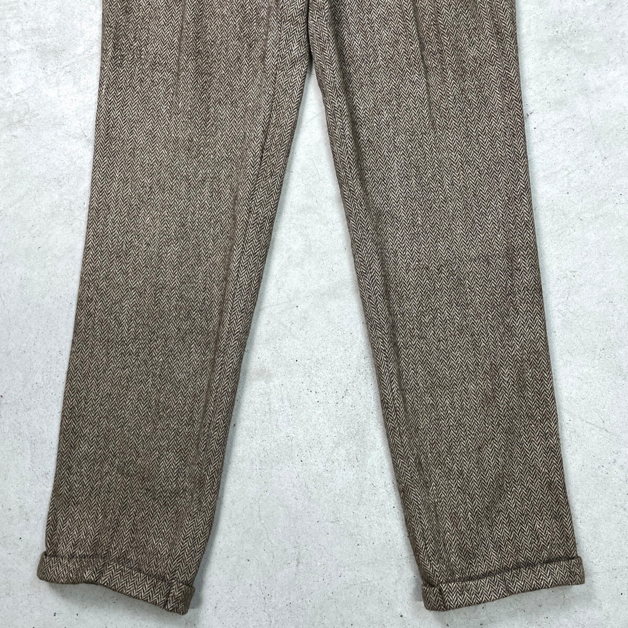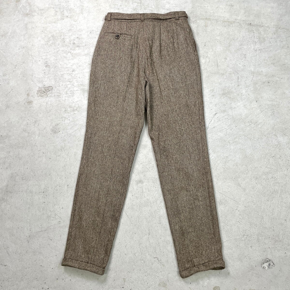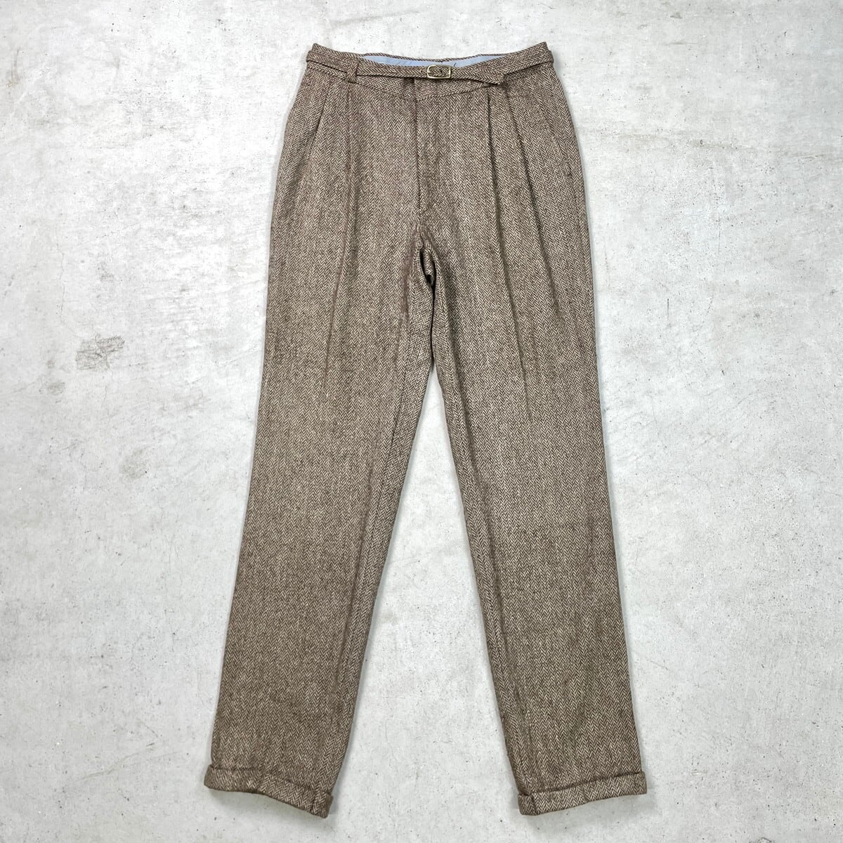 ■MICHAEL HILL マイケルヒル ヘリンボーンツイード ウールスラックスパンツ 2タック メンズW31相当 古着 HBT YKKジッパー ブラウン ベージュ【スラックス,スタプレ】/ブラウン