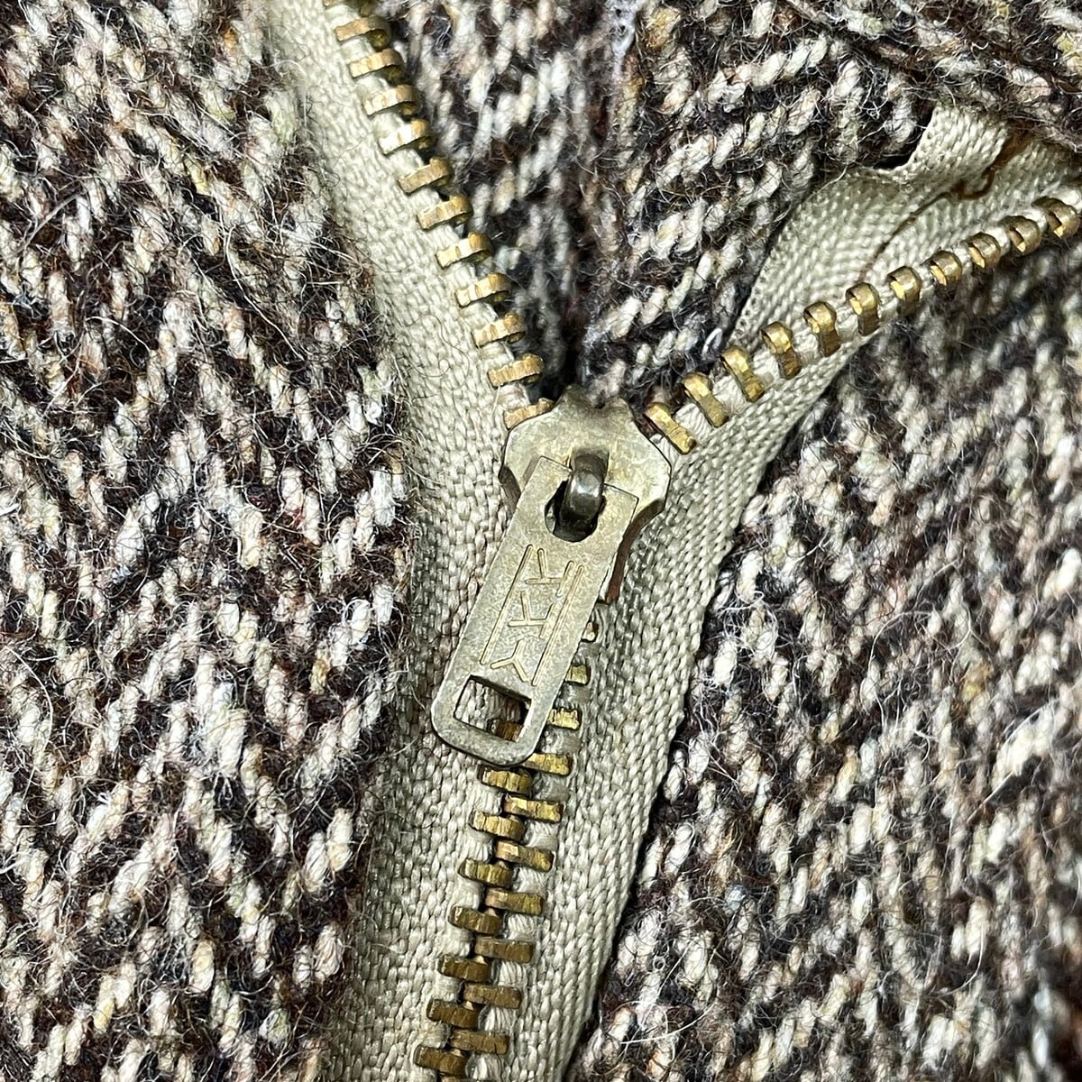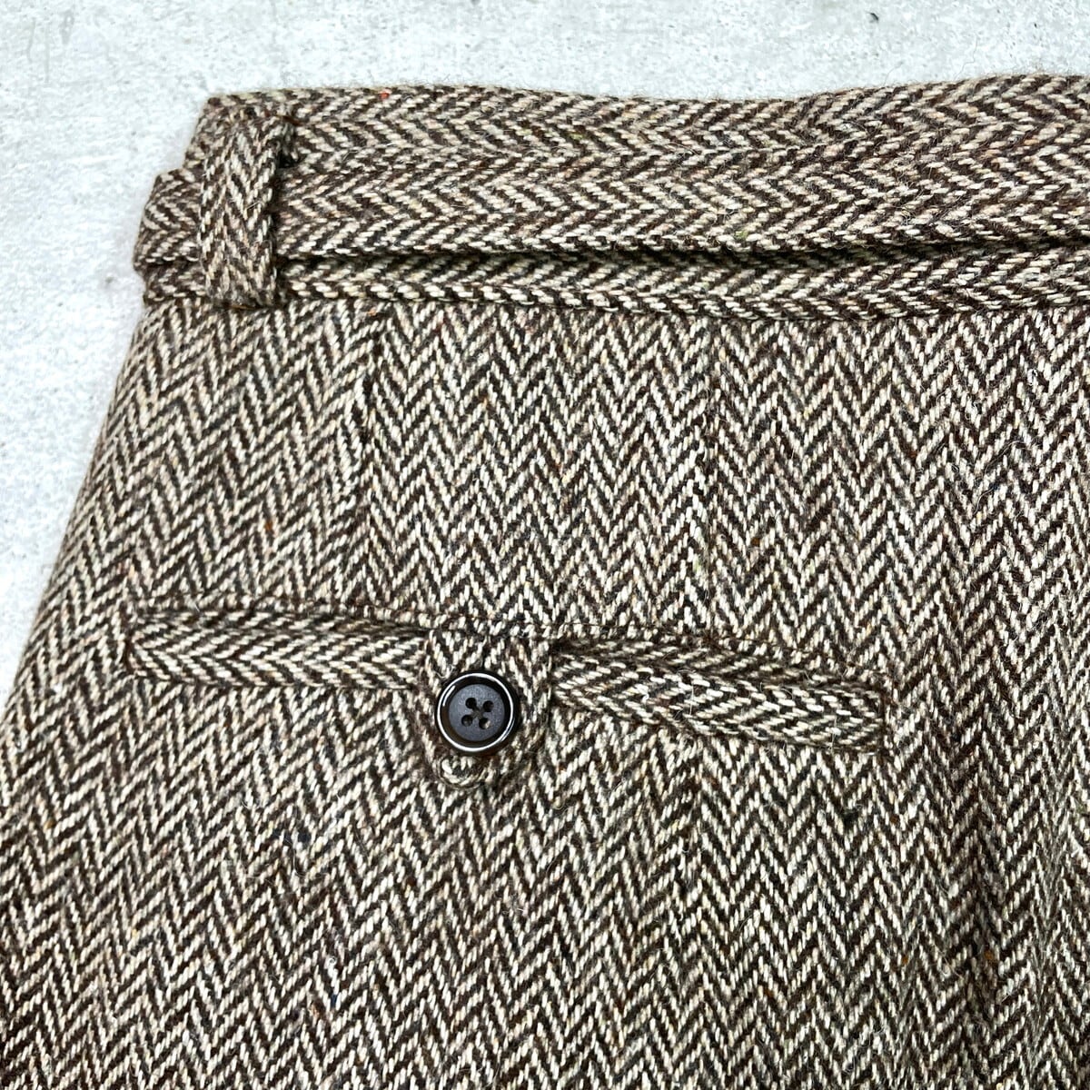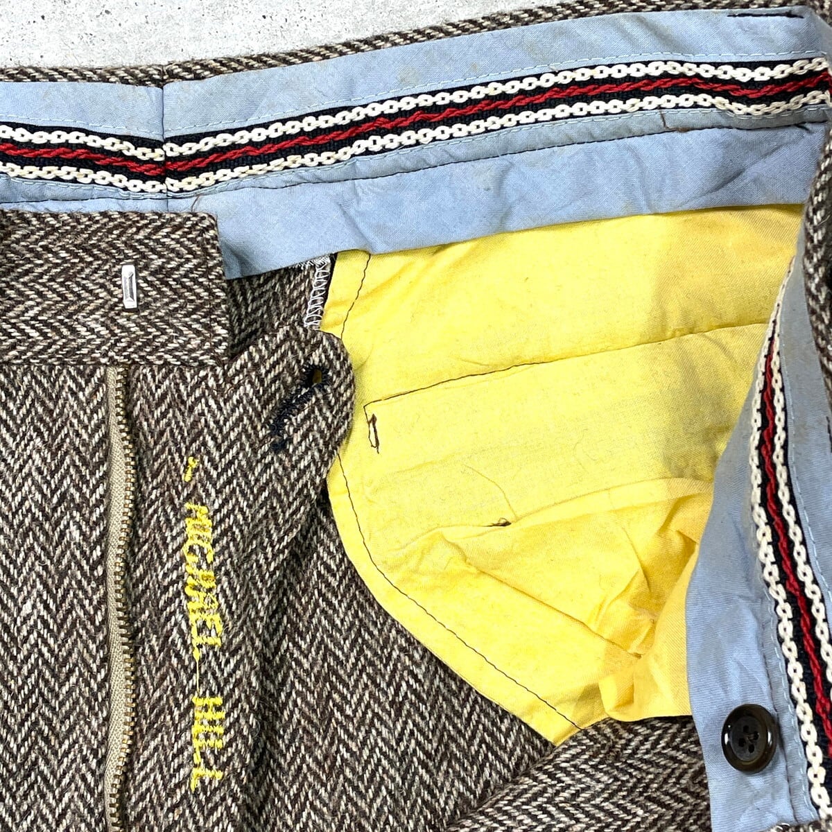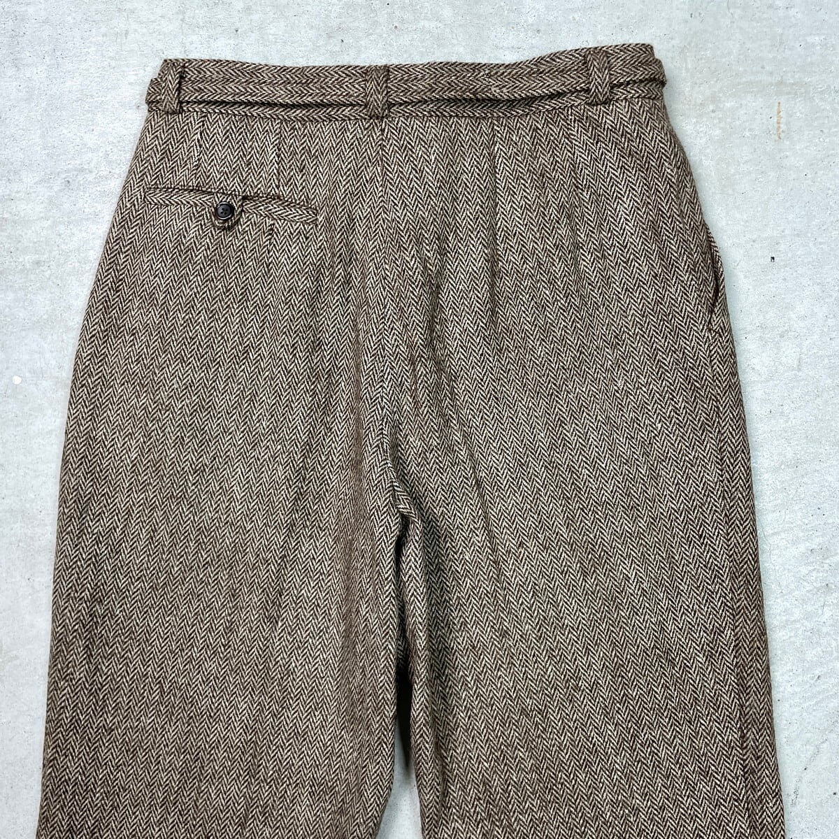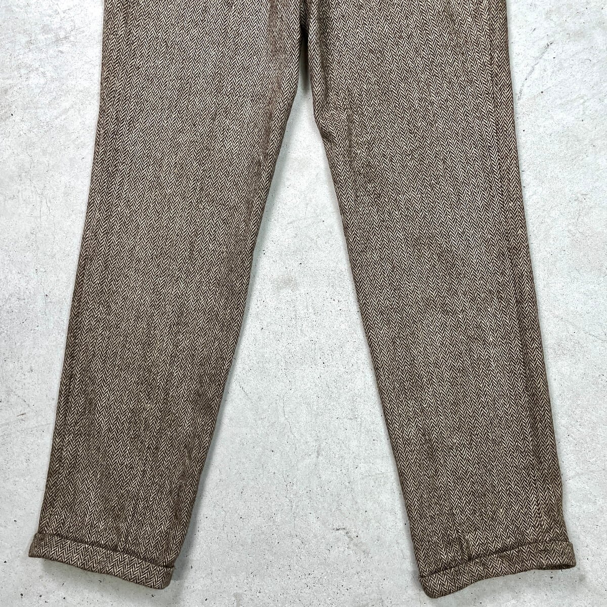 ■MICHAEL HILL マイケルヒル ヘリンボーンツイード ウールスラックスパンツ 2タック メンズW31相当 古着 HBT YKKジッパー ブラウン ベージュ【スラックス,スタプレ】/ブラウン