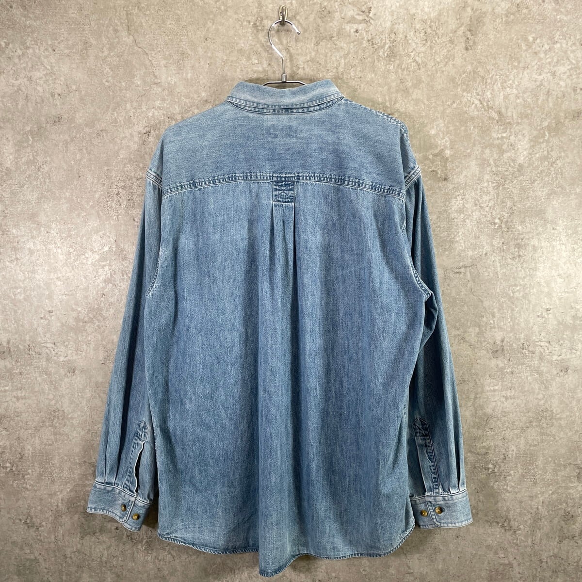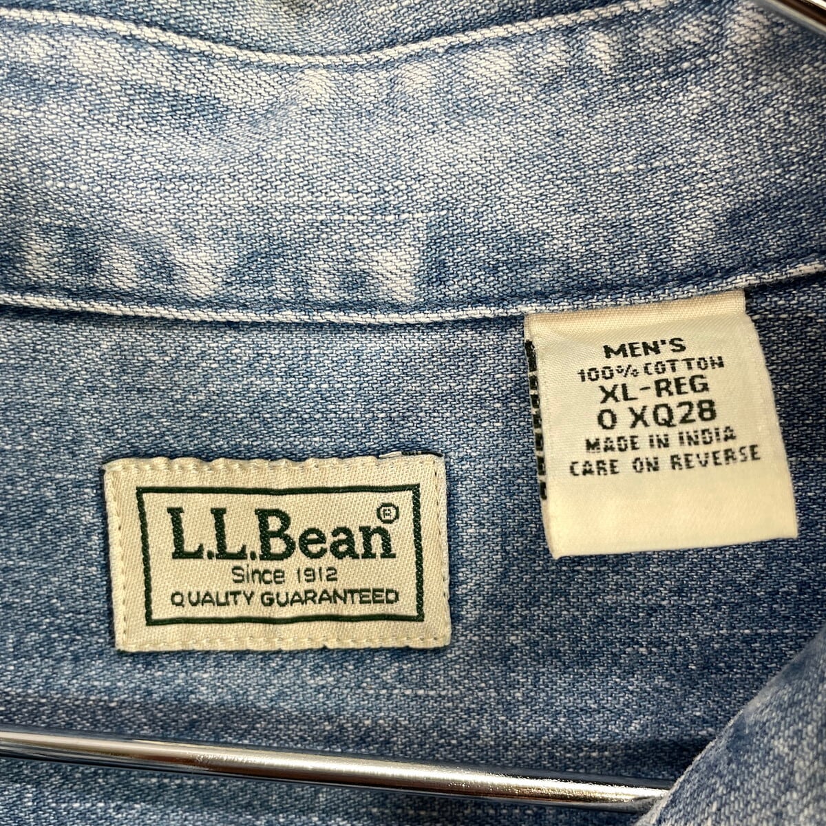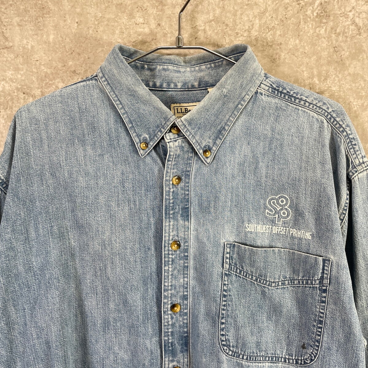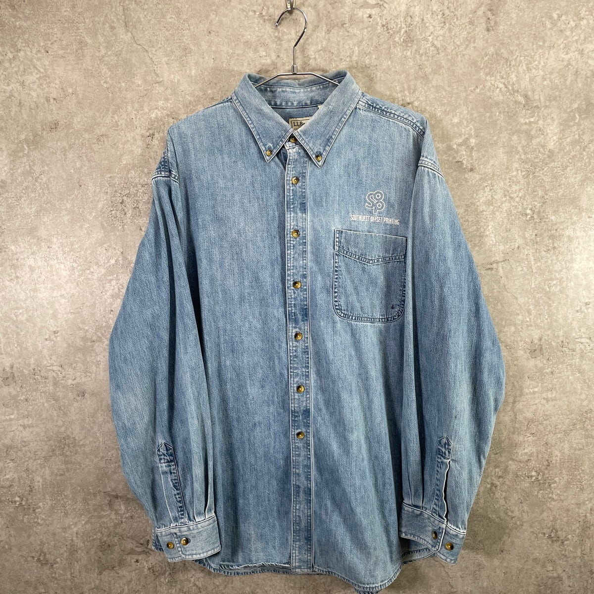 L.L.Bean エルエルビーン ワンポイント企業ロゴ刺繡 デニムシャツ メンズXL 古着アウトドア B.Dダウン ボタンダウンシャツ 胸ポケ 水色【長袖シャツ】/ライトブルー
