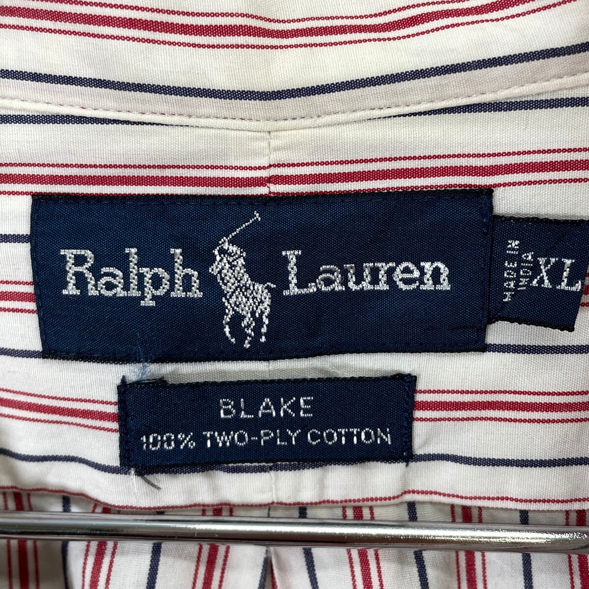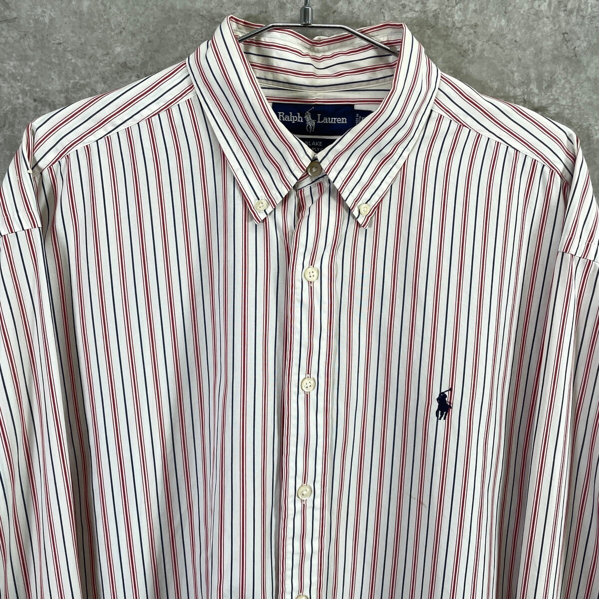 Ralph Lauren ラルフローレン BLAKE マルチストライプシャツ メンズ2XL相当 古着 ヴィンテージ VINTAGE B.D ボタンダウンシャツ ワンポイントロゴ刺繍 ビッグサイズ 大きいサイズ ホワイト ネイビー レッド【長袖シャツ】/マルチカラー