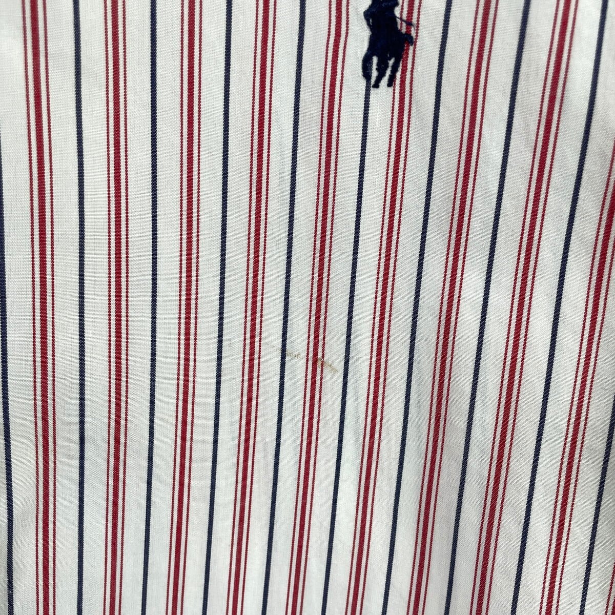 ■Ralph Lauren ラルフローレン BLAKE マルチストライプシャツ メンズ2XL相当 古着 ヴィンテージ VINTAGE B.D ボタンダウンシャツ ワンポイントロゴ刺繍 ビッグサイズ 大きいサイズ ホワイト ネイビー レッド【長袖シャツ】/マルチカラー
