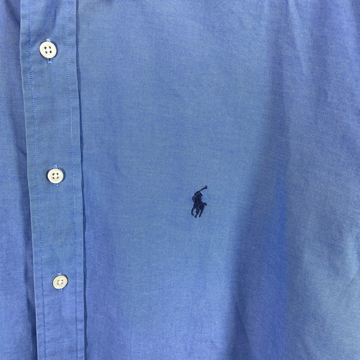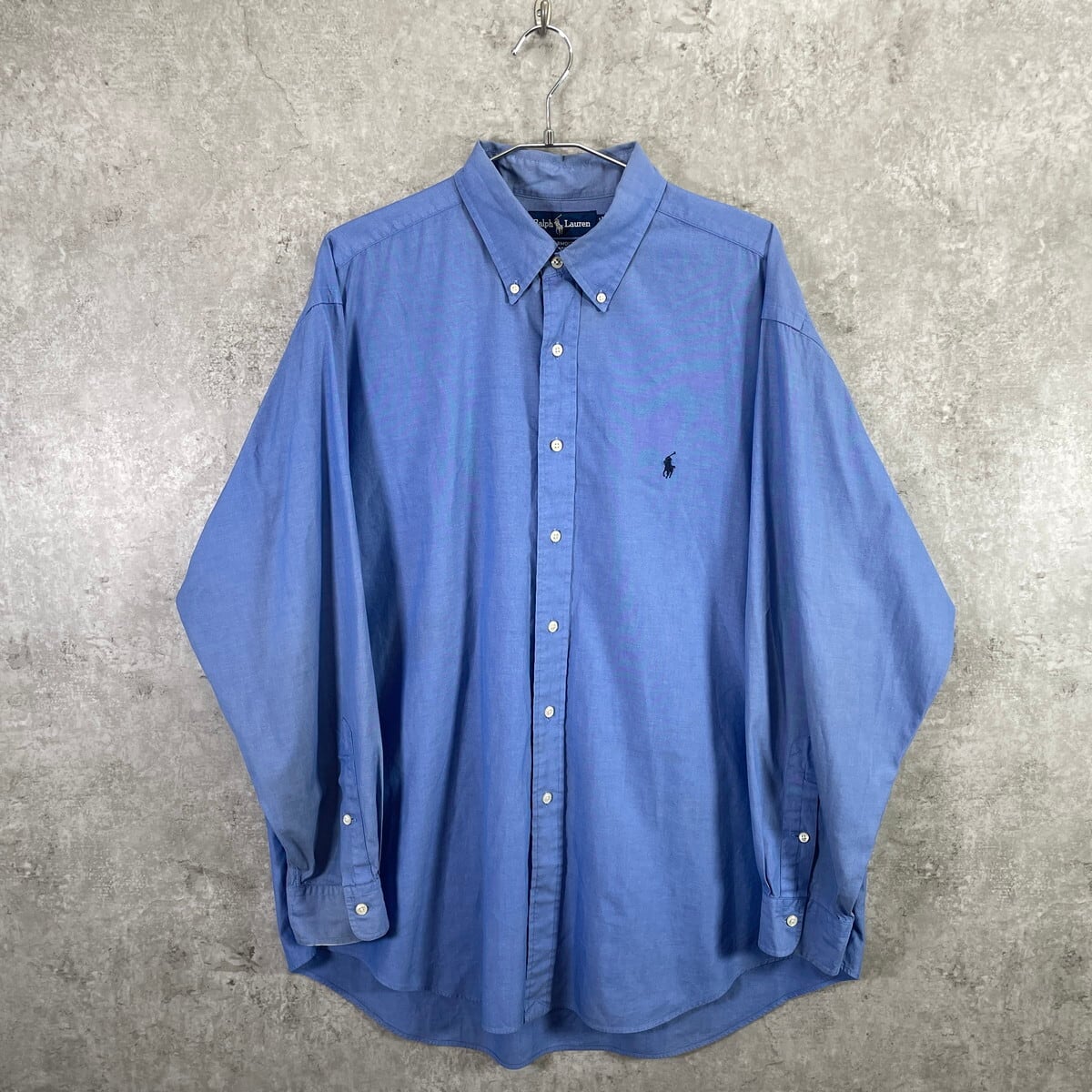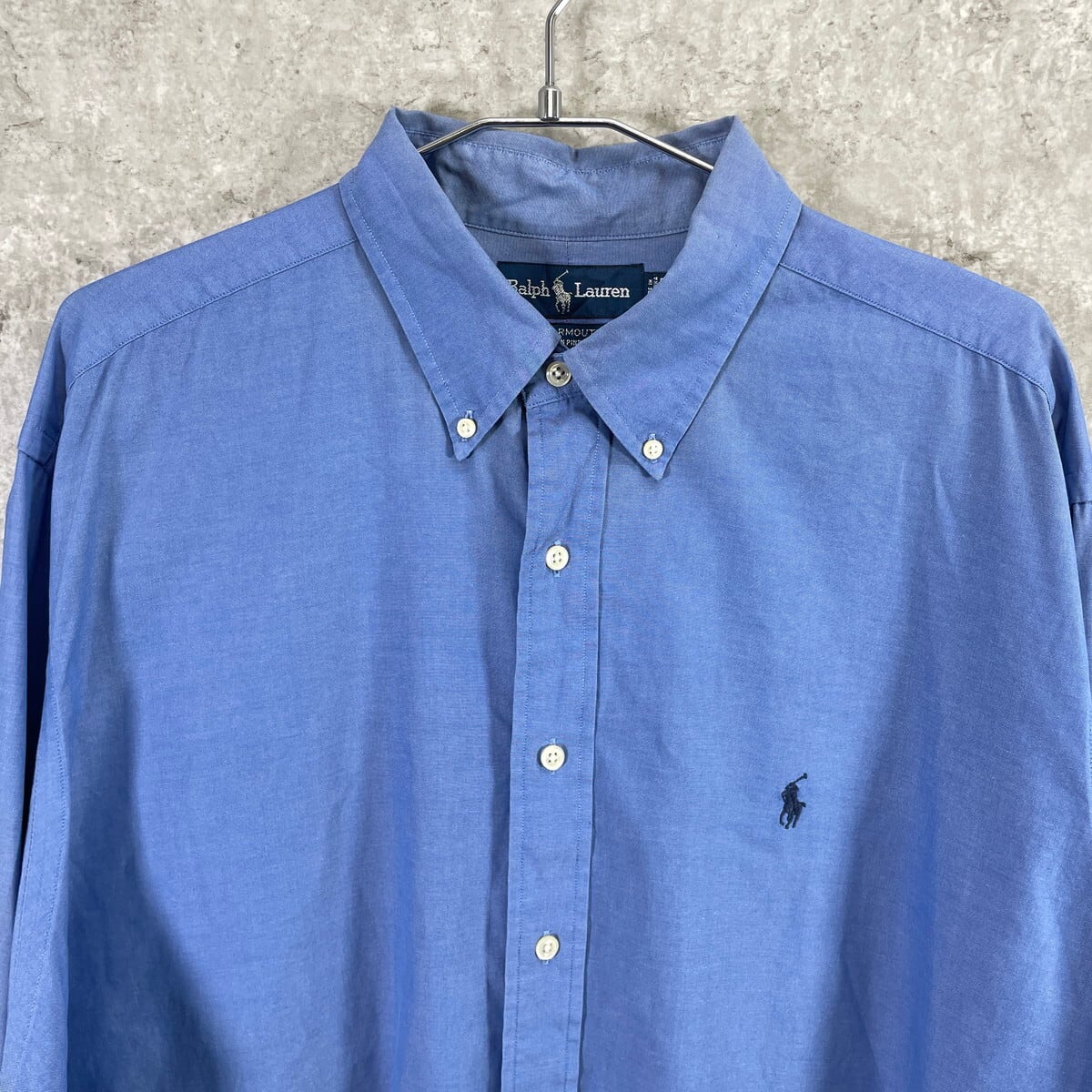 Ralph Lauren ラルフローレン YARMOUTH ワンポイントロゴ刺繡 オックスフォードシャツ メンズ2XL相当 古着 ヴィンテージ VINTAGE ボタンダウンシャツ ビッグサイズ 大きいサイズ 青色【長袖シャツ】/ブルー