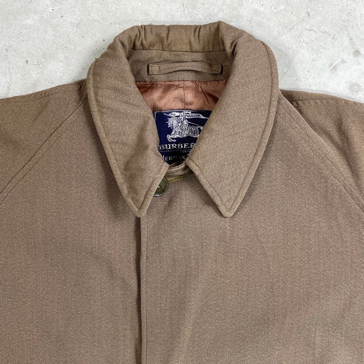 50年代 英国製 Burberrys バーバリー ギャバジン ステンカラーコート バルマカーンコート メンズXL相当 古着 50s VINTAGE ヴィンテージ 大文字タグ PRORSUM プローサム モスグリーン 苔色【コート】/カーキグリーン