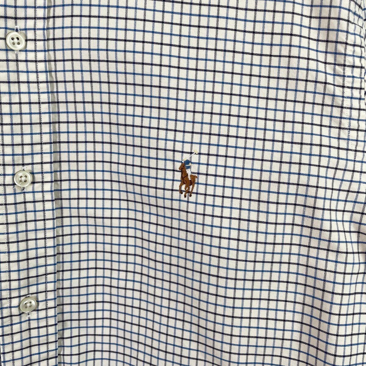 Ralph Lauren ラルフローレン CUSTOM FIT ワンポイントロゴ刺繡 チェックシャツ メンズXL 古着 ヴィンテージ VINTAGE ボタンダウンシャツ B.Dシャツ ネイビー ブルー ホワイト【長袖シャツ】/マルチカラー