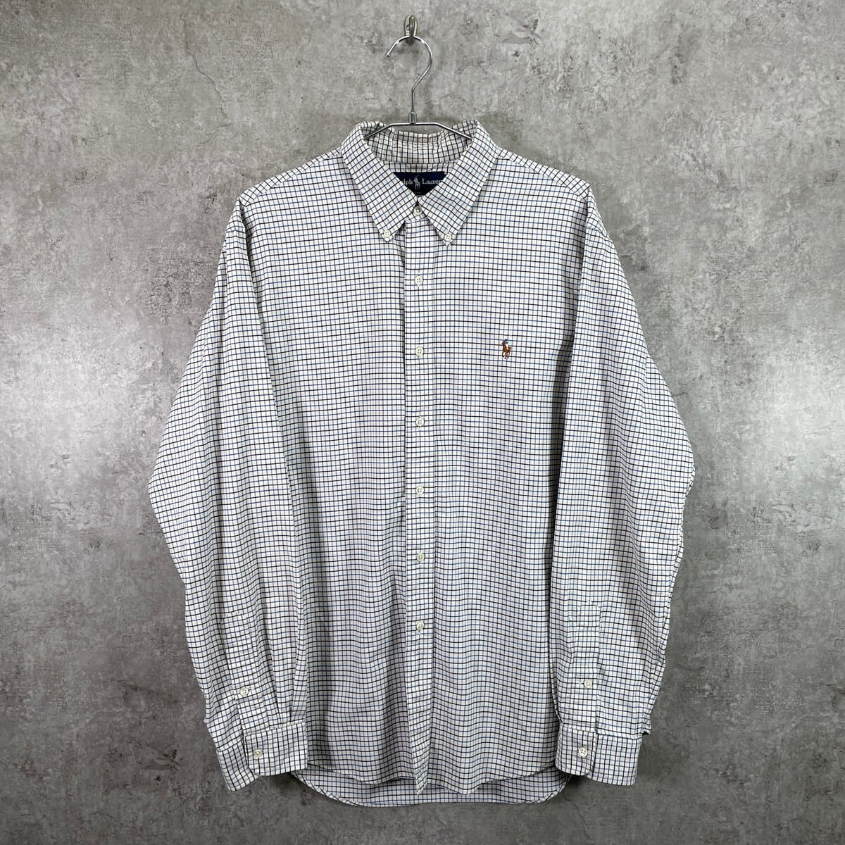 ■Ralph Lauren ラルフローレン CUSTOM FIT ワンポイントロゴ刺繡 チェックシャツ メンズXL 古着 ヴィンテージ VINTAGE ボタンダウンシャツ B.Dシャツ ネイビー ブルー ホワイト【長袖シャツ】/マルチカラー