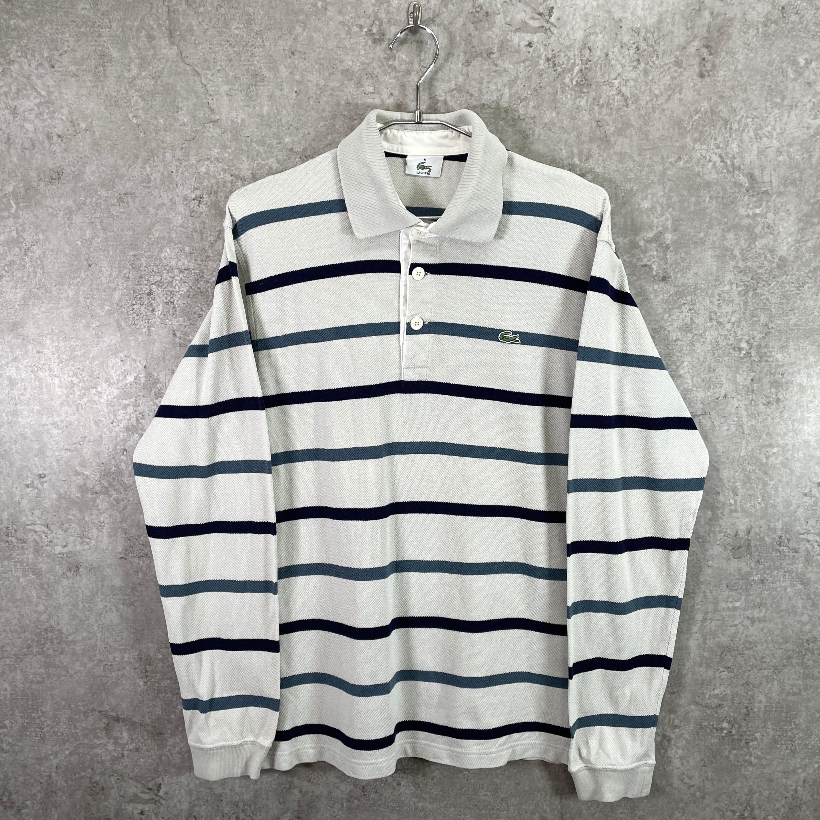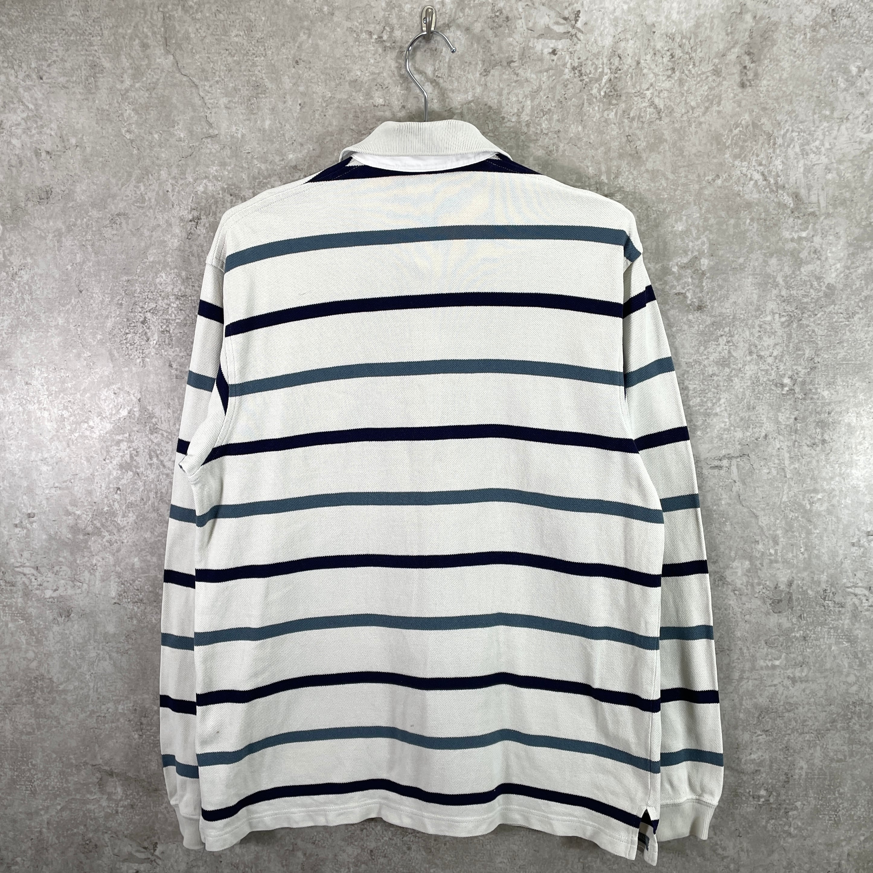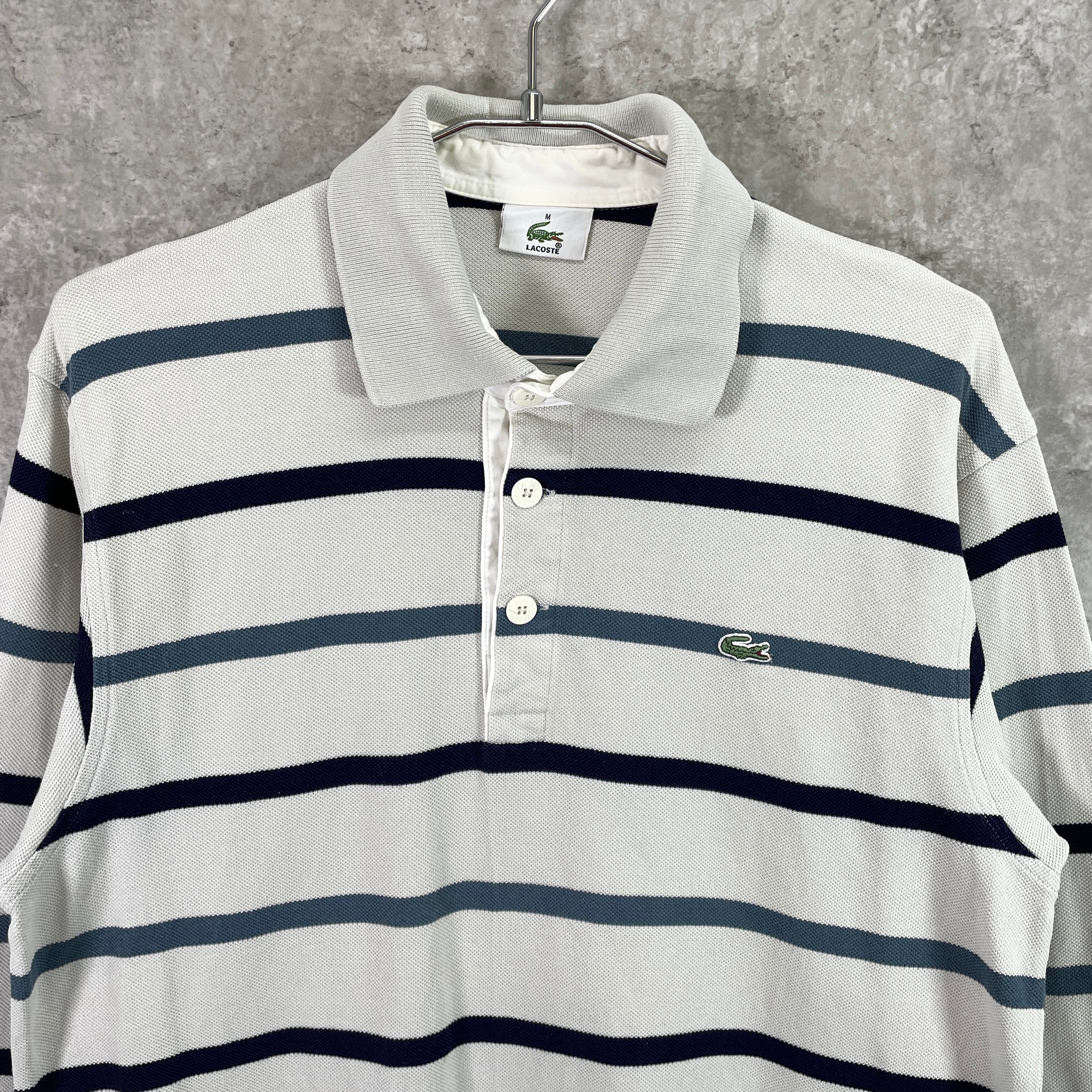 LACOSTE ラコステ 鹿の子 ボーダー 長袖ポロシャツ メンズM 古着 ワンポイントロゴ刺繍 ネイビー ベージュ ブルー【ポロシャツ・ラガーシャツ】/マルチカラー