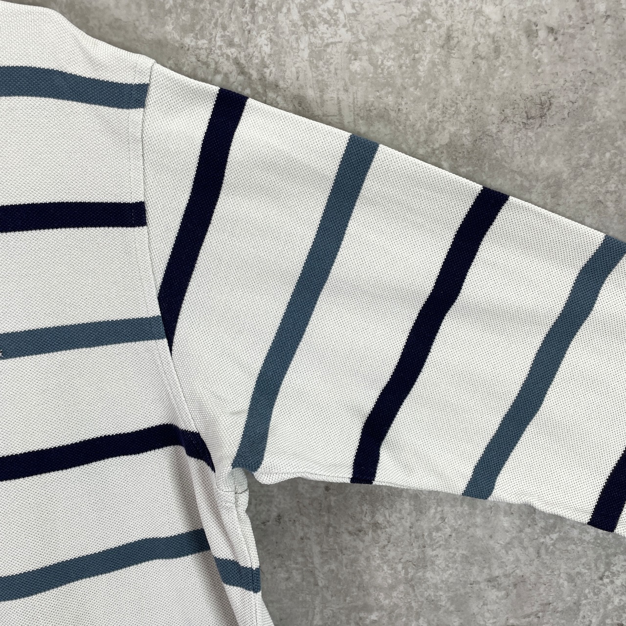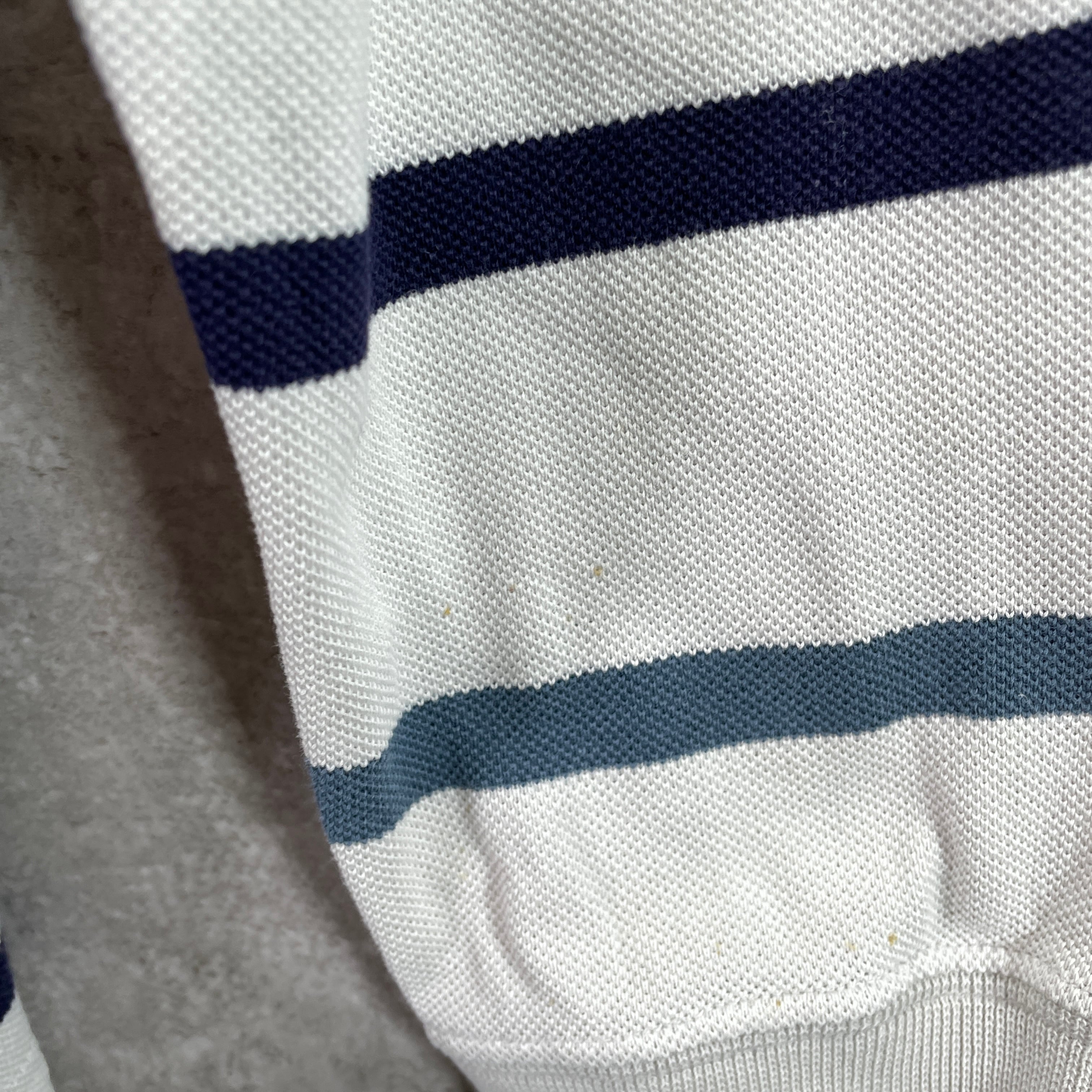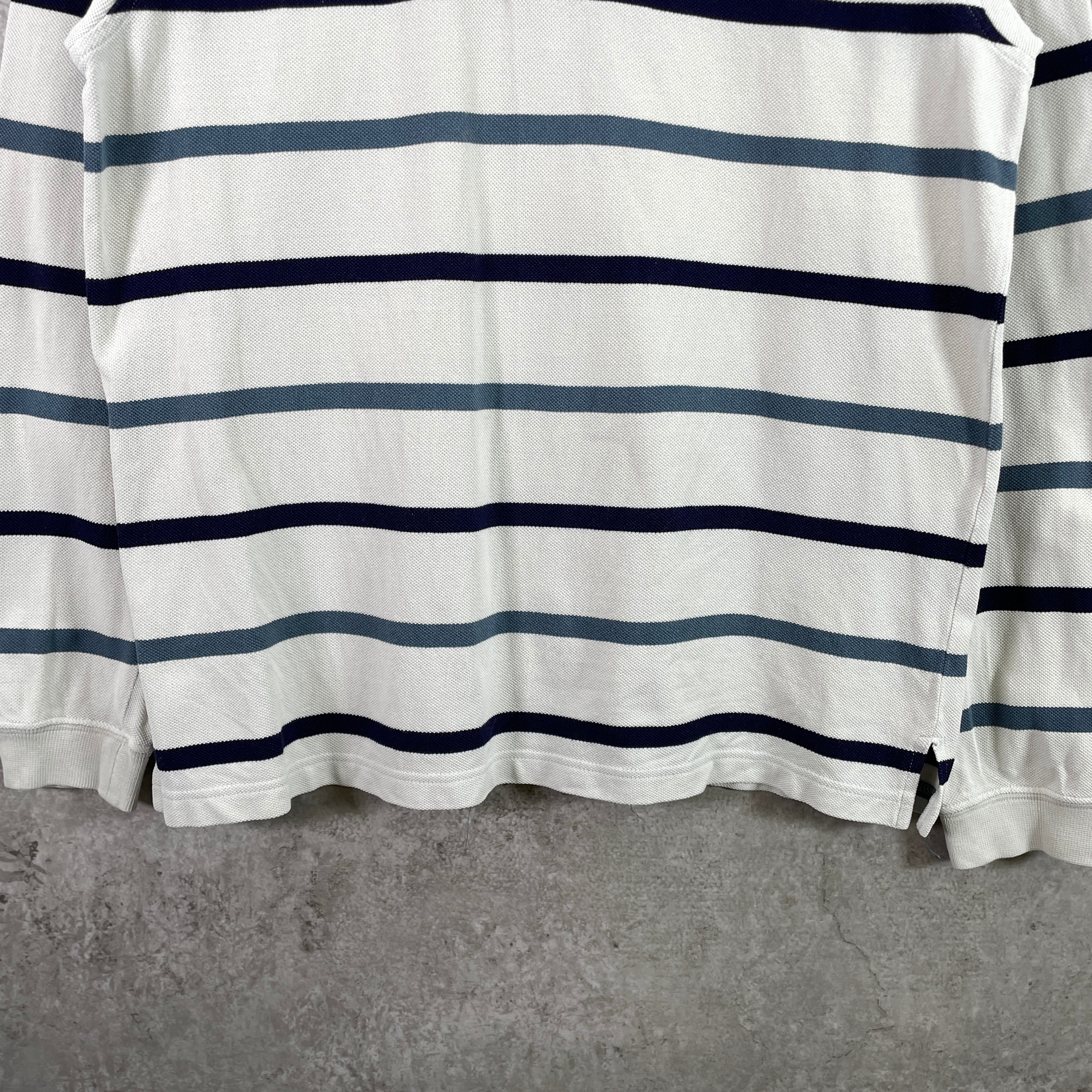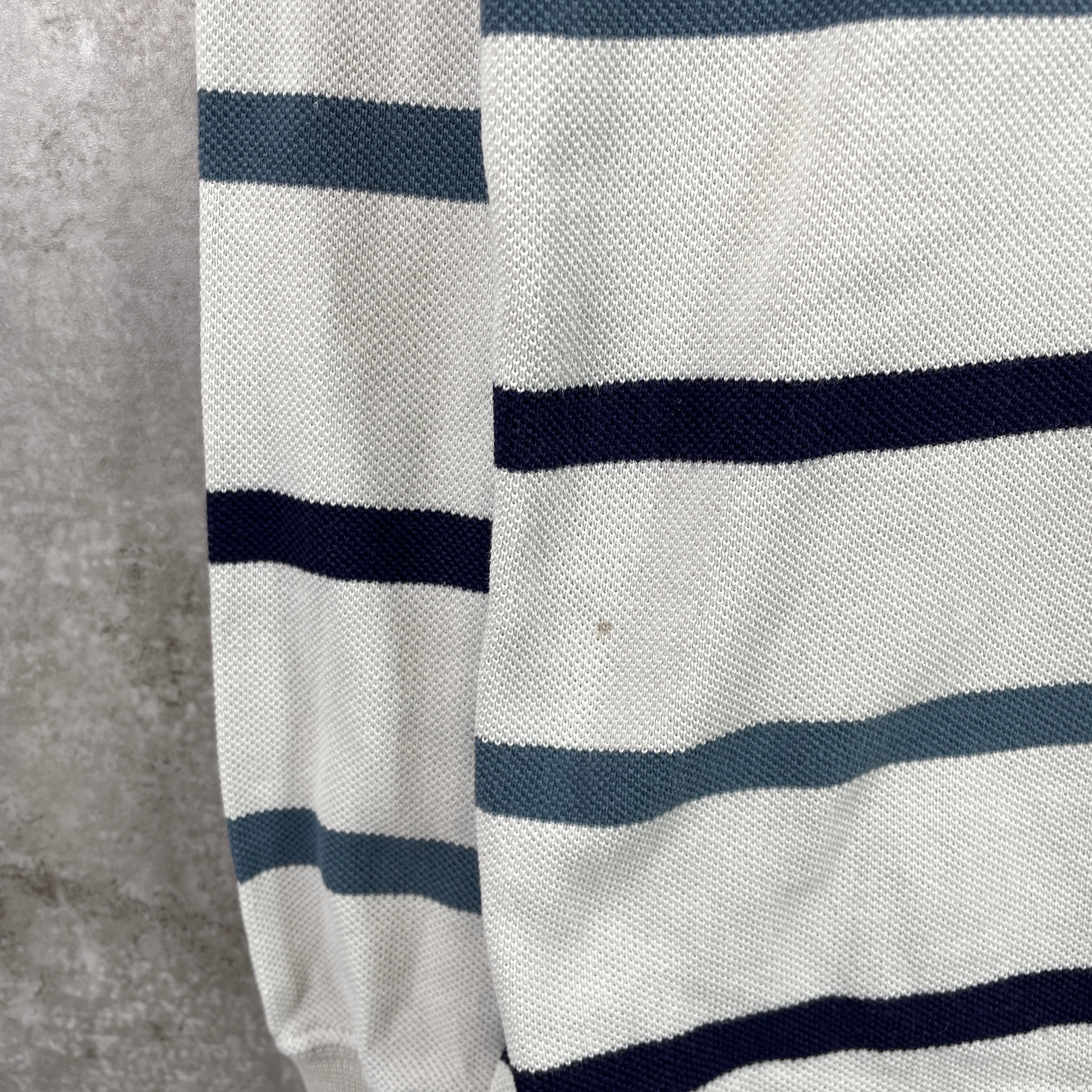 LACOSTE ラコステ 鹿の子 ボーダー 長袖ポロシャツ メンズM 古着 ワンポイントロゴ刺繍 ネイビー ベージュ ブルー【ポロシャツ・ラガーシャツ】/マルチカラー