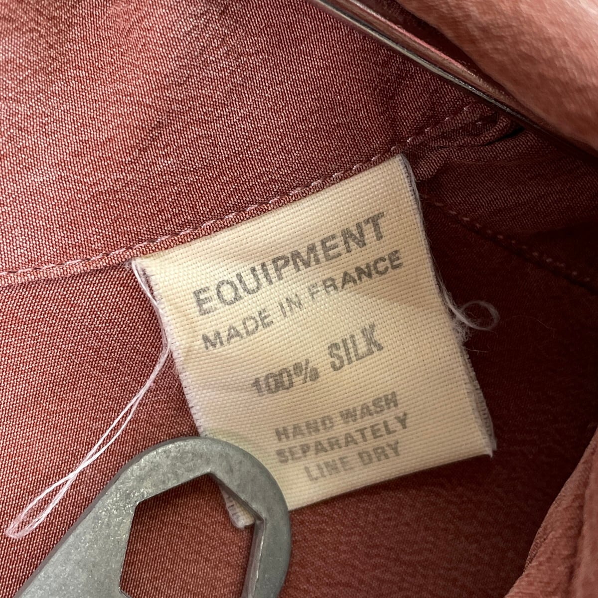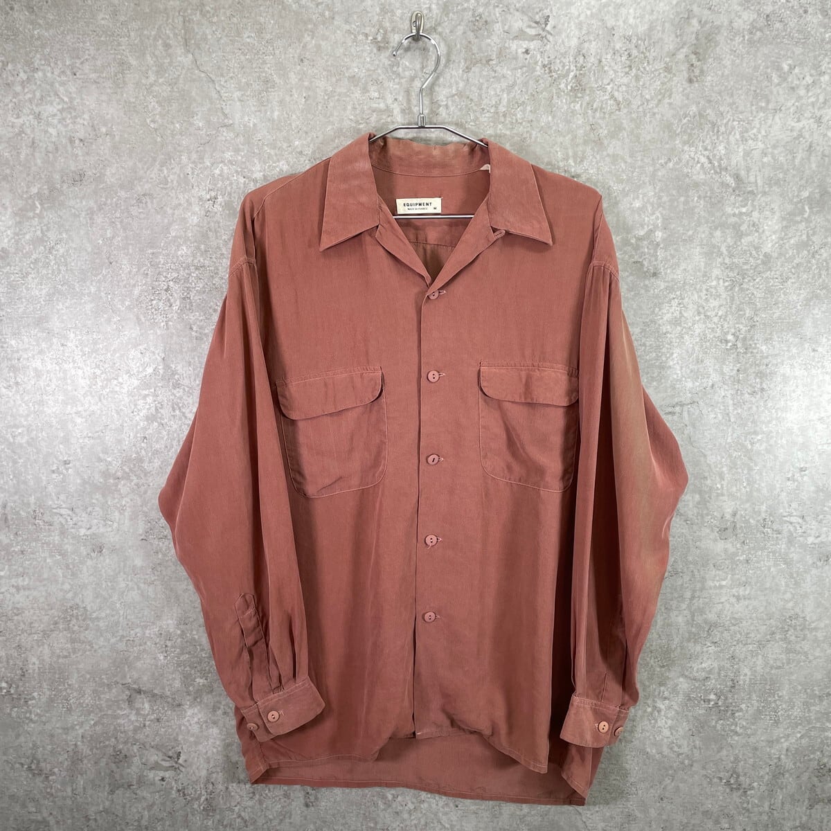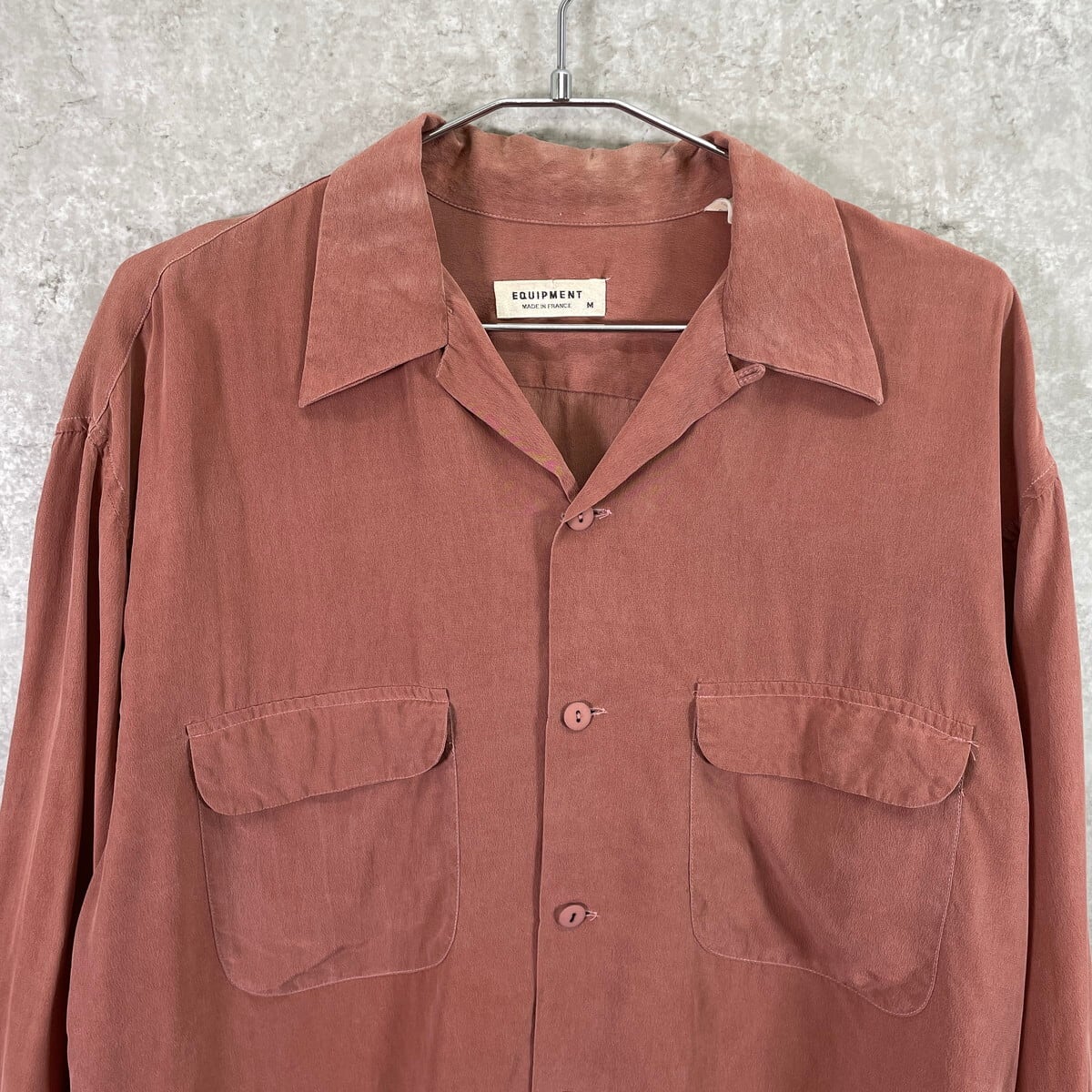 フランス製 EQUIPMENT エキプモン オープンカラー 開襟 シルクシャツ メンズL相当 古着 ヴィンテージ VINTAGE ダブルポケット 薄えんじ色 くすみピンク【長袖シャツ】/レッド