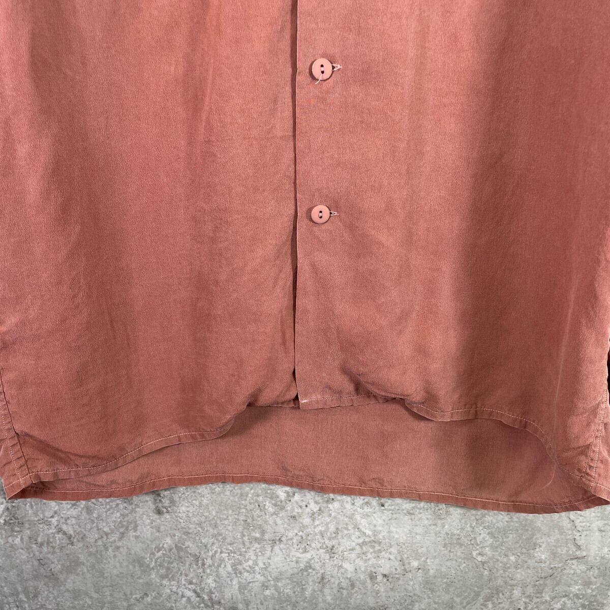 ■フランス製 EQUIPMENT エキプモン オープンカラー 開襟 シルクシャツ メンズL相当 古着 ヴィンテージ VINTAGE ダブルポケット 薄えんじ色 くすみピンク【長袖シャツ】/レッド