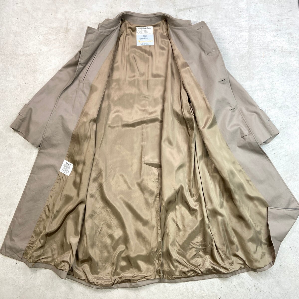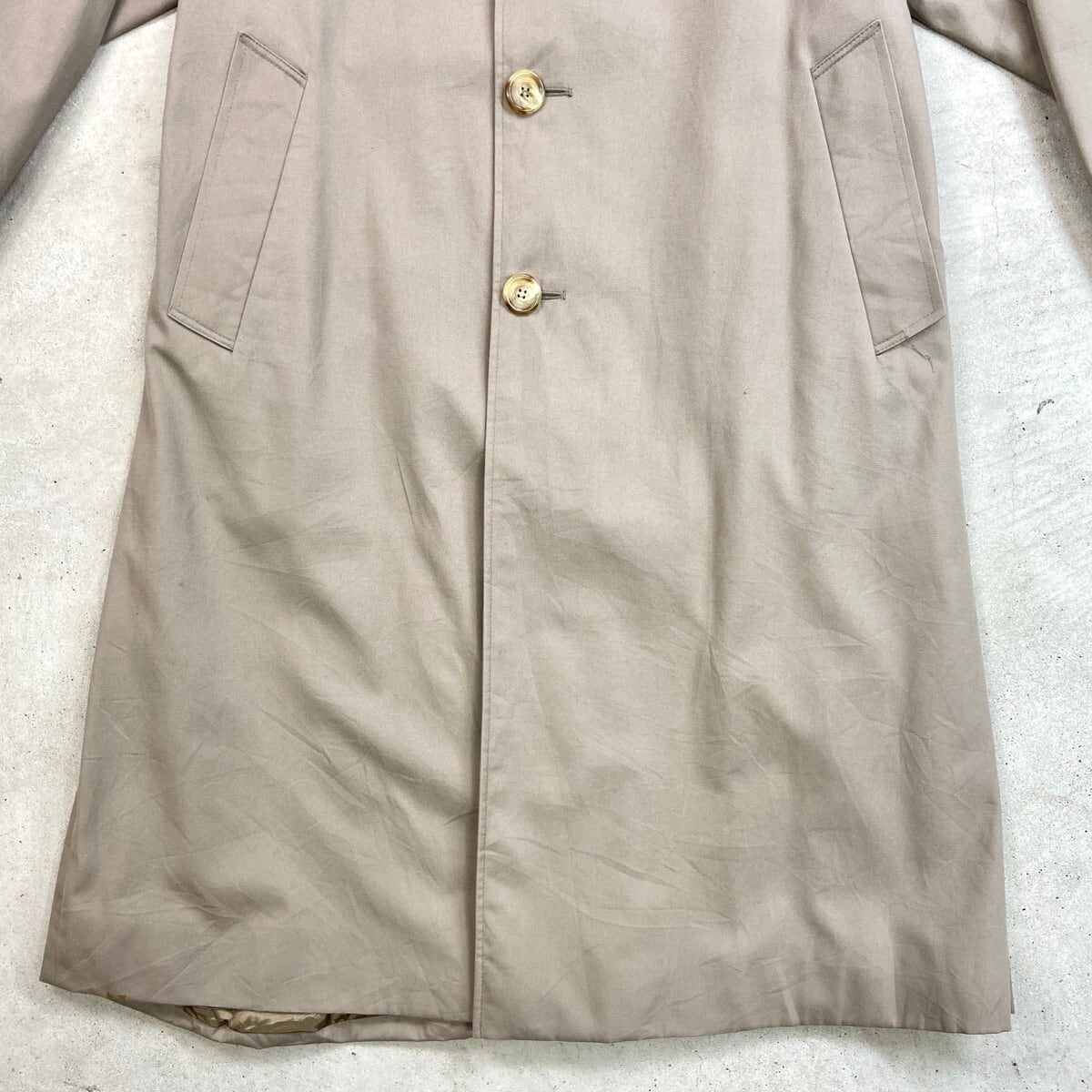 80年代 カナダ製 Aquascutum アクアスキュータム シングルトレンチコート メンズL相当 古着 80s ヴィンテージ VINTAGE ウエストベルト付き エポレット グレージュ【コート】/ベージュ