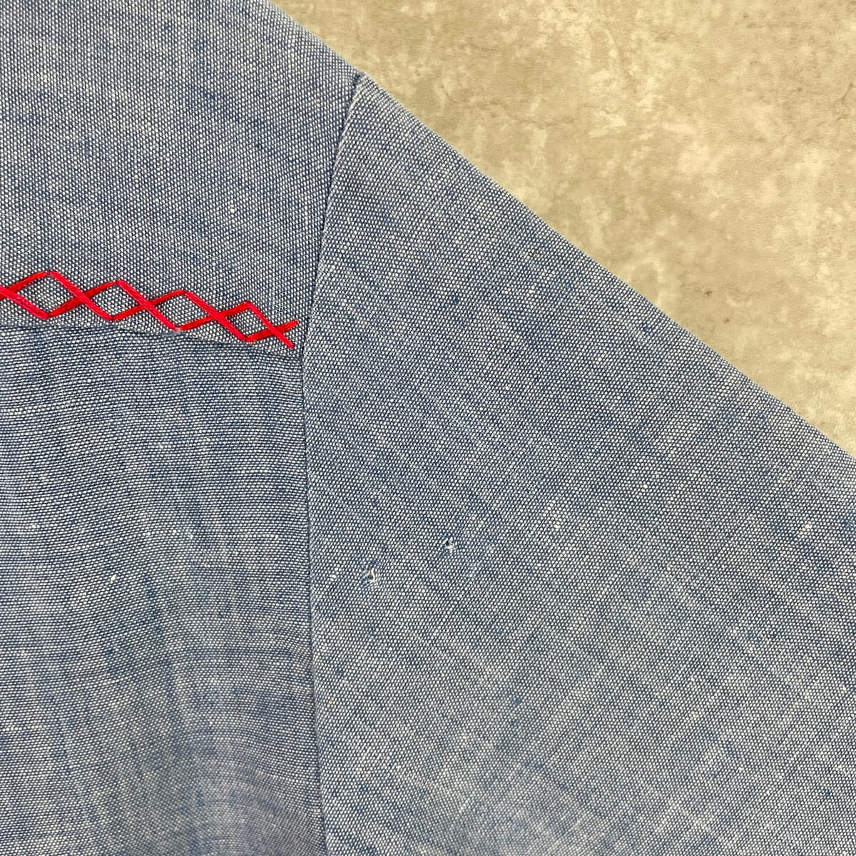 バックサイド右袖上部に小穴があります。