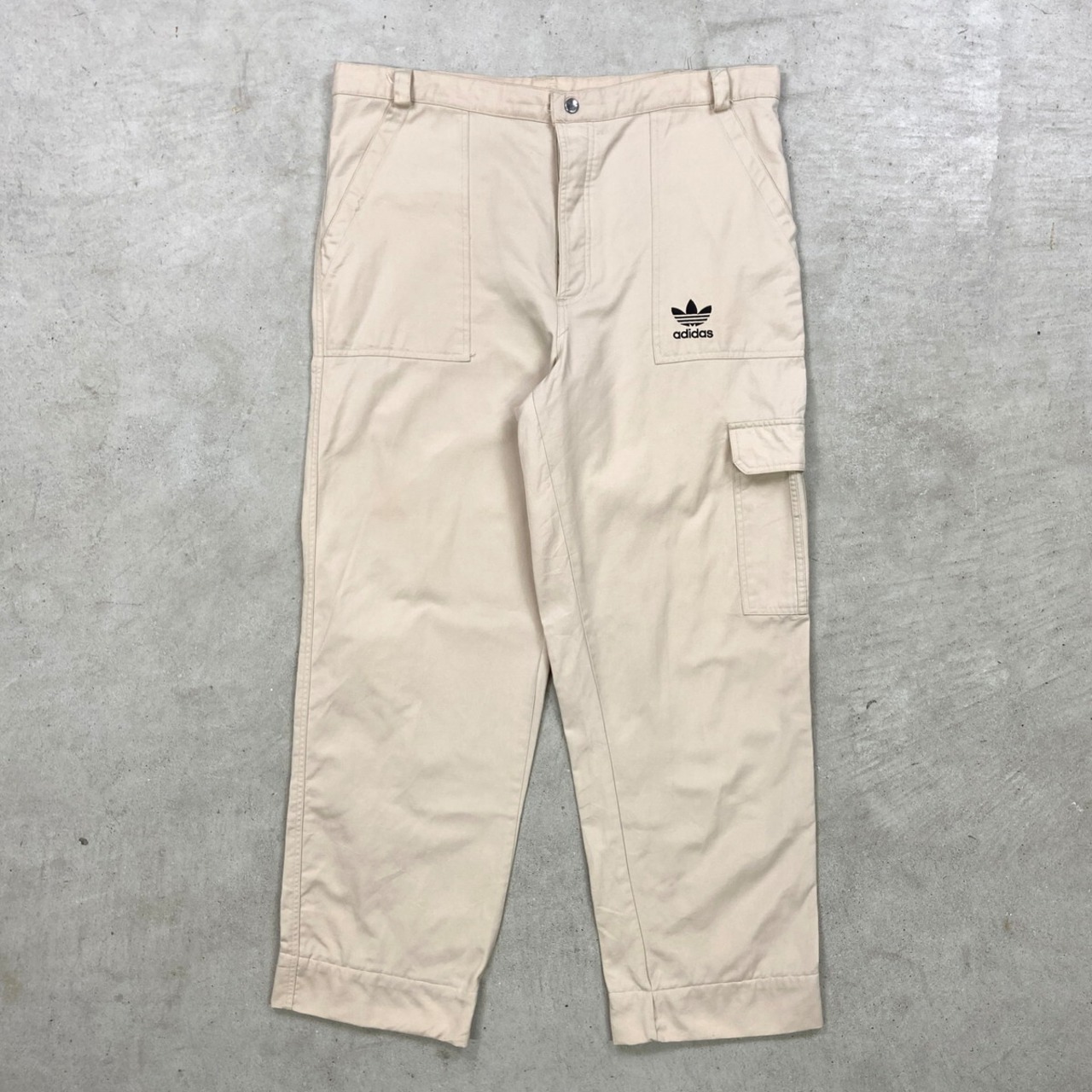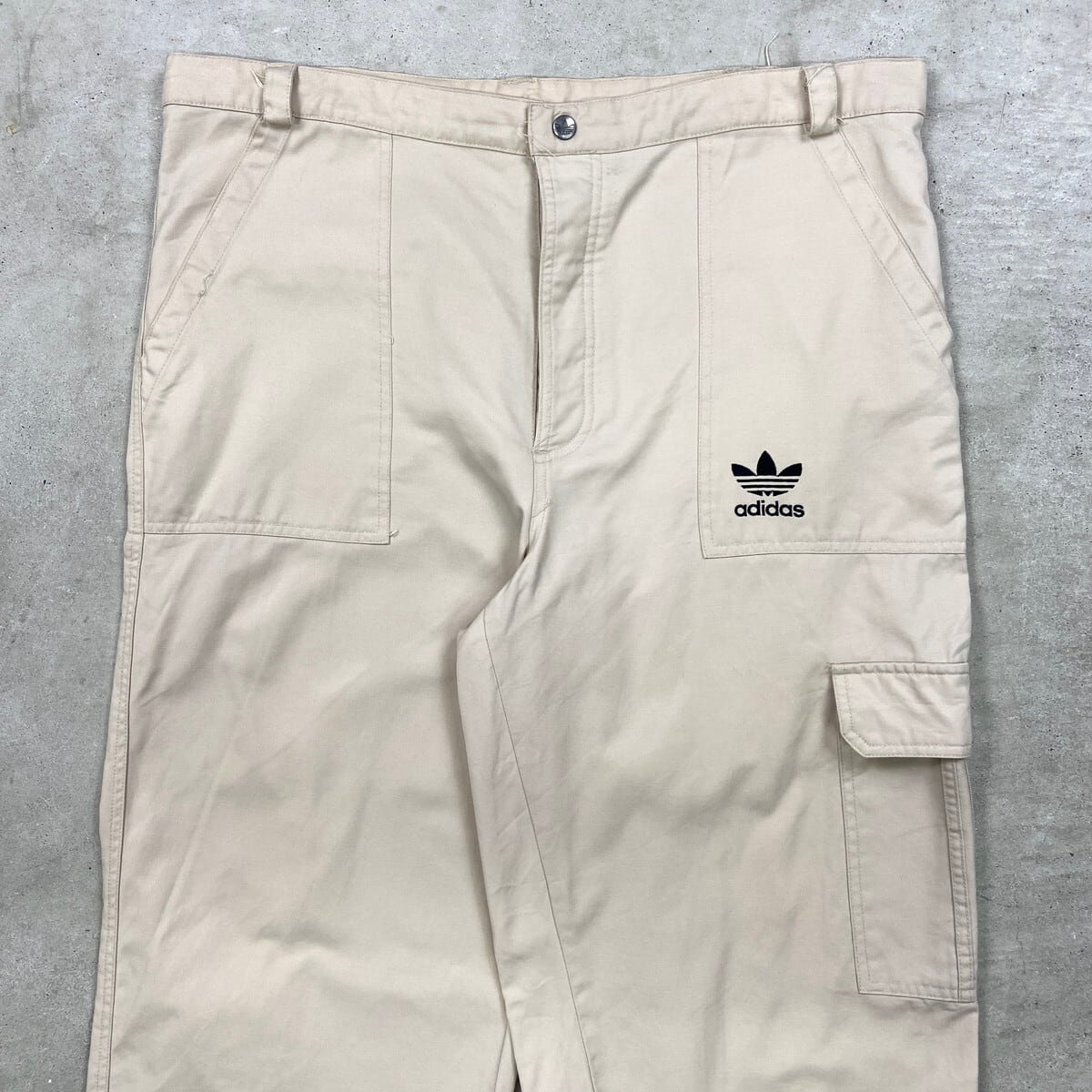 90年代 adidas アディダス トレフォイルロゴ ワイドカーゴパンツ メンズW38相当 古着 90s ヴィンテージ VINTAGE ビッグサイズ 大きいサイズ ライトベージュ【コットンパンツ】/ベージュ