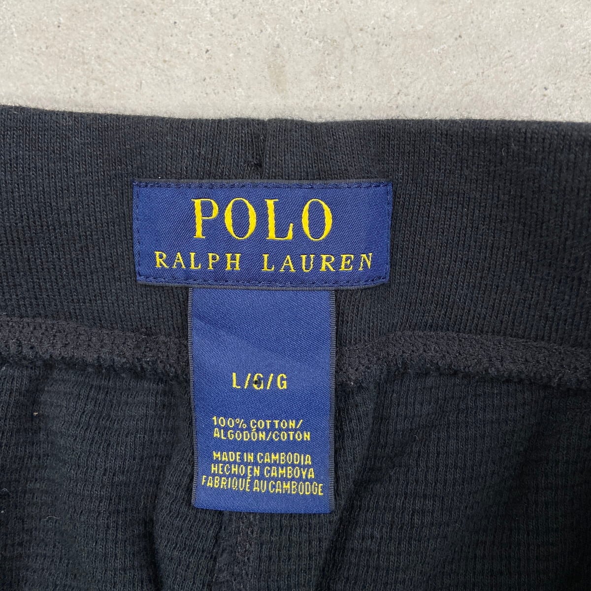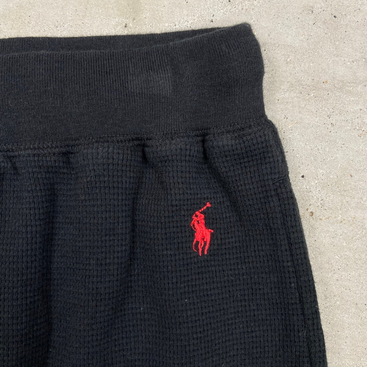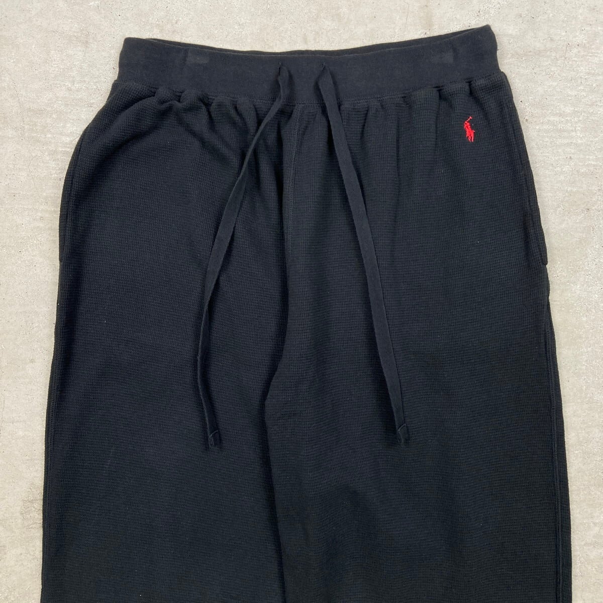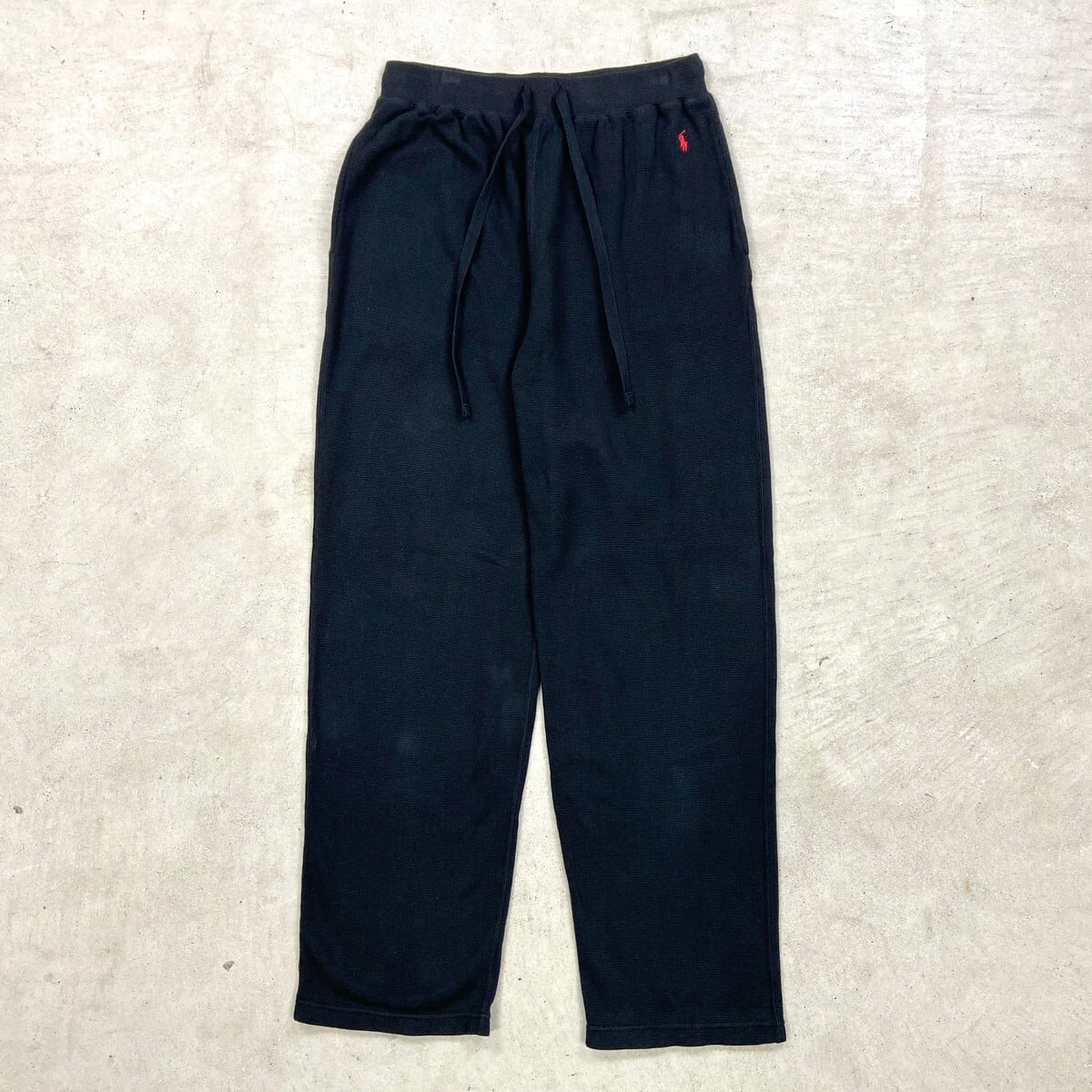 POLO RALPH LAUREN ポロラルフローレン ワイド イージーパンツ サーマル ワッフル メンズL 古着 ルームパンツ ワンポイントロゴ刺繍 ブラック 黒【スウェットパンツ】/ブラック