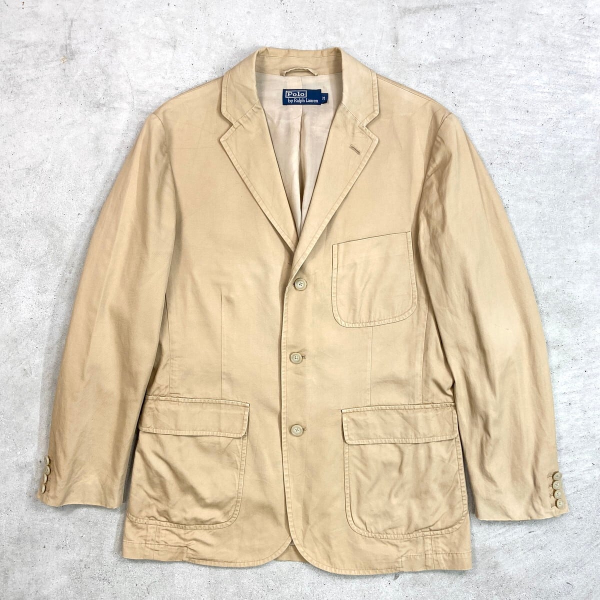 ■90年代 Polo by Ralph Lauren ポロバイラルフローレン コットンテーラードジャケット メンズM 古着 90s VINTAGE ヴィンテージ 3B サンドベージュ【テーラードジャケット】/ベージュ