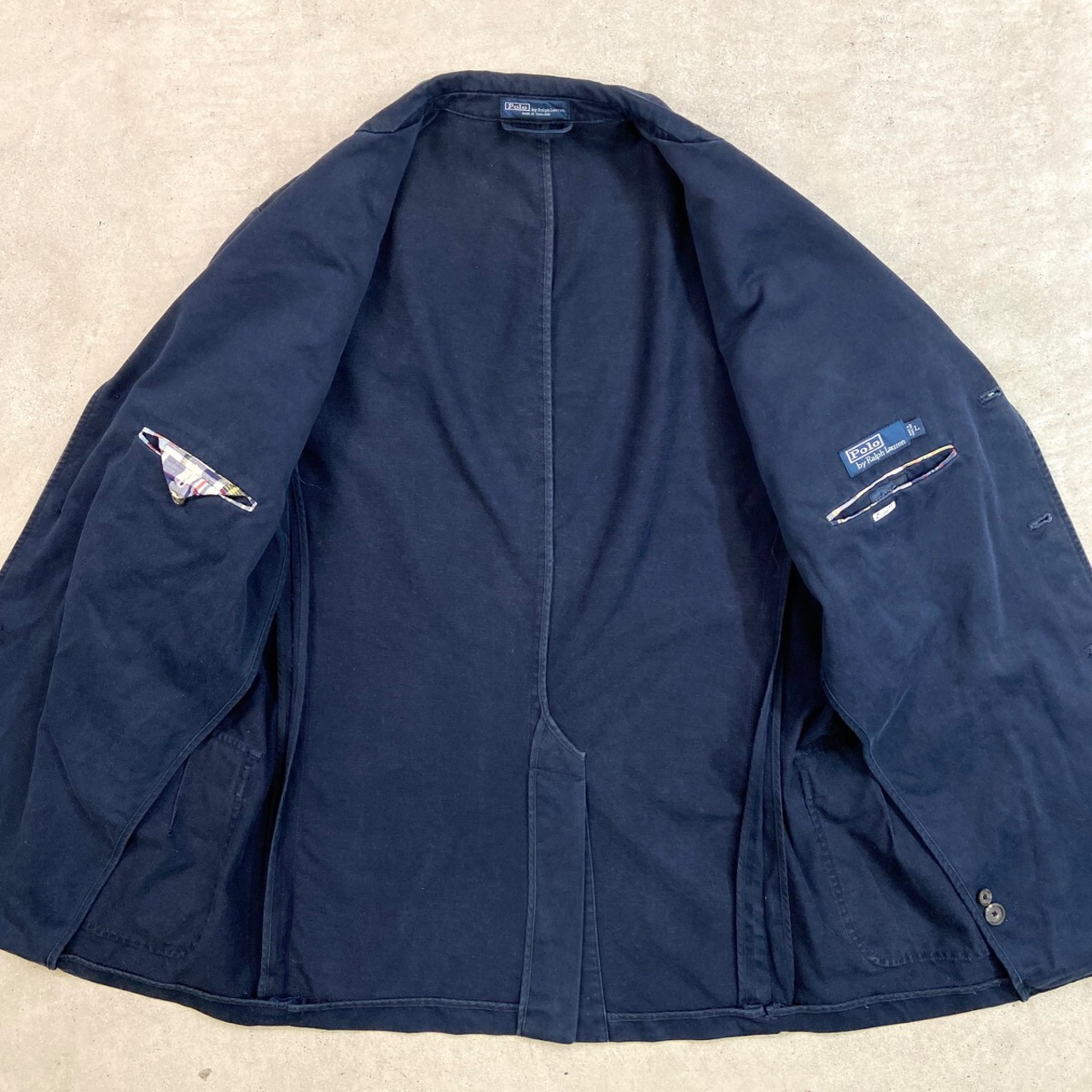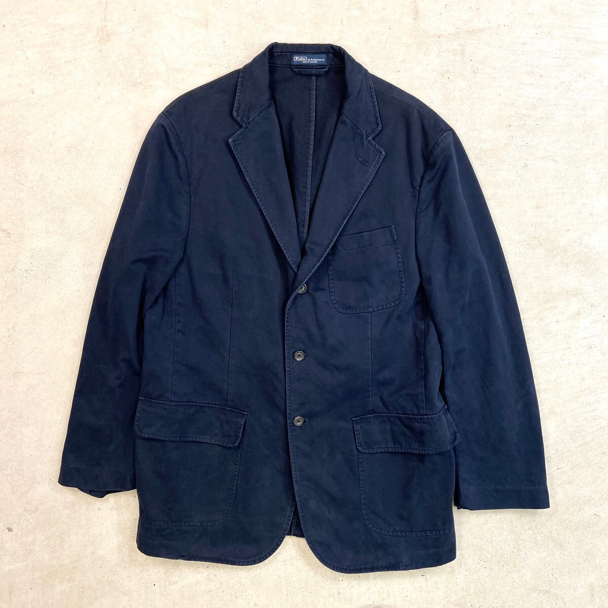 ■90年代 Polo by Ralph Lauren ポロバイラルフローレン コットンテーラードジャケット メンズL 古着 90s VINTAGE ヴィンテージ 3B 3ボタン 紺色【テーラードジャケット】/ネイビー