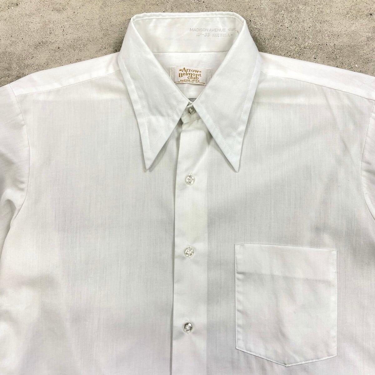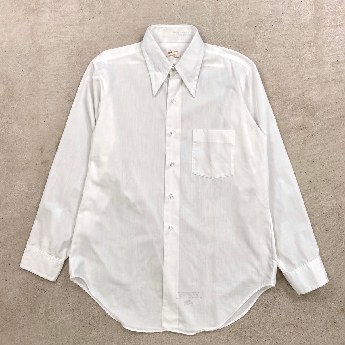 70年代 USA製 ARROW BELMONT CLUB ドレスシャツ 無地 メンズL相当 古着 70s ヴィンテージ VINTAGE 白色【長袖シャツ】/ホワイト