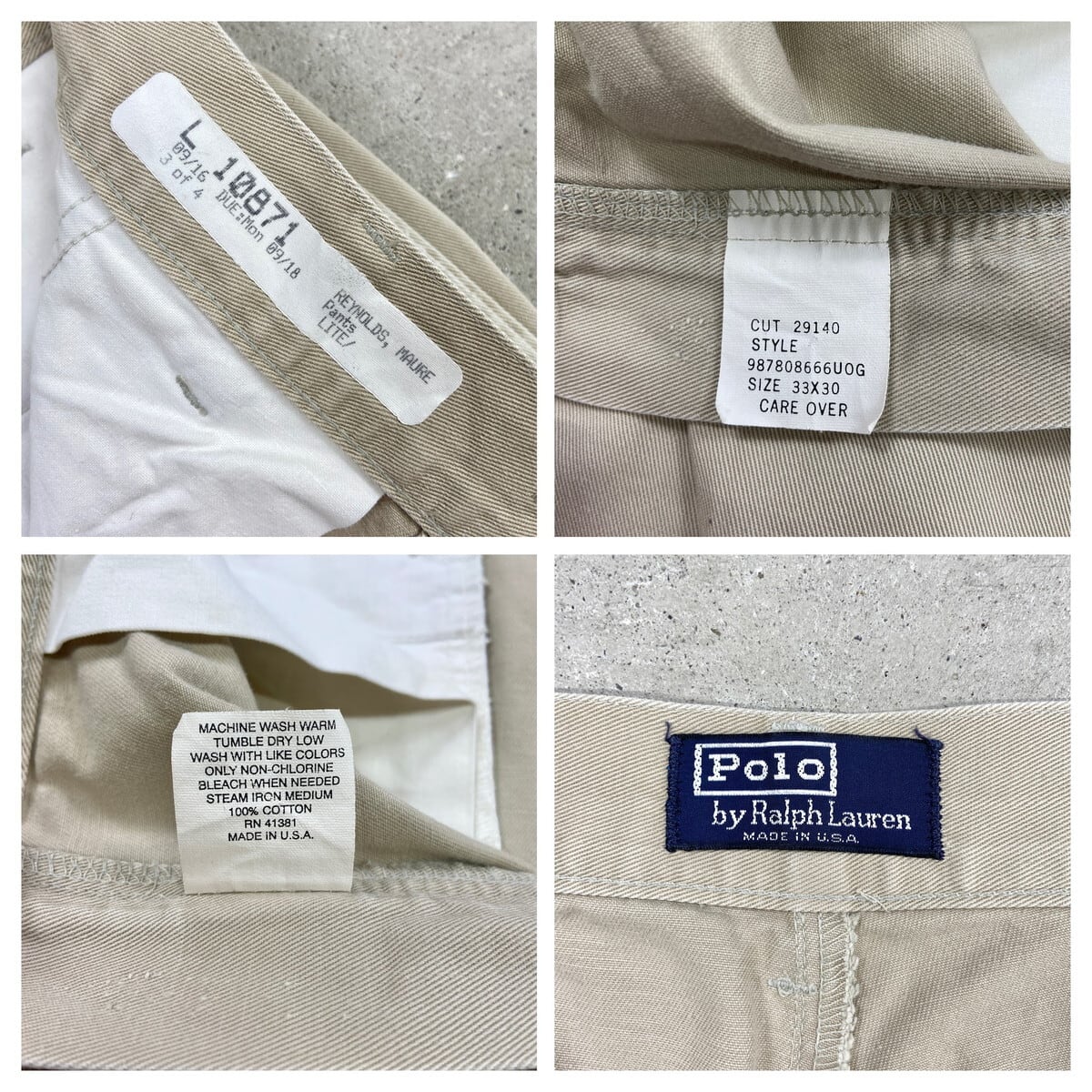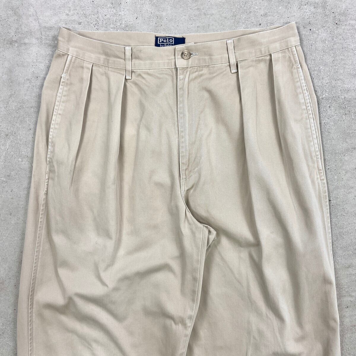 90年代 USA製 Polo by Ralph Lauren ポロバイラルフローレン 2タック チノパンツ メンズW31相当 古着 90s アメカジ VINTAGE ヴィンテージ ポロチノ カーキベージュ【チノパンツ,コットンパンツ】/ベージュ