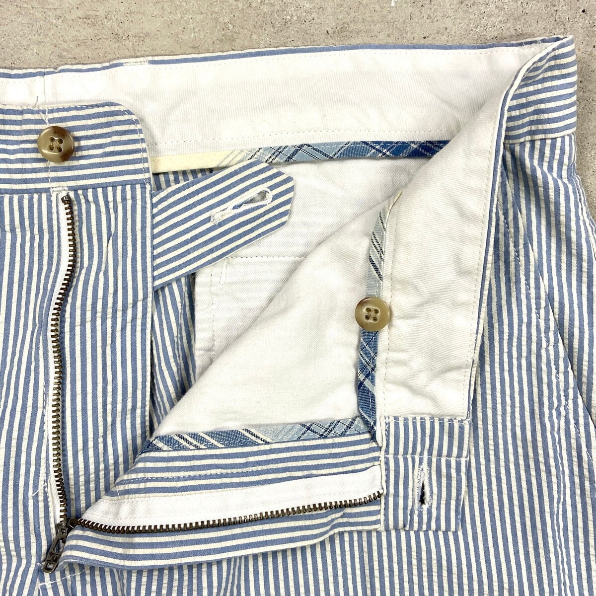■90年代 Polo by Ralph Lauren ポロバイラルフローレン ストライプ シアサッカーパンツ メンズW36 古着 90s ヴィンテージ VINTAGE ホワイト ライトブルー 白 水色【チノパン,コットンパンツ】/マルチカラー