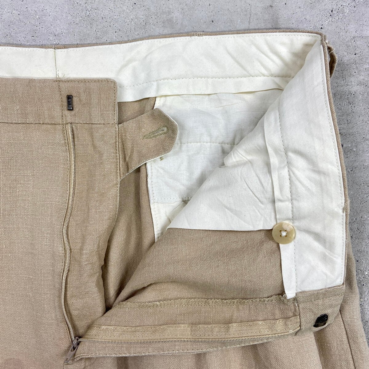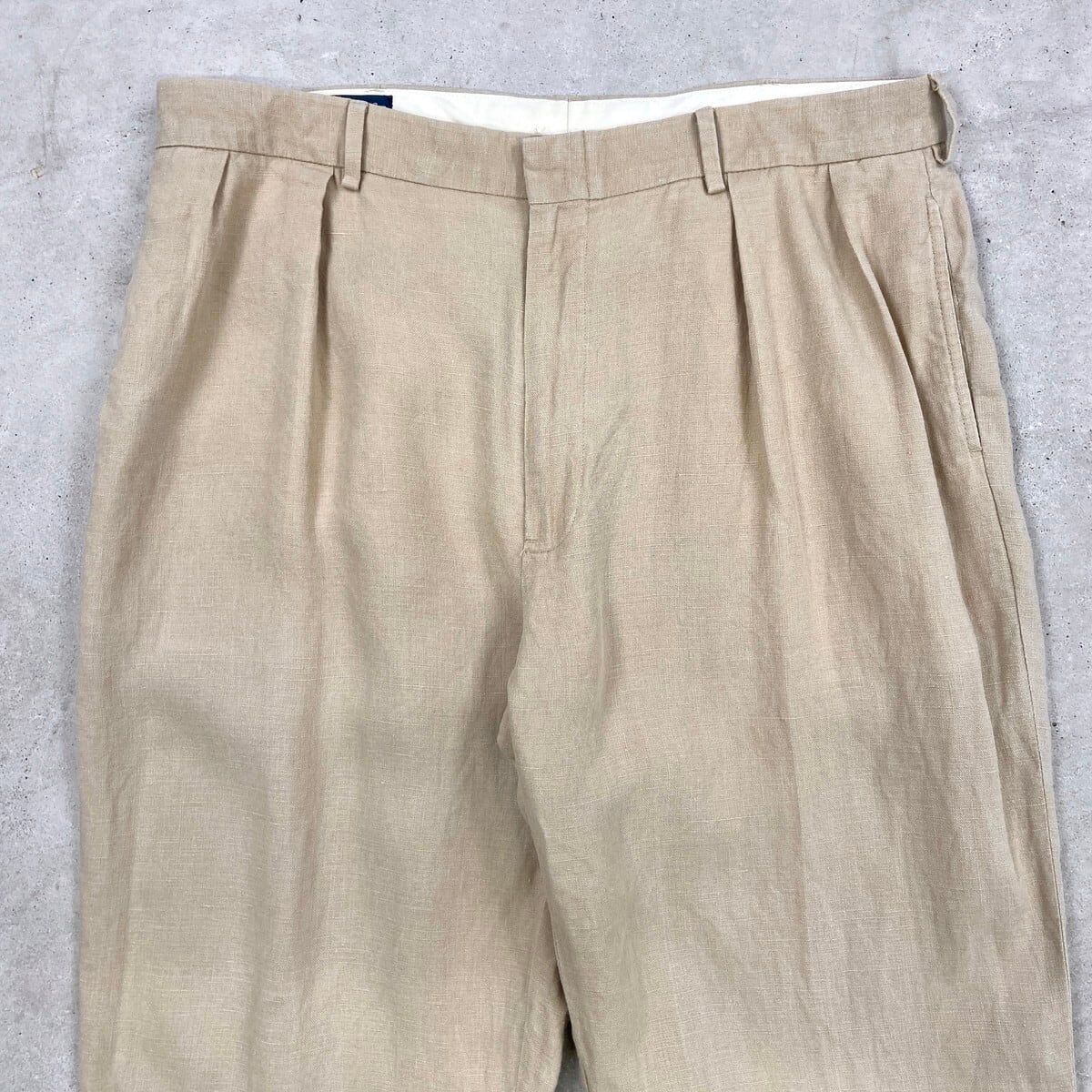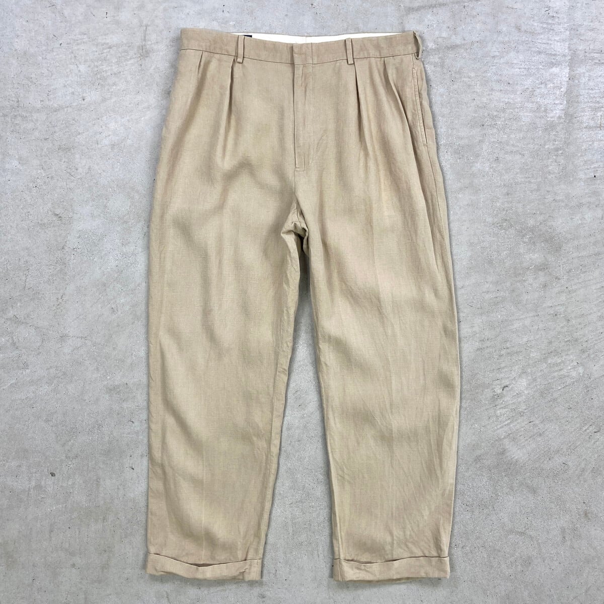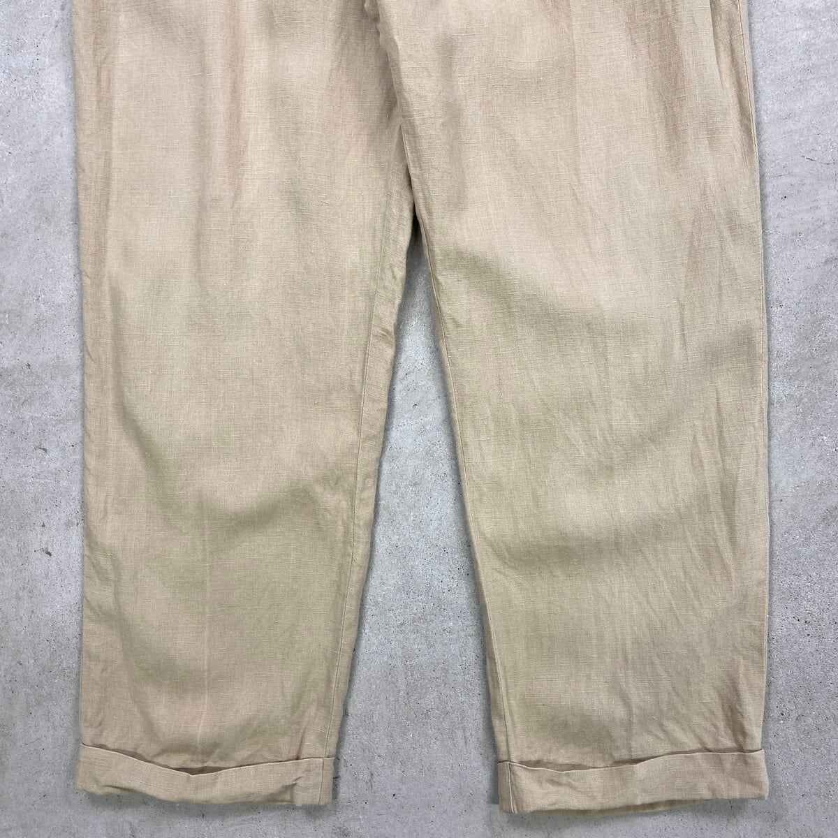 ■90年代 Polo by Ralph Lauren ポロバイラルフローレン 2タック リネン スラックスパンツ メンズW37 古着 90s VINTAGE ヴィンテージ ビッグサイズ 大きいサイズ ライトベージュ【スラックス,スタプレ】/ベージュ