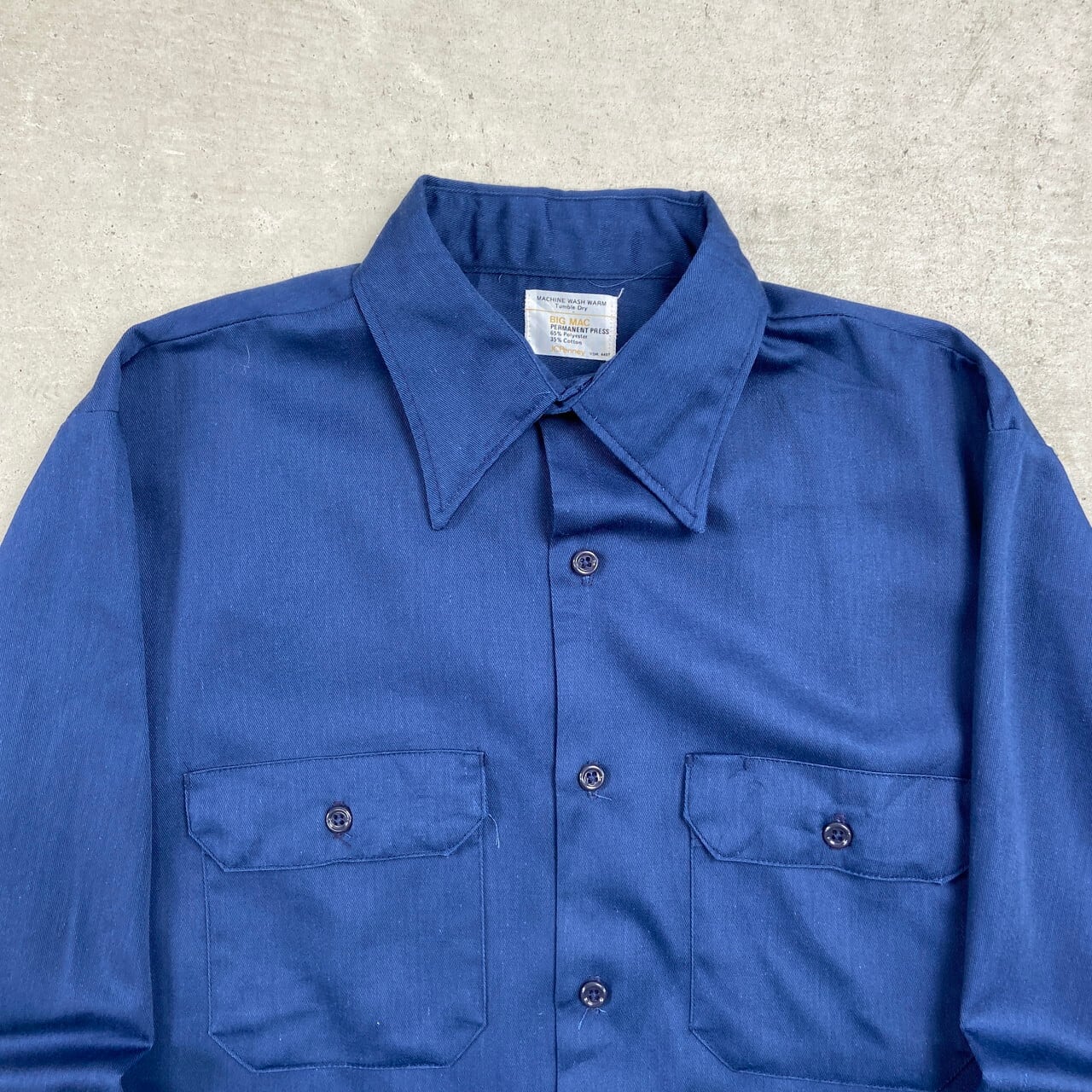 ■70年代 BIG MAC JCPenney ビッグマック ワークシャツ メンズM相当 古着 70s ヴィンテージ VINTAGE 紺色【長袖シャツ】/ネイビー