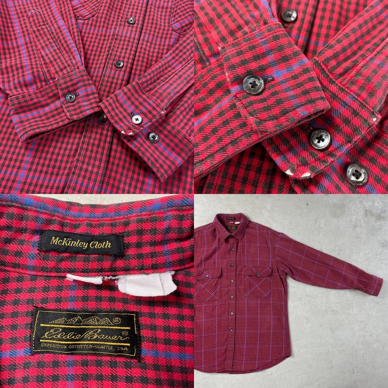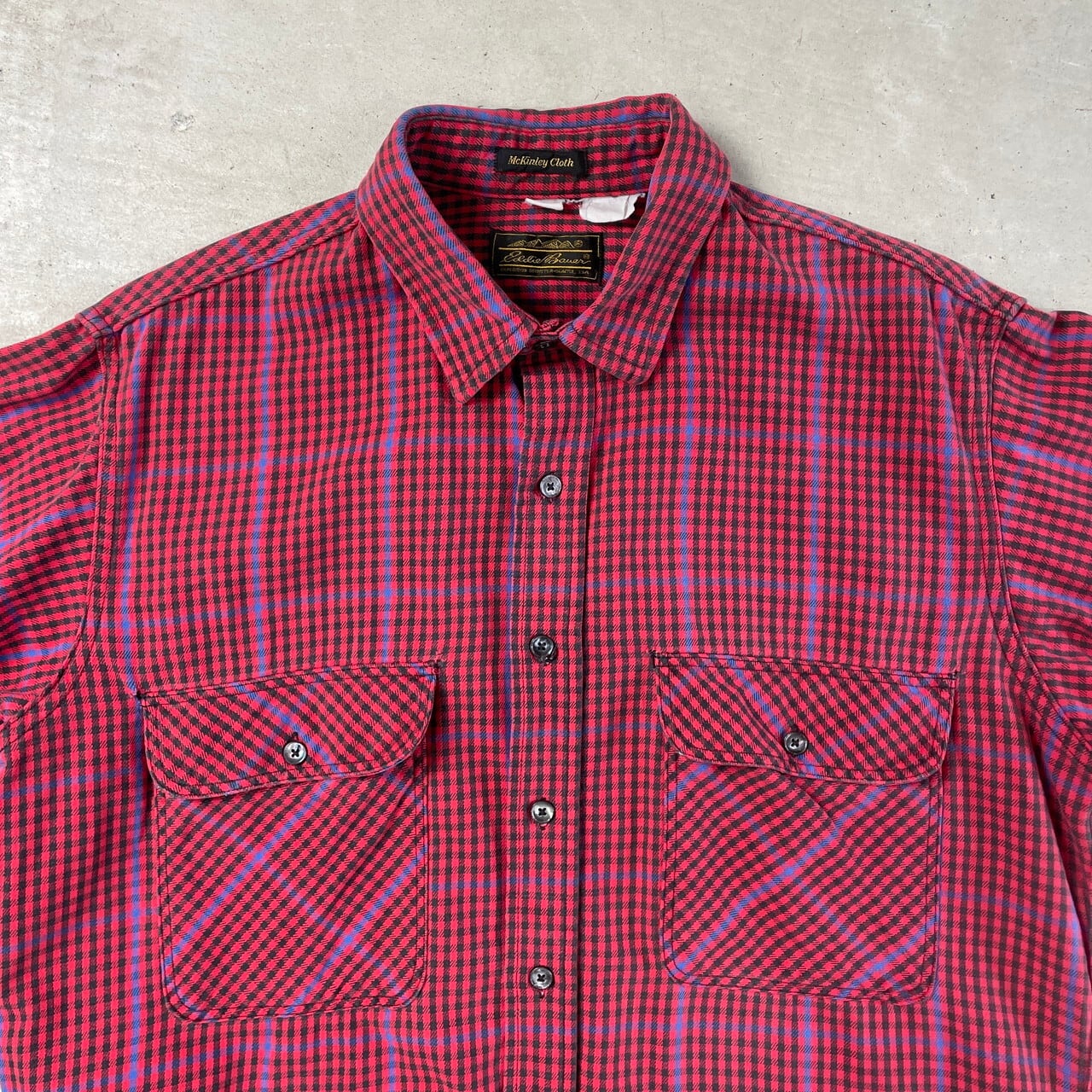 80〜90年代 Eddie Bauer エディーバウアー 長袖 チェックシャツ メンズXL相当 古着 80s 90s ヴィンテージ VINTAGE 赤色 黒色 青色【長袖シャツ】/レッド【VS50-4】
