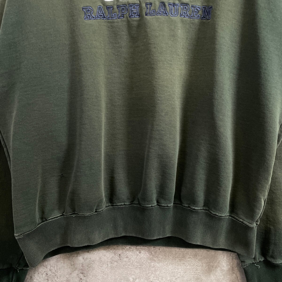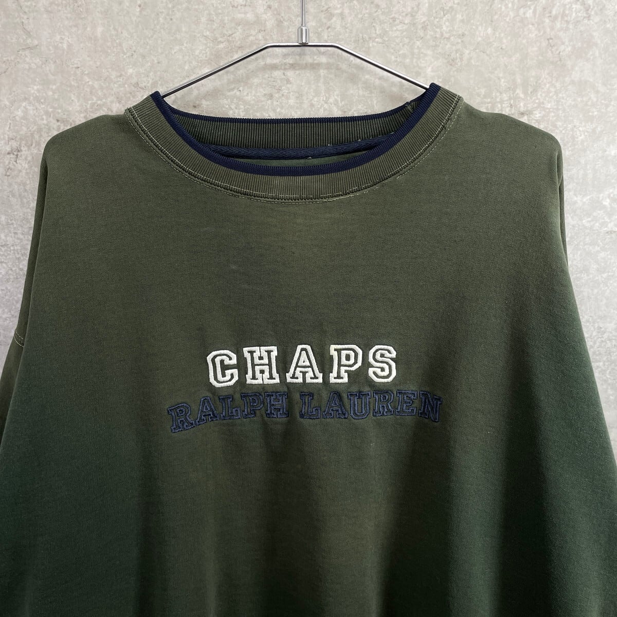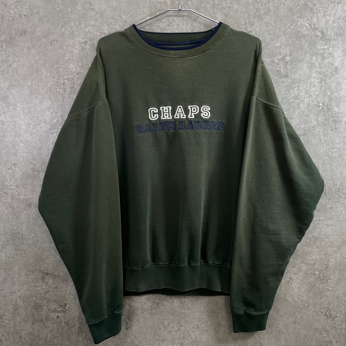 90年代 CHAPS Ralph Lauren チャップス ラルフローレン ビッグロゴ刺繍 スウェットシャツ メンズXL 古着 90s ヴィンテージ VINTAGE フェードグリーン カーキグリーン オリーブグリーン 緑【P2603】【スウェット】/グリーン