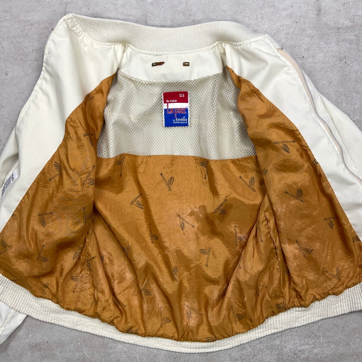 70年代 La Paz by Catalina トビウオ柄 カップショルダー ダービージャケット メンズM相当 古着 70s ヴィンテージ VINTAGE アメカジ 総柄ライナー クリームベージュ【P2603】【ブルゾン・ジャケット】/ベージュ