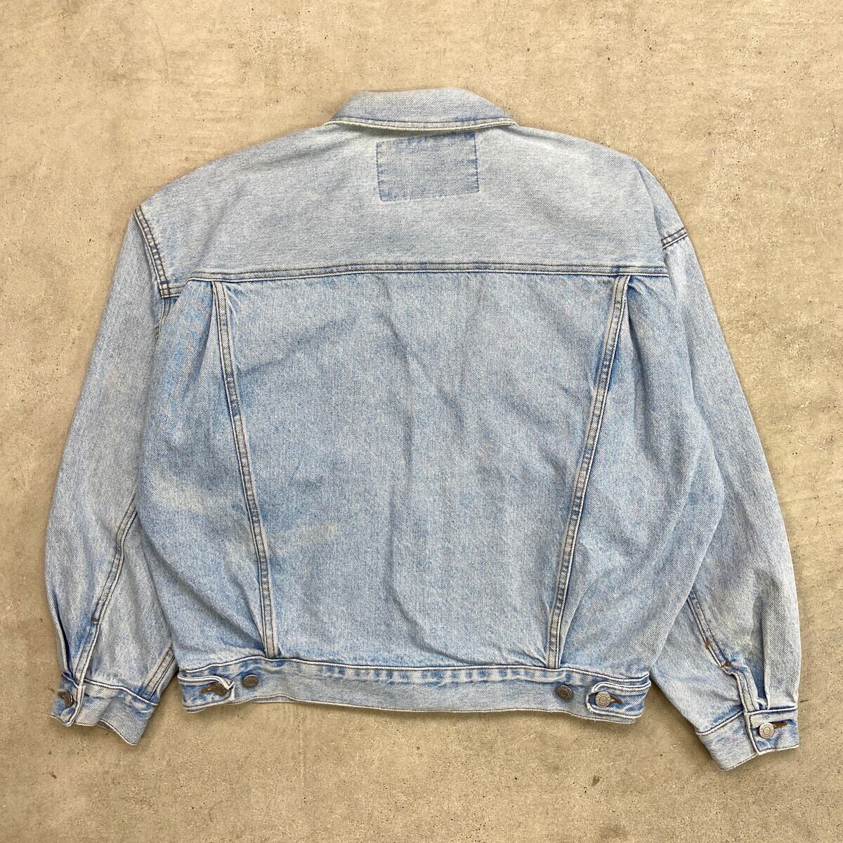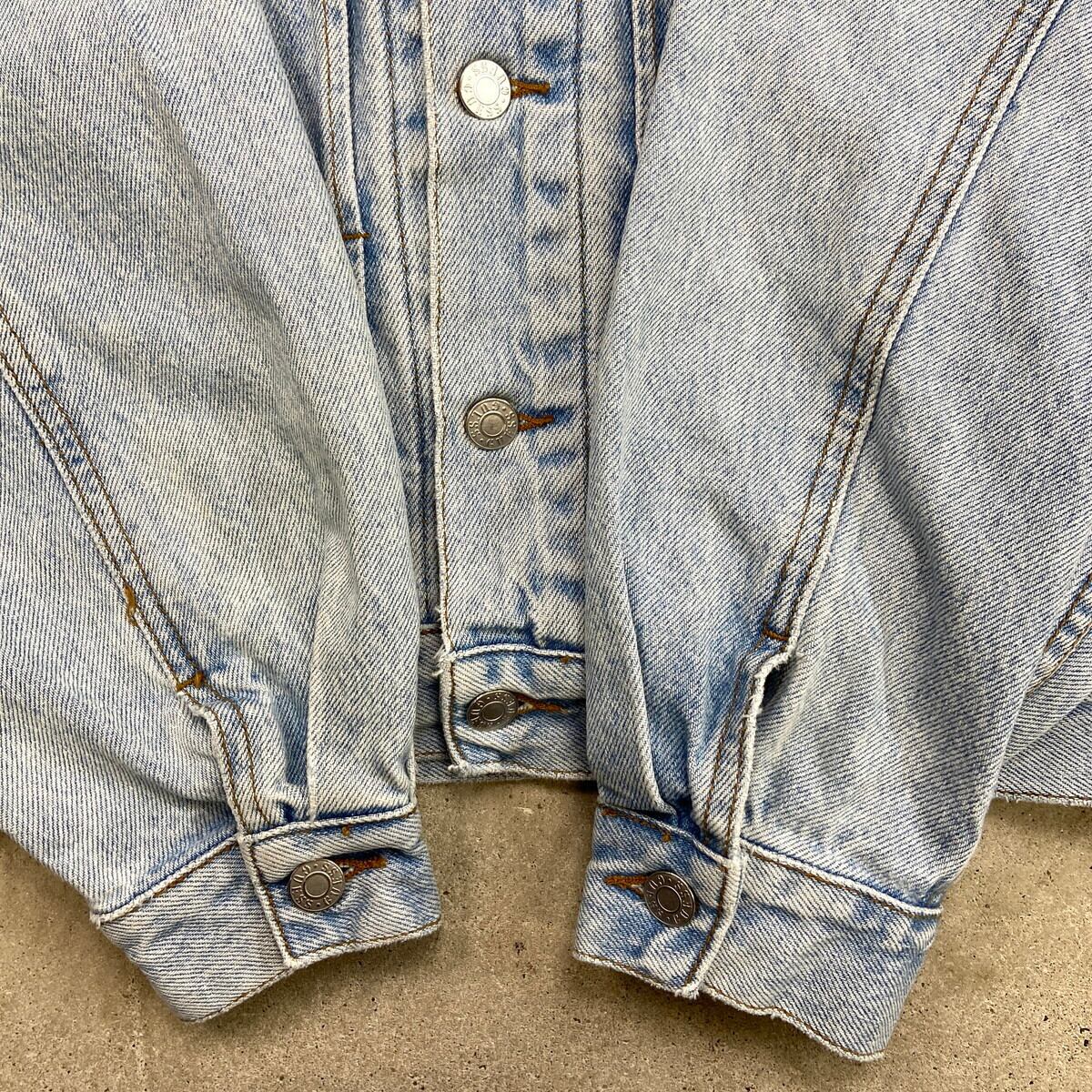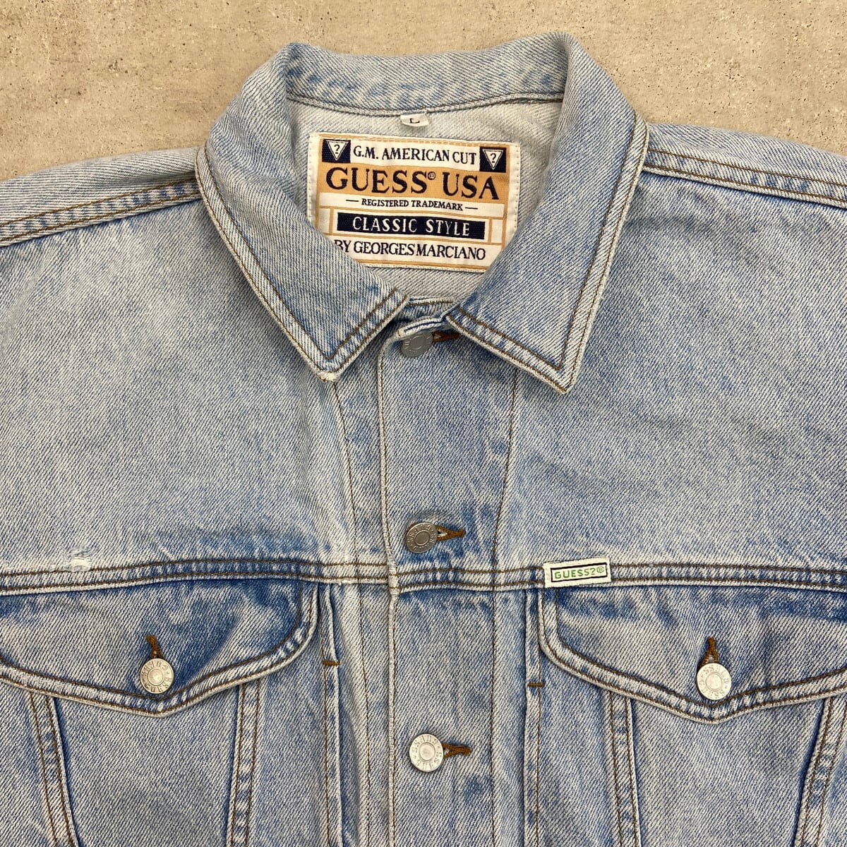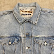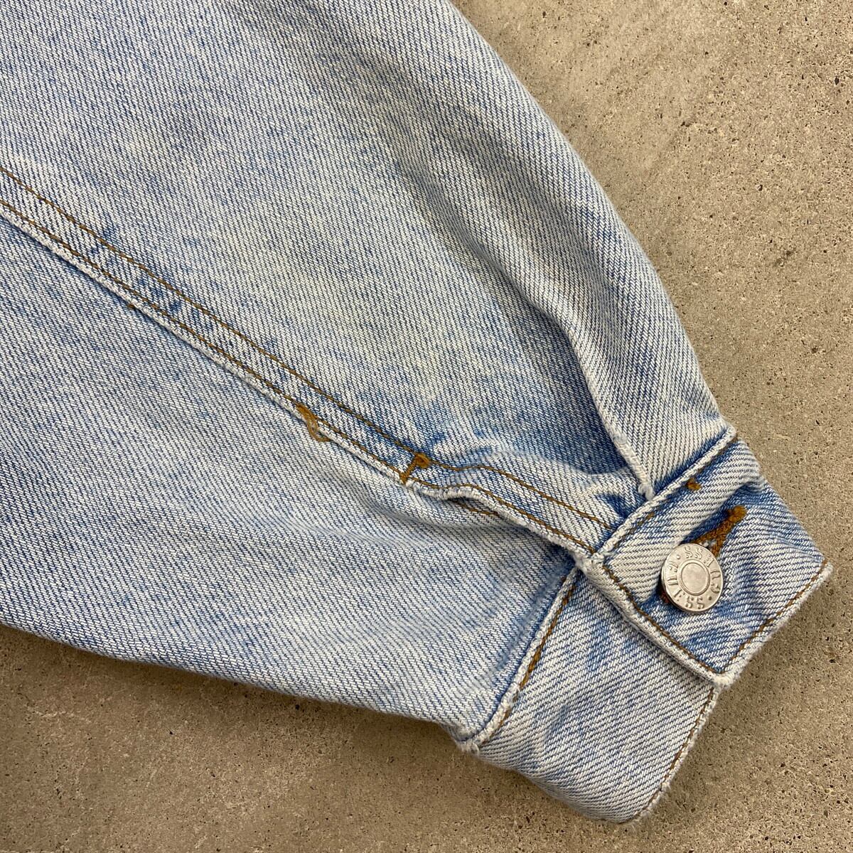 90年代 USA製 GUESS ワンポイントロゴ刺繍 デニムジャケット メンズXL相当 古着 90s VINTAGE ヴィンテージ アメカジ トラッカージャケット アイスブルー【P2603】【デニムジャケット】/ブルー